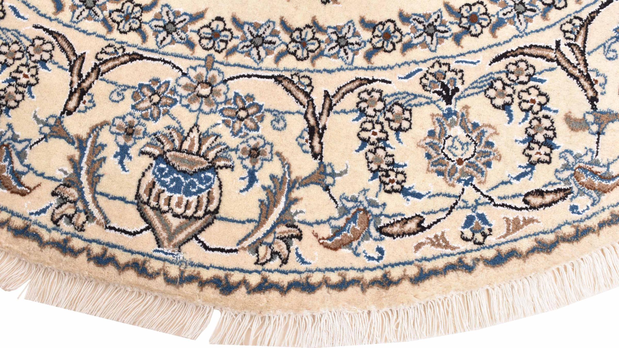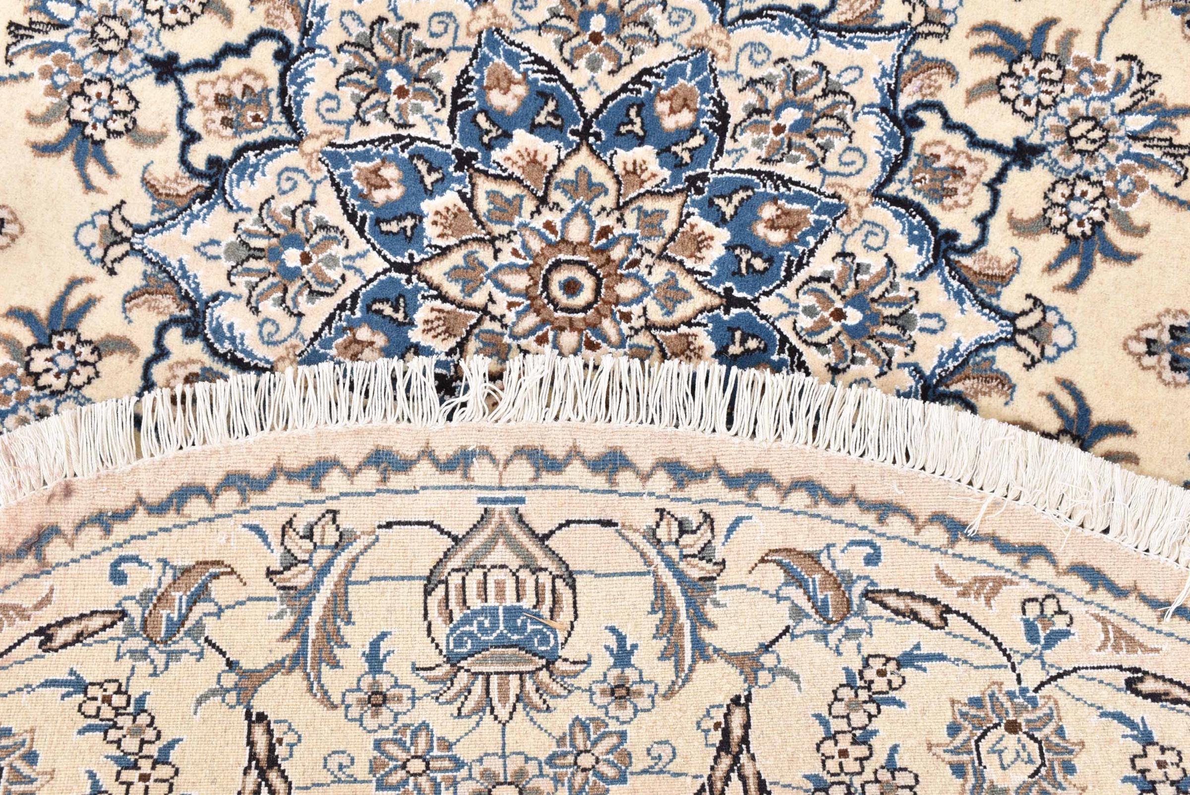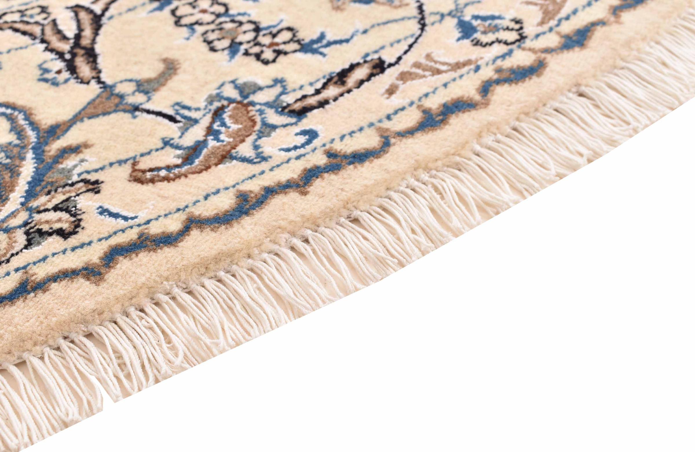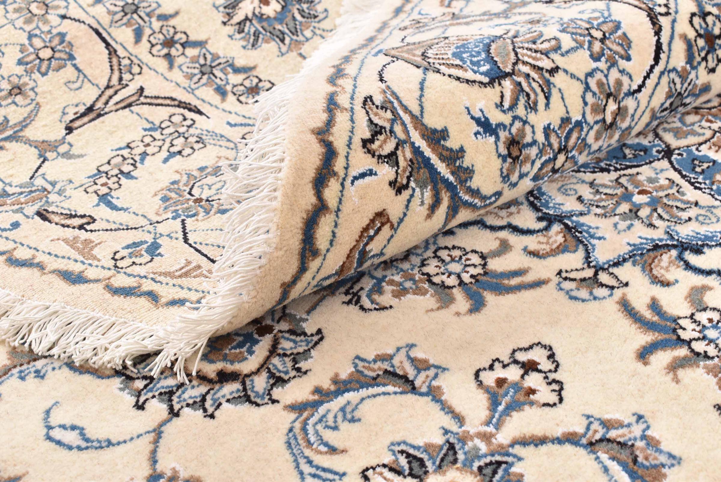 I tappeti della città di Nain, al confine con uno dei più grandi deserti dell'Iran, sono tra i tappeti persiani più famosi al mondo. Il loro tipico design è inconfondibile con ornamenti floreali, un medaglione centrale e sfumature beige e rosso o blu. Grazie alle loro denominazioni 4La, 6La, 9La e 12La, le sottigliezze di un tappeto Nain sono visibili a colpo d'occhio. Più basso è il numero "La", più alta è la densità del nodo e quindi più fine è il tappeto.