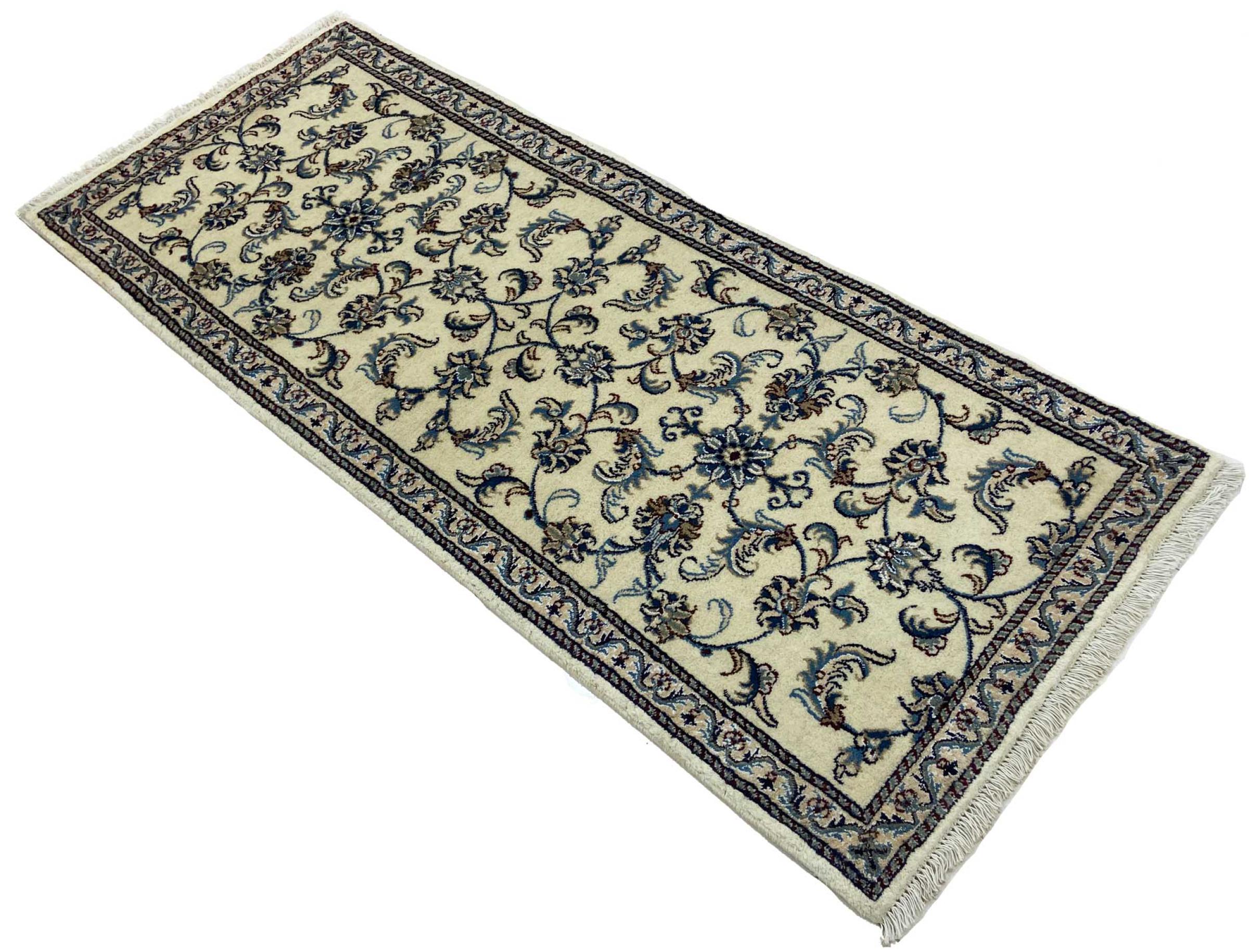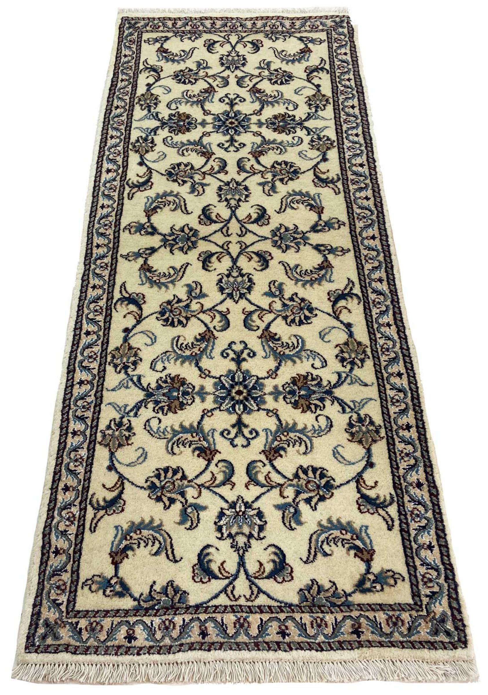 Tappeto-N.: 318871001245875 Dimensione: 204x81 cm Spessore: circa . 12 mm Nodi: 200 000 - 250 000 / m² Lavorazione: Annodato a mano Fondo: Lana filata a mano Catena: Cotone Origine: Persia / Iran Età: Nuovo Peso: circa . 7 kg Disponibile: Unico - Solo 1 disponibili