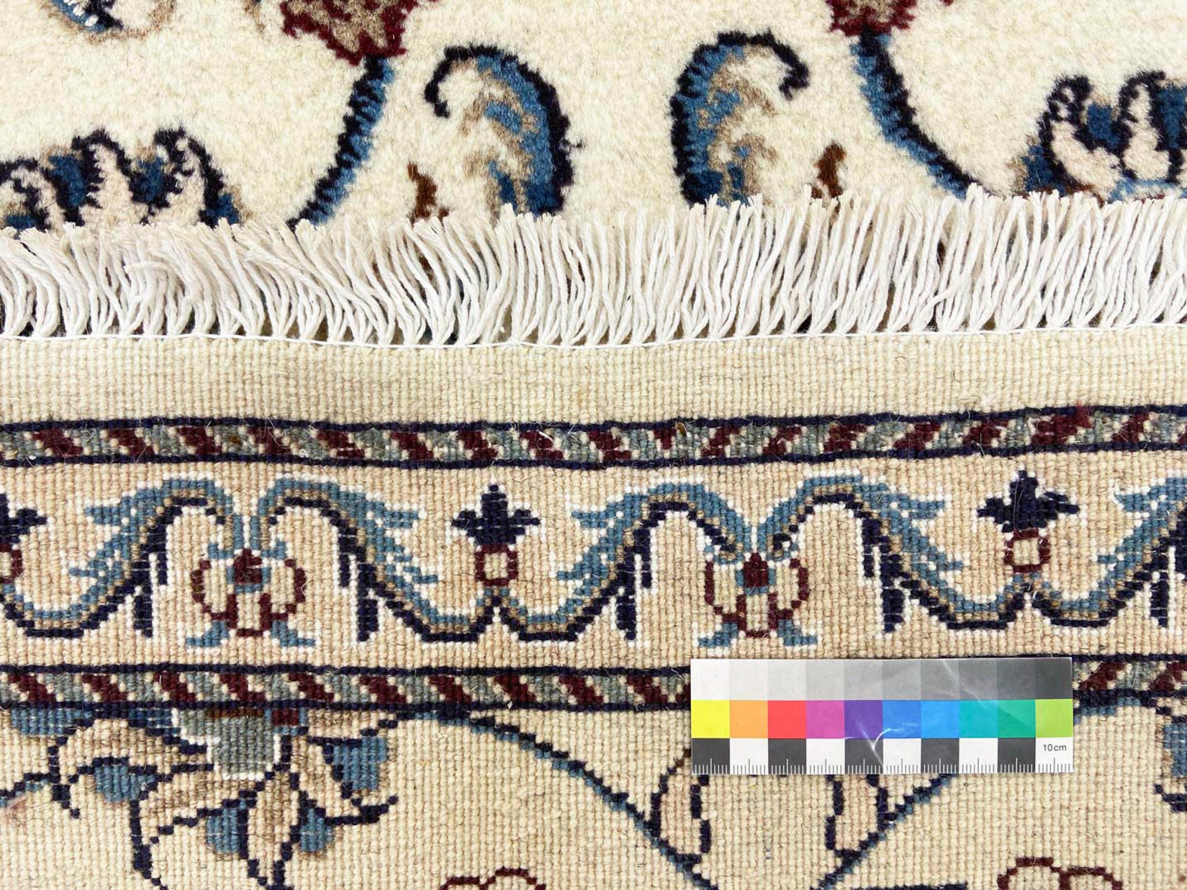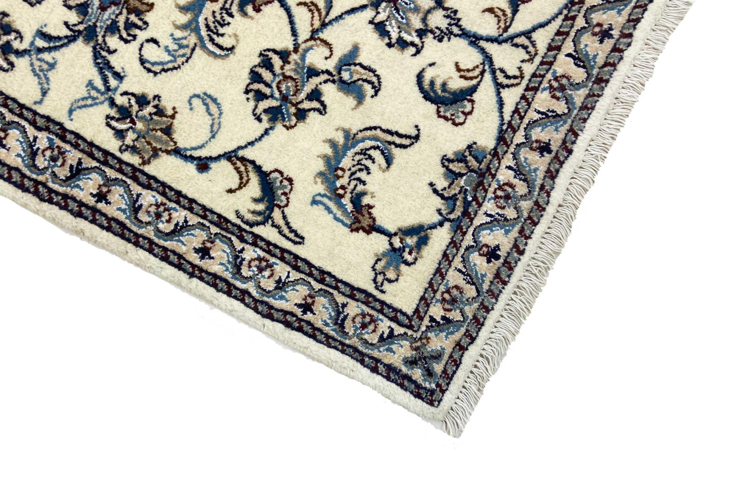 I tappeti della città di Nain, al confine con uno dei più grandi deserti dell'Iran, sono tra i tappeti persiani più famosi al mondo. Il loro tipico design è inconfondibile con ornamenti floreali, un medaglione centrale e sfumature beige e rosso o blu. Grazie alle loro denominazioni 4La, 6La, 9La e 12La, le sottigliezze di un tappeto Nain sono visibili a colpo d'occhio. Più basso è il numero "La", più alta è la densità del nodo e quindi più fine è il tappeto.