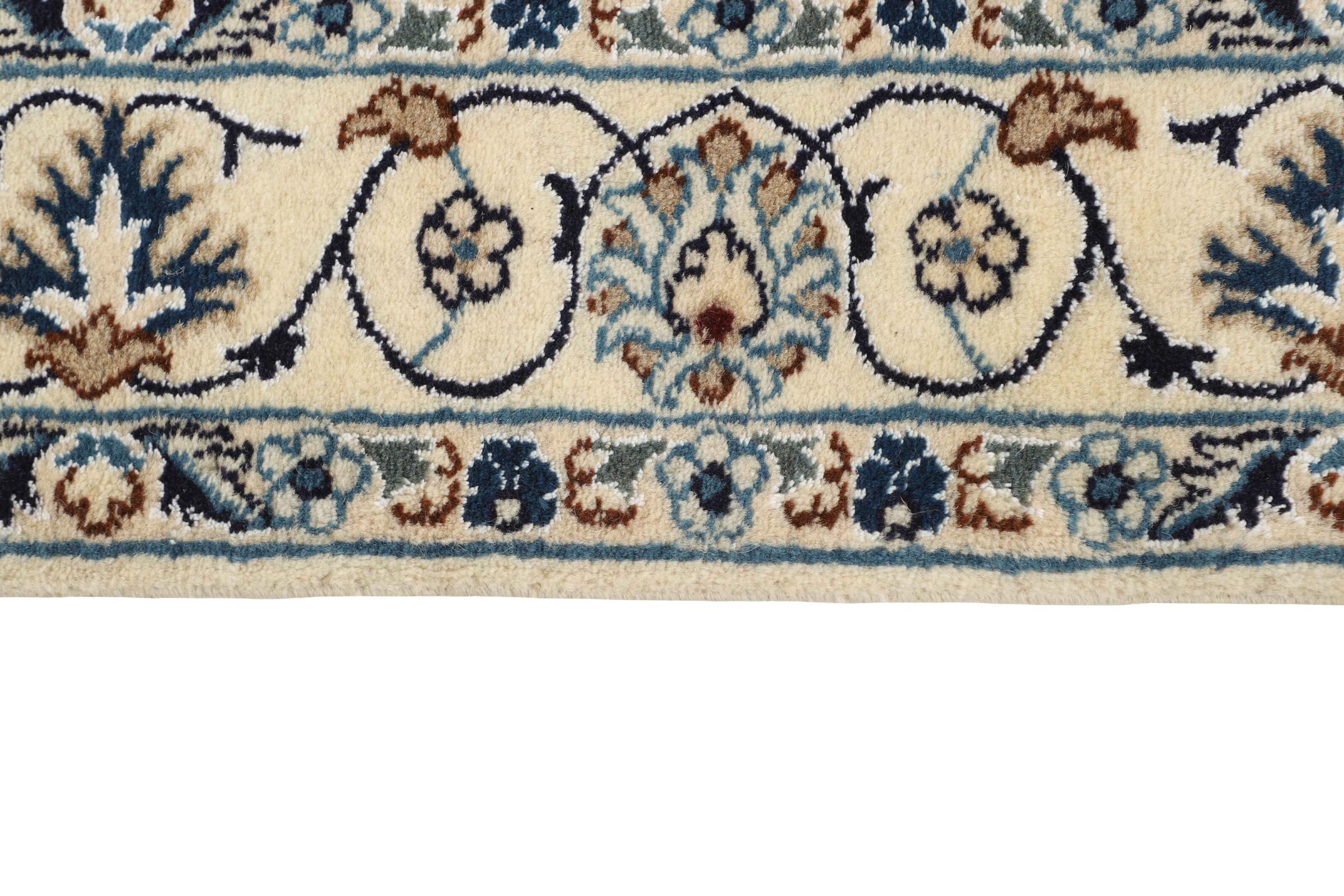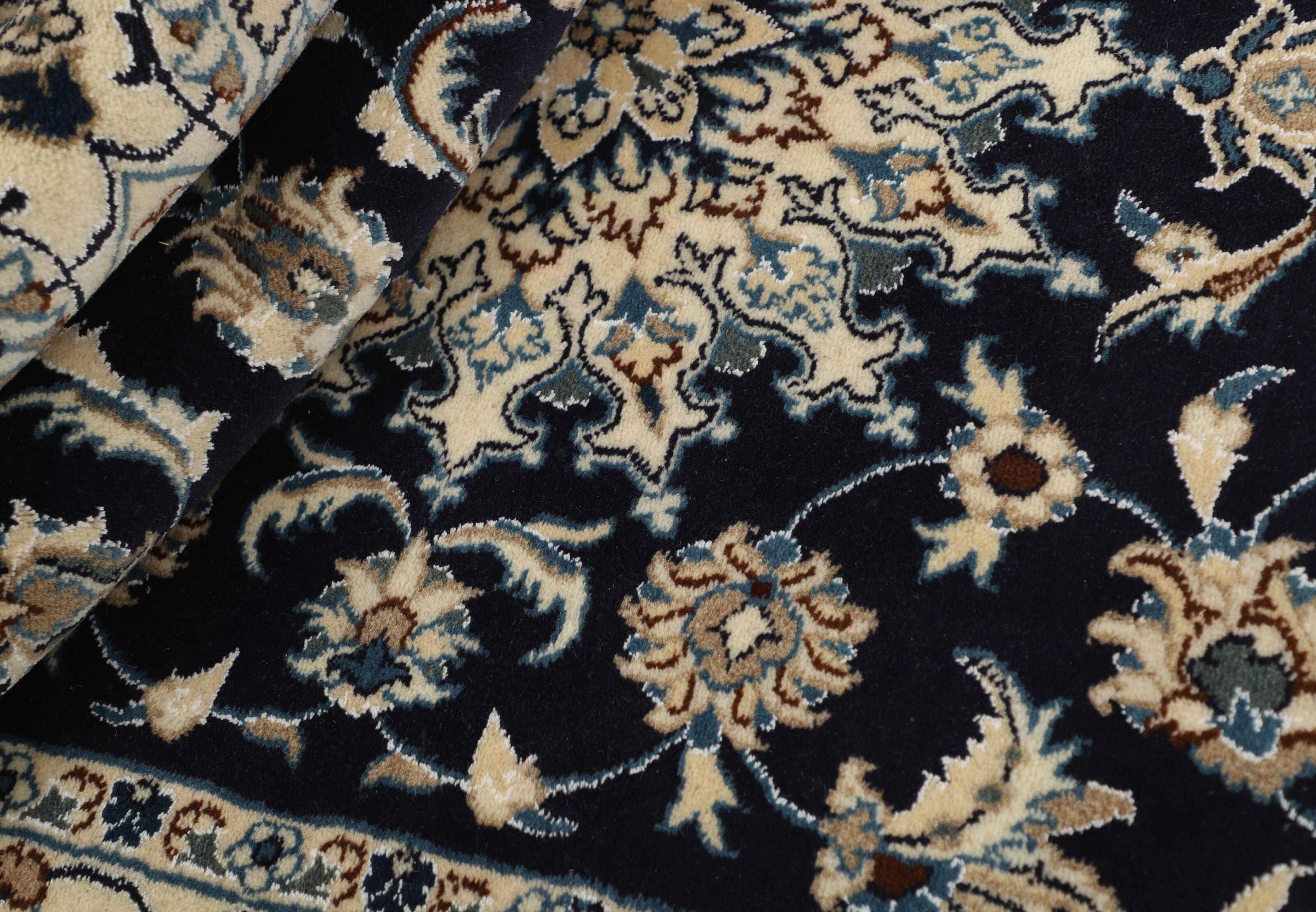Questo tappeto Nain appartiene alla classe 12La. Elegante e nobile si presenta nella sua tipica combinazione di colori Nain. Questo tappeto persiano è stato annodato a mano in lana e seta di alta qualità nella città di Nain, che si trova sulla parte occidentale del deserto Dascht-e-Kavir.