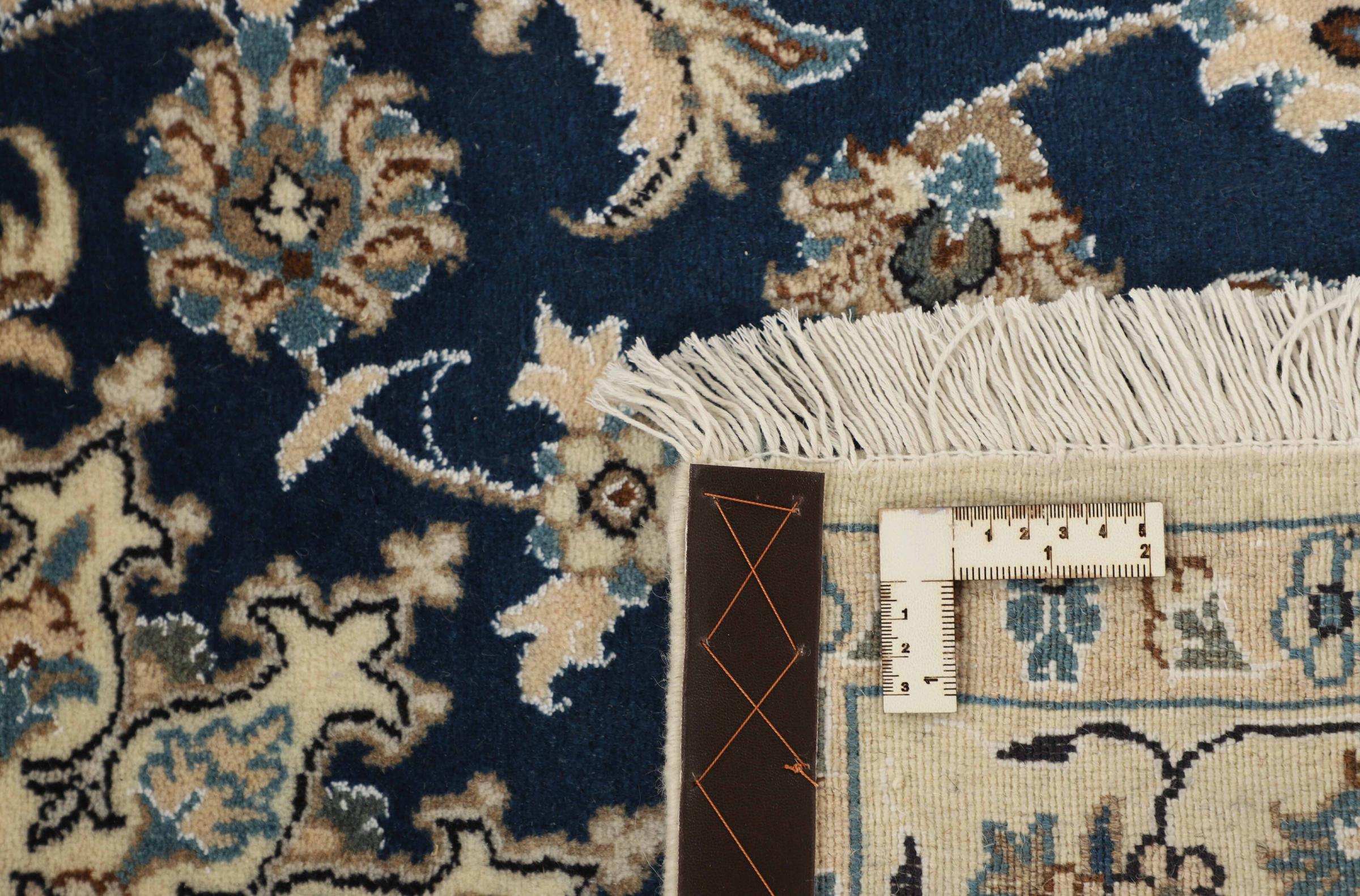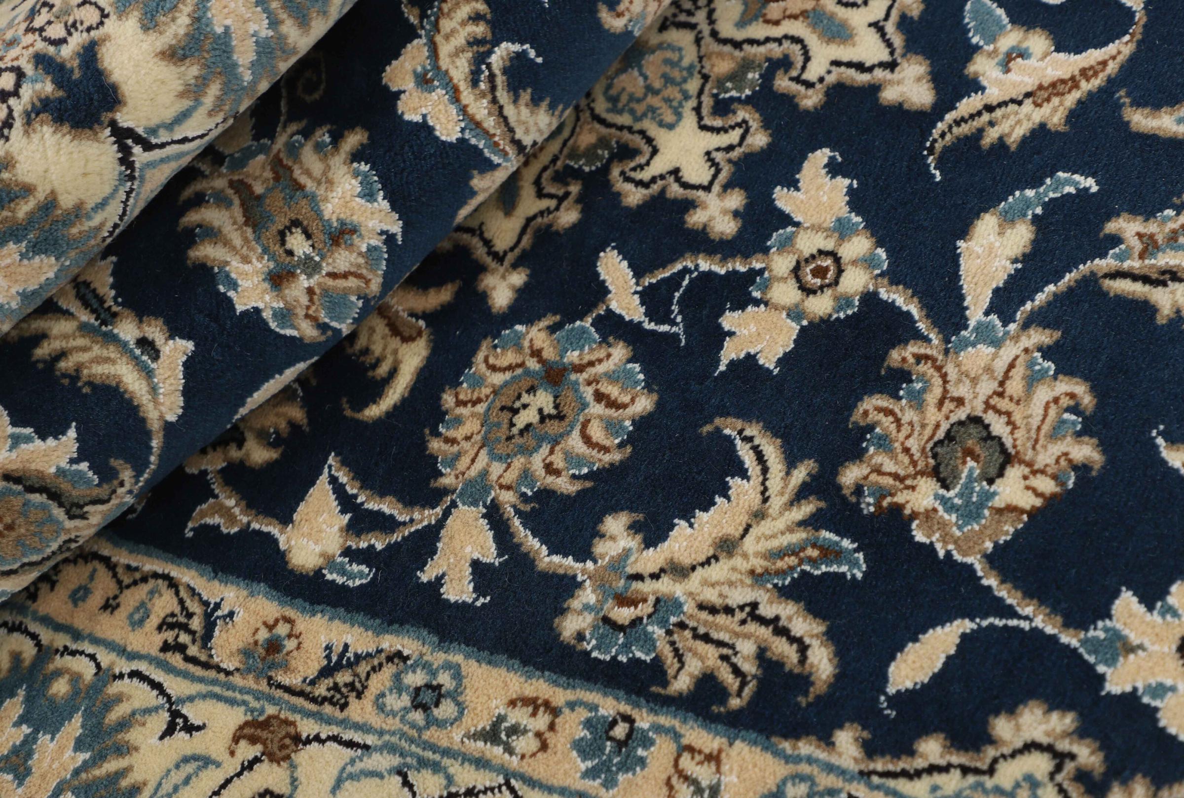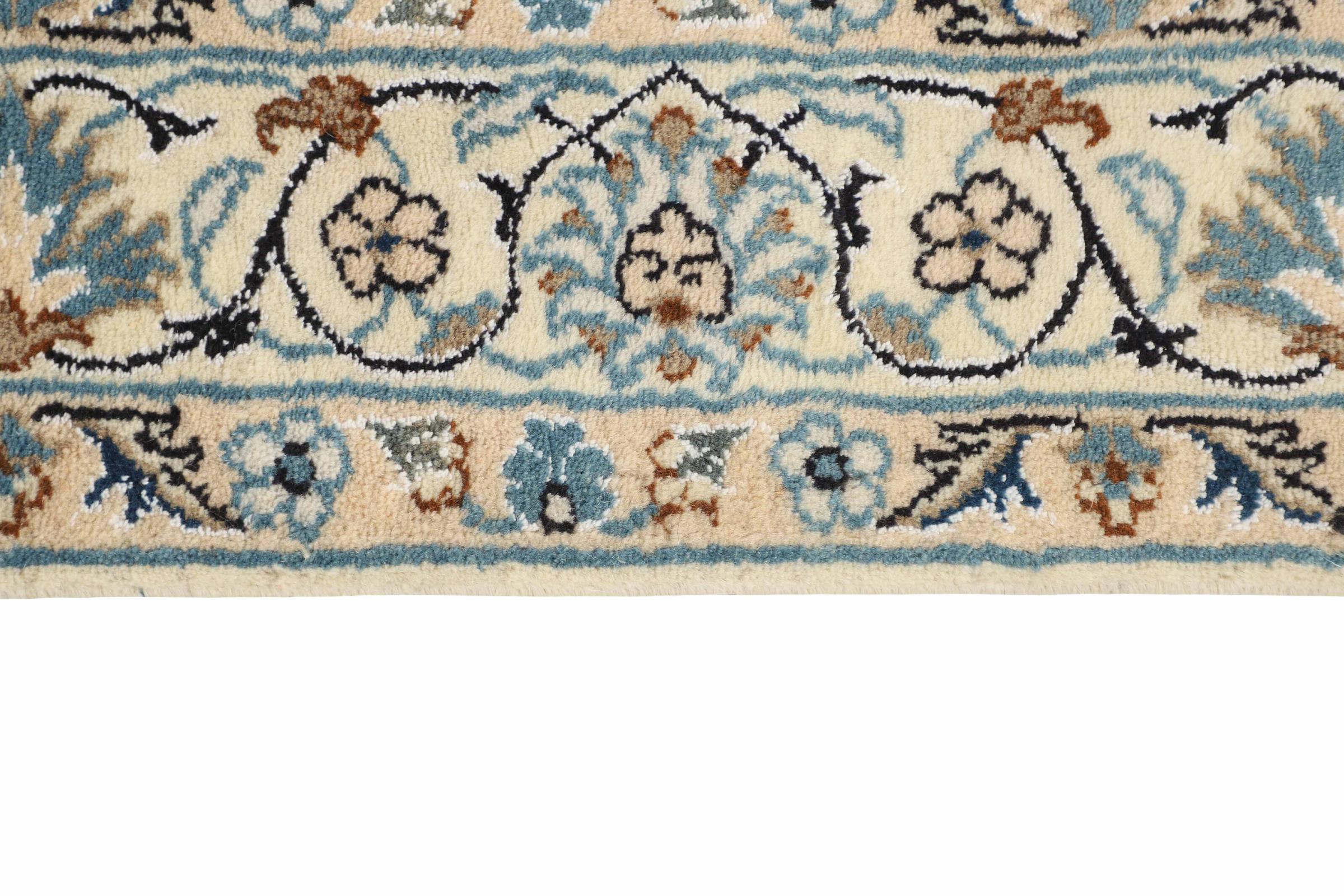 Questo tappeto Nain appartiene alla classe 12La. Elegante e nobile si presenta nella sua tipica combinazione di colori Nain. Questo tappeto persiano è stato annodato a mano in lana e seta di alta qualità nella città di Nain, che si trova sulla parte occidentale del deserto Dascht-e-Kavir.