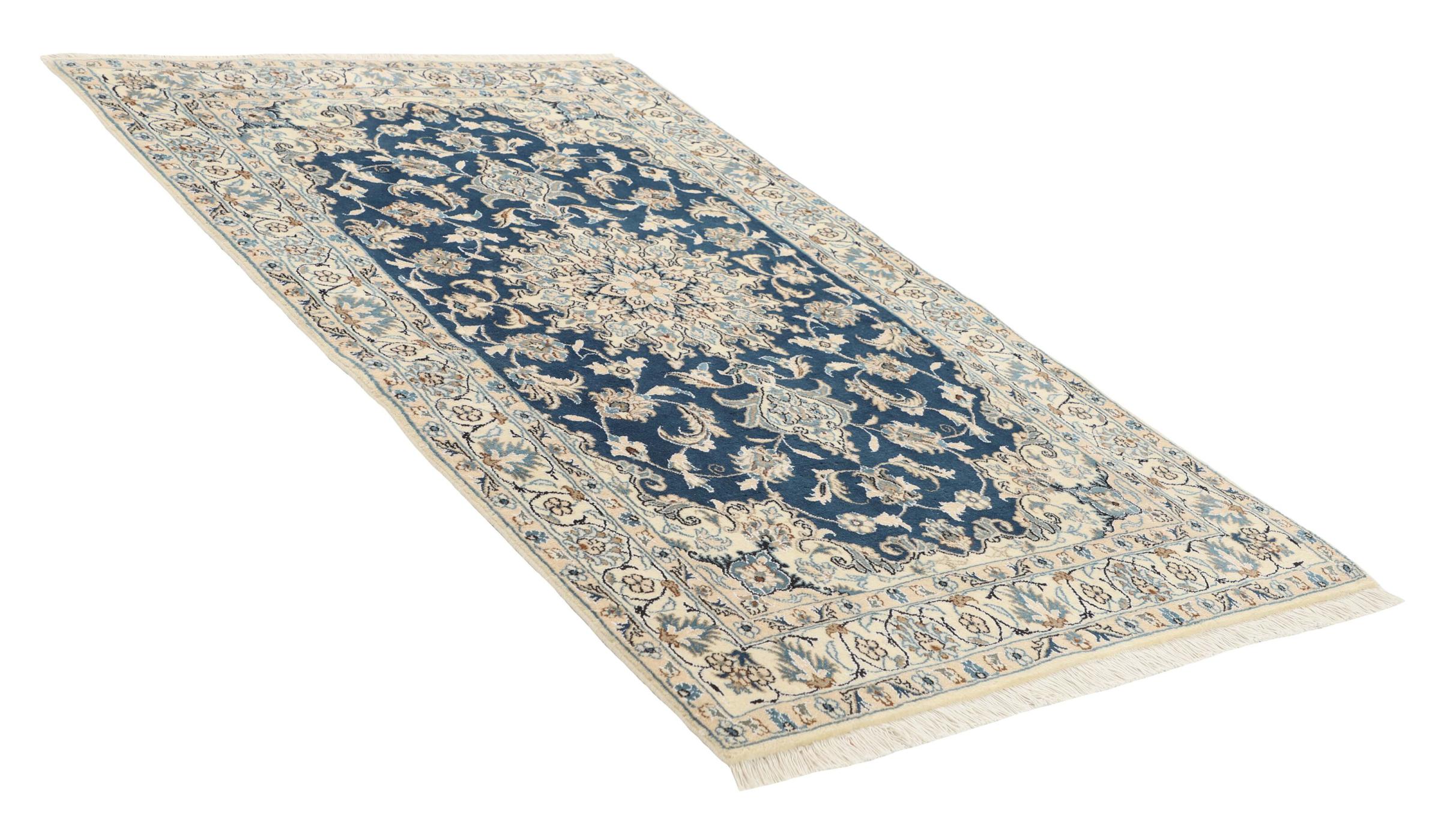 I tappeti della città di Nain, al confine con uno dei più grandi deserti dell'Iran, sono tra i tappeti persiani più famosi al mondo. Il loro tipico design è inconfondibile con ornamenti floreali, un medaglione centrale e sfumature beige e rosso o blu. Grazie alle loro denominazioni 4La, 6La, 9La e 12La, le sottigliezze di un tappeto Nain sono visibili a colpo d'occhio. Più basso è il numero "La", più alta è la densità del nodo e quindi più fine è il tappeto.