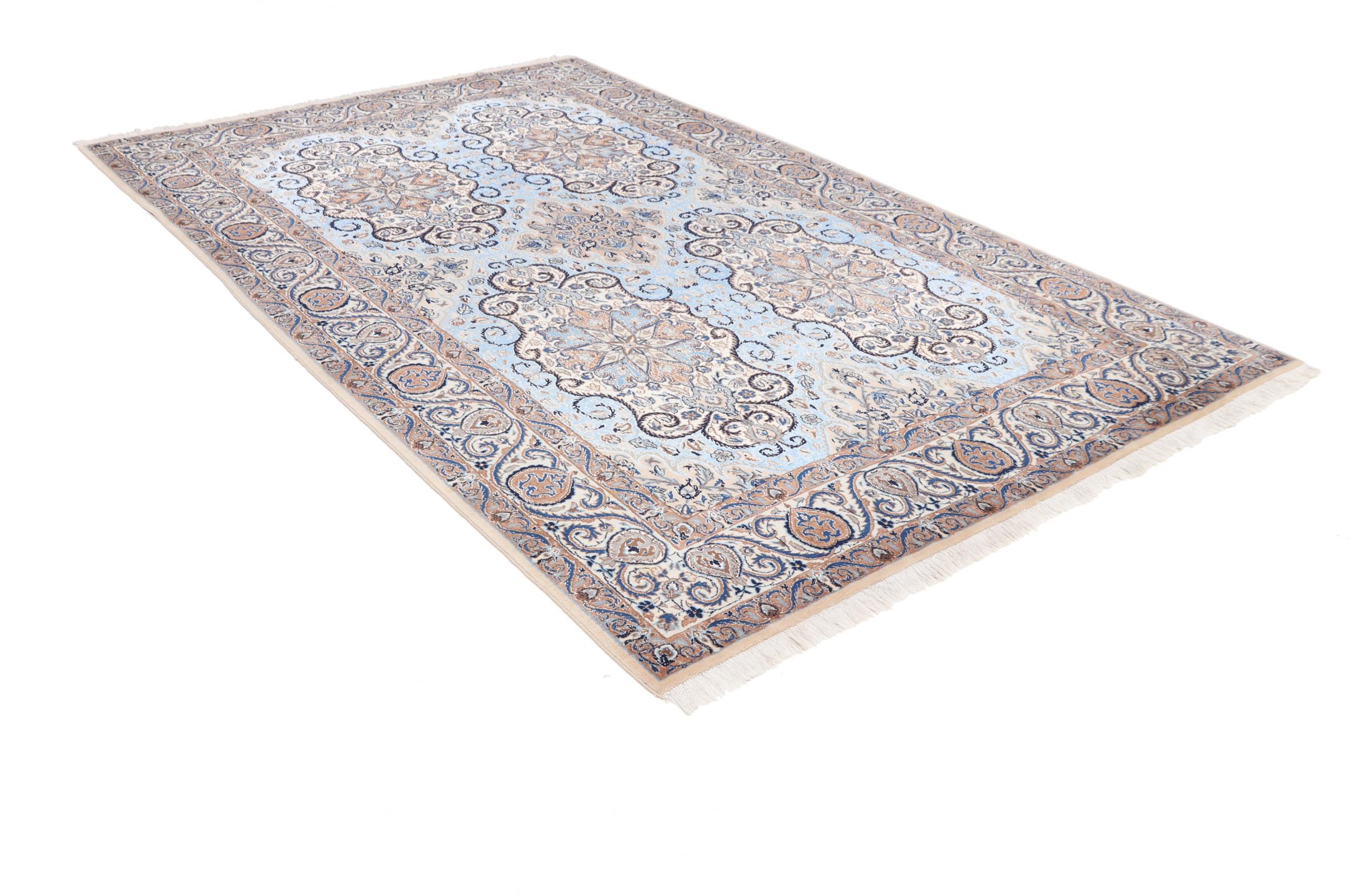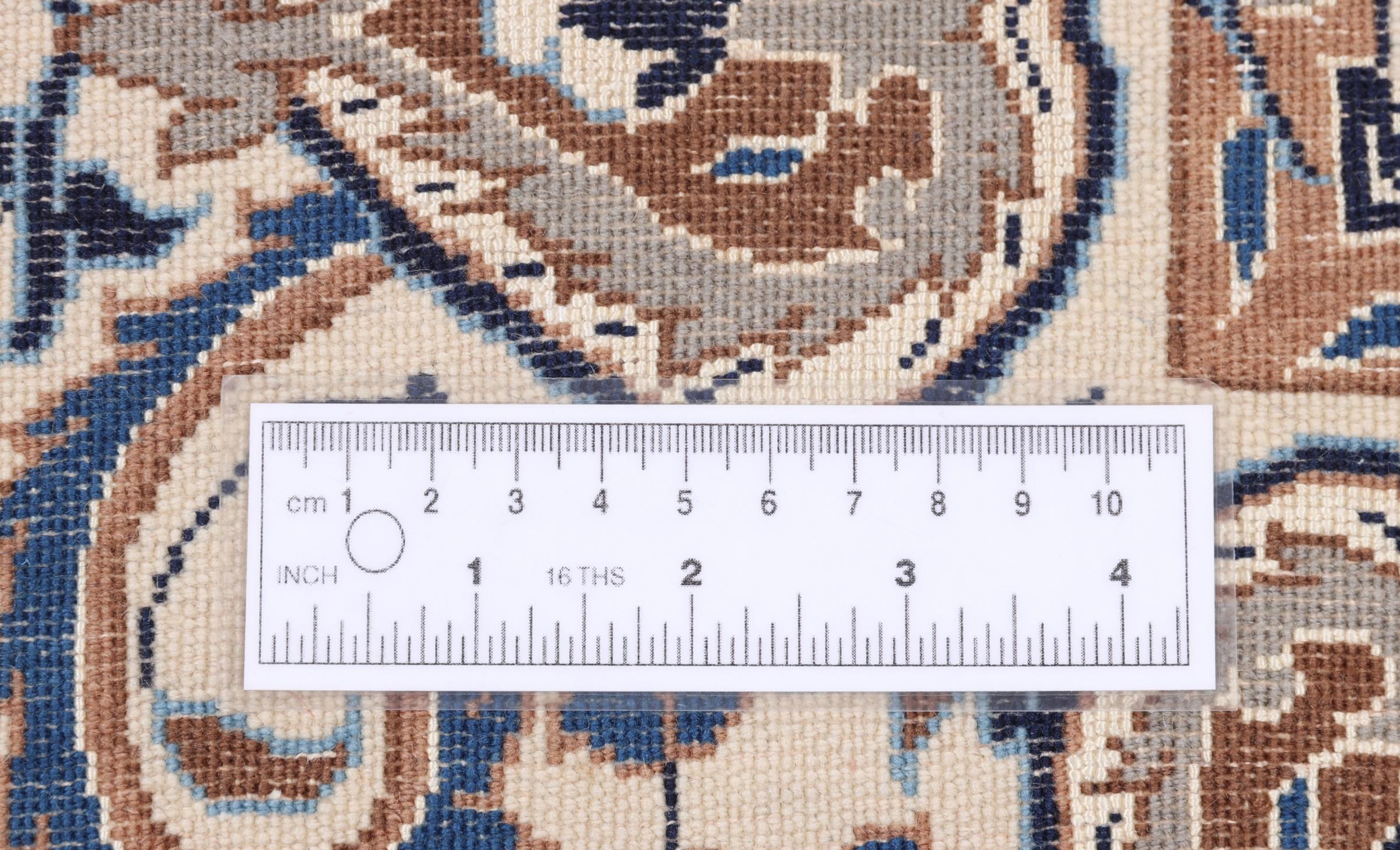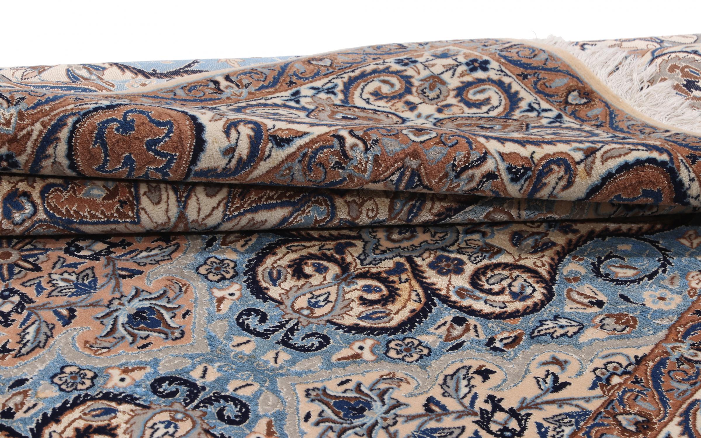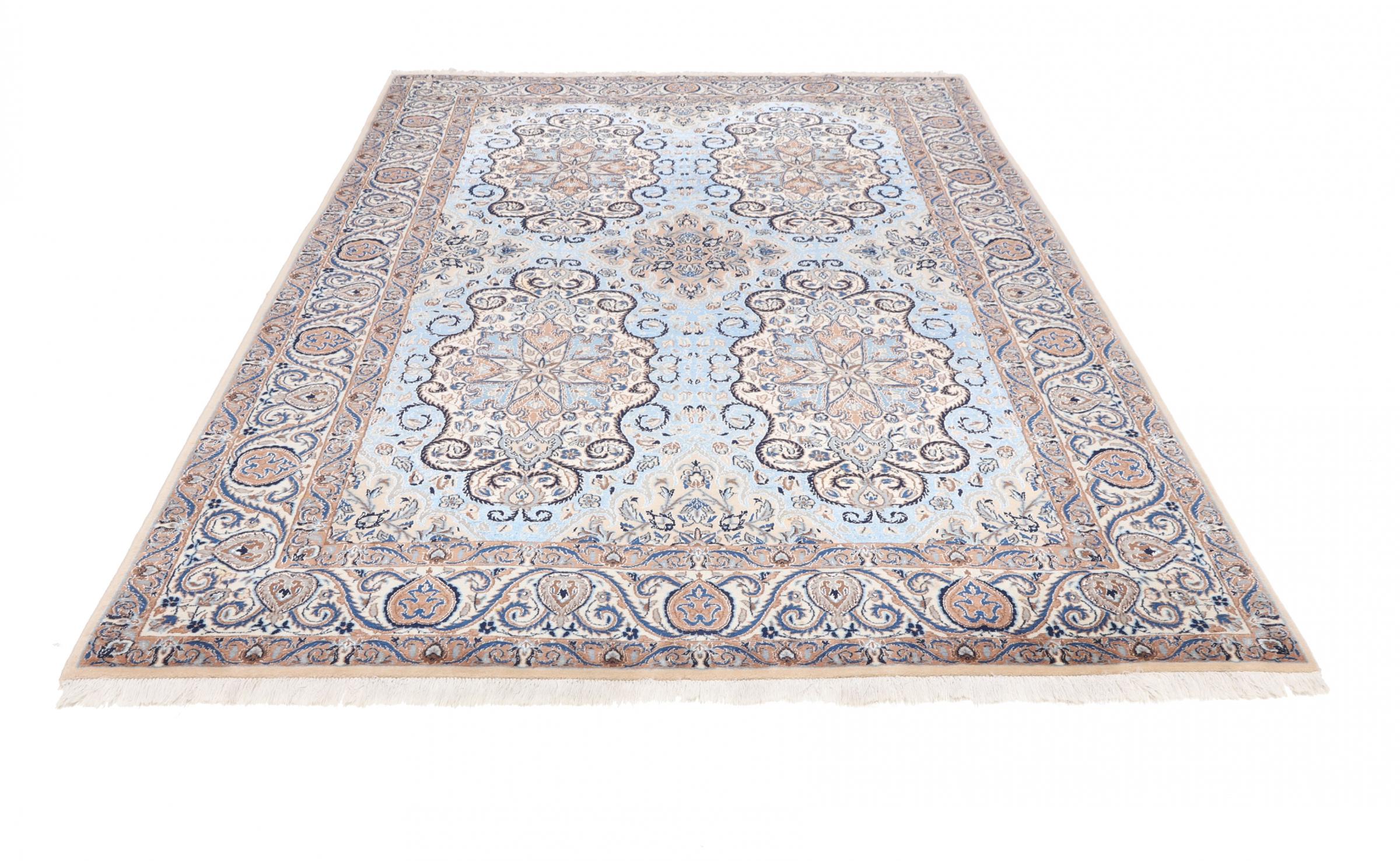 Questo tappeto Nain appartiene alla classe 9La.Lìottima qualità, il bel design orientale con disegni curvilinei soddisfa ogni cliente. Questo tappeto veniva realizzato nell’omonima città Wustend Nain a ovest del deserto Dascht-e-Kavir , con lana preziosa e seta naturale.