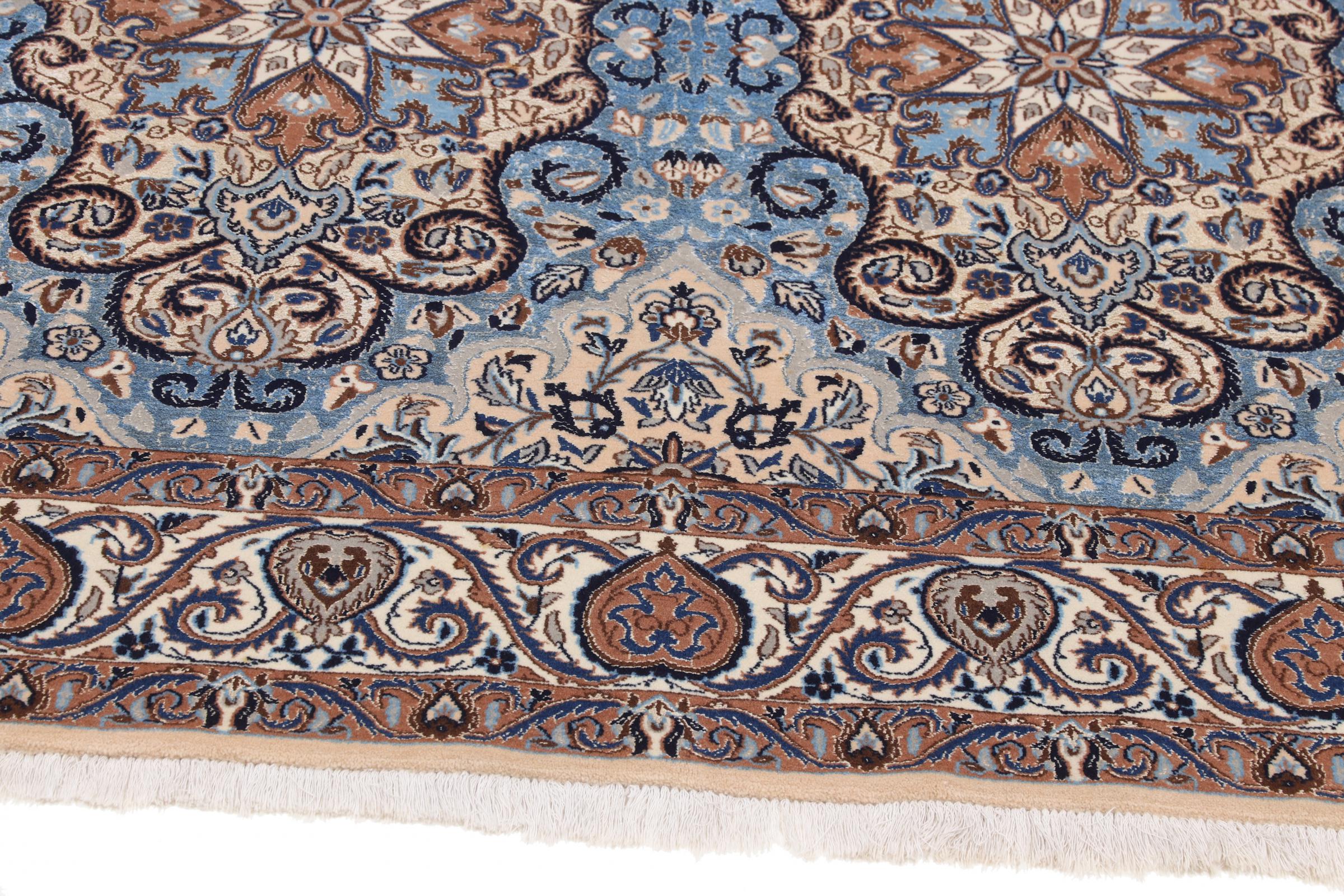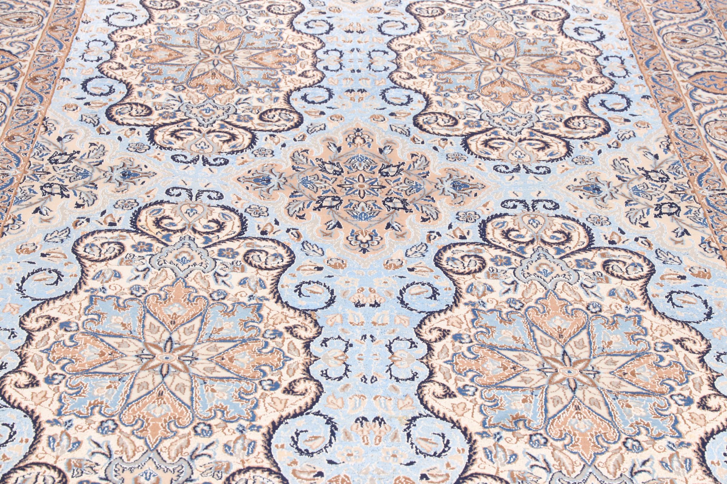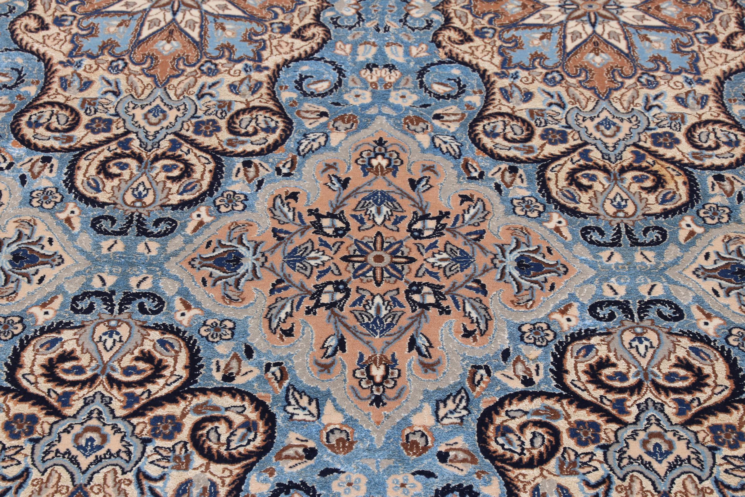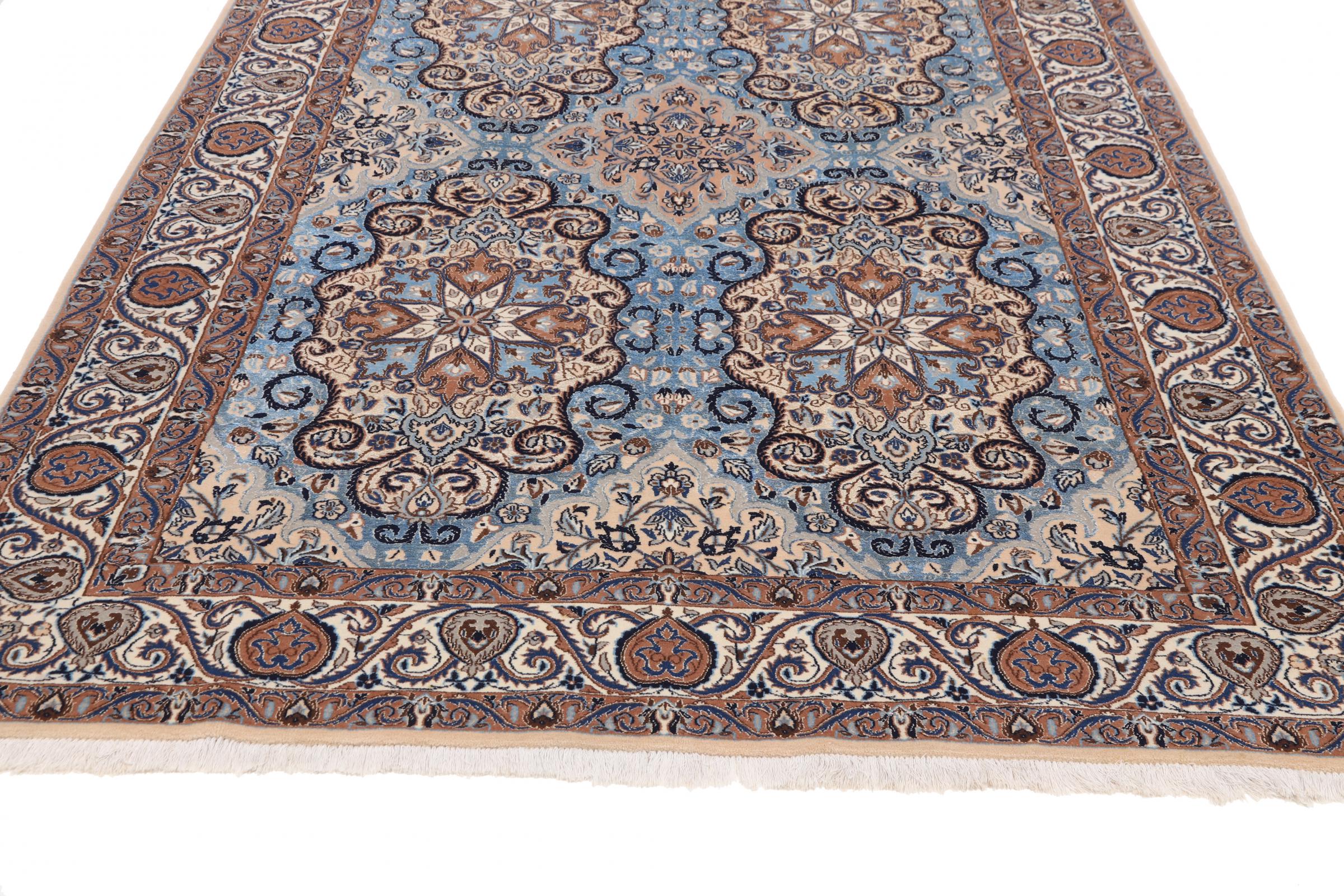 Questo tappeto Nain appartiene alla classe 9La.Lìottima qualità, il bel design orientale con disegni curvilinei soddisfa ogni cliente. Questo tappeto veniva realizzato nell’omonima città Wustend Nain a ovest del deserto Dascht-e-Kavir , con lana preziosa e seta naturale.
