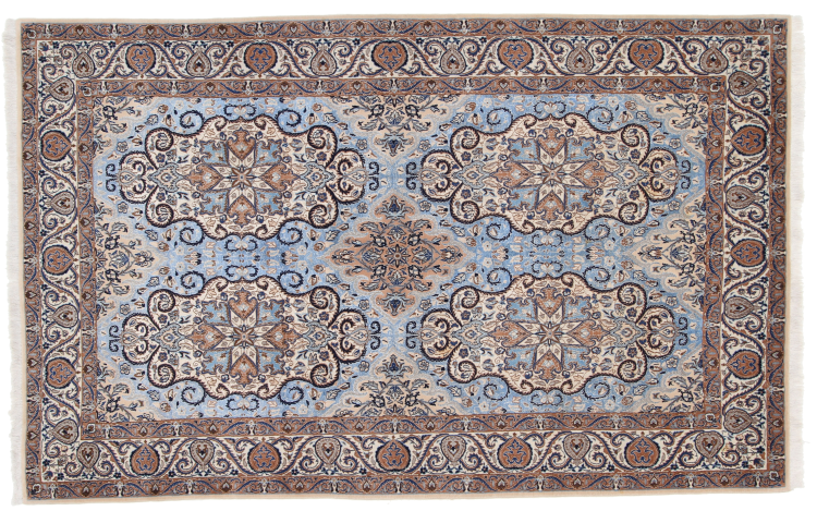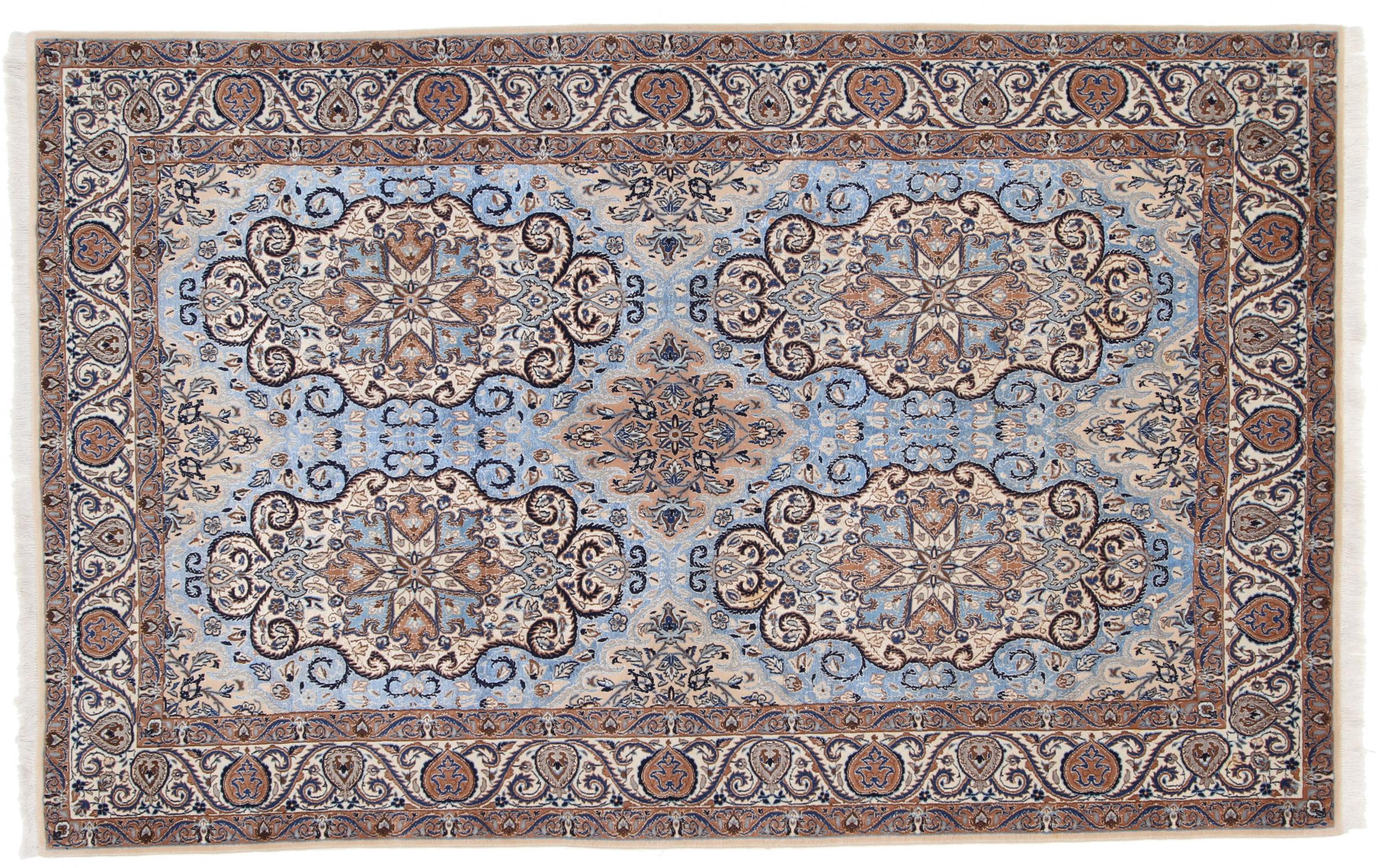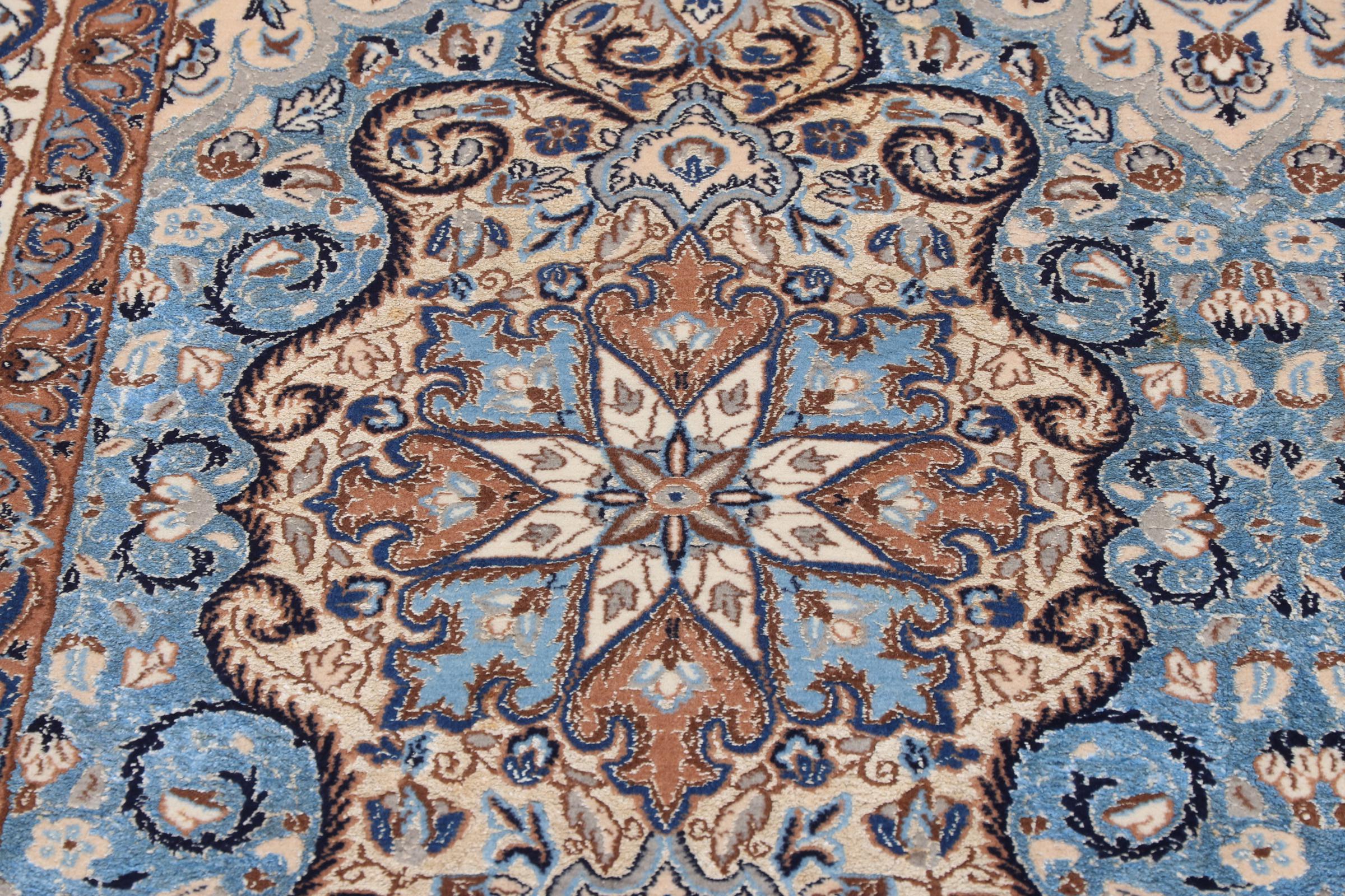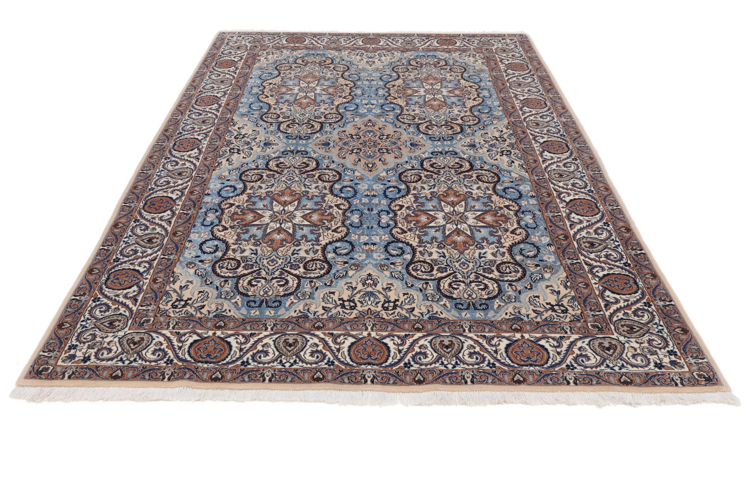 Questo tappeto Nain appartiene alla classe 9La.Lìottima qualità, il bel design orientale con disegni curvilinei soddisfa ogni cliente. Questo tappeto veniva realizzato nell’omonima città Wustend Nain a ovest del deserto Dascht-e-Kavir , con lana preziosa e seta naturale.