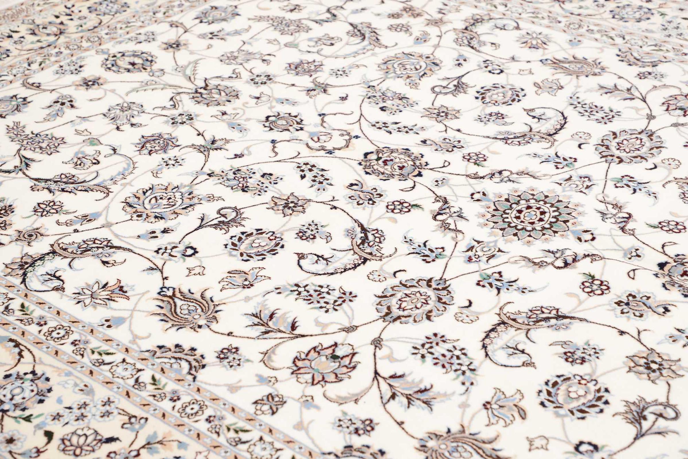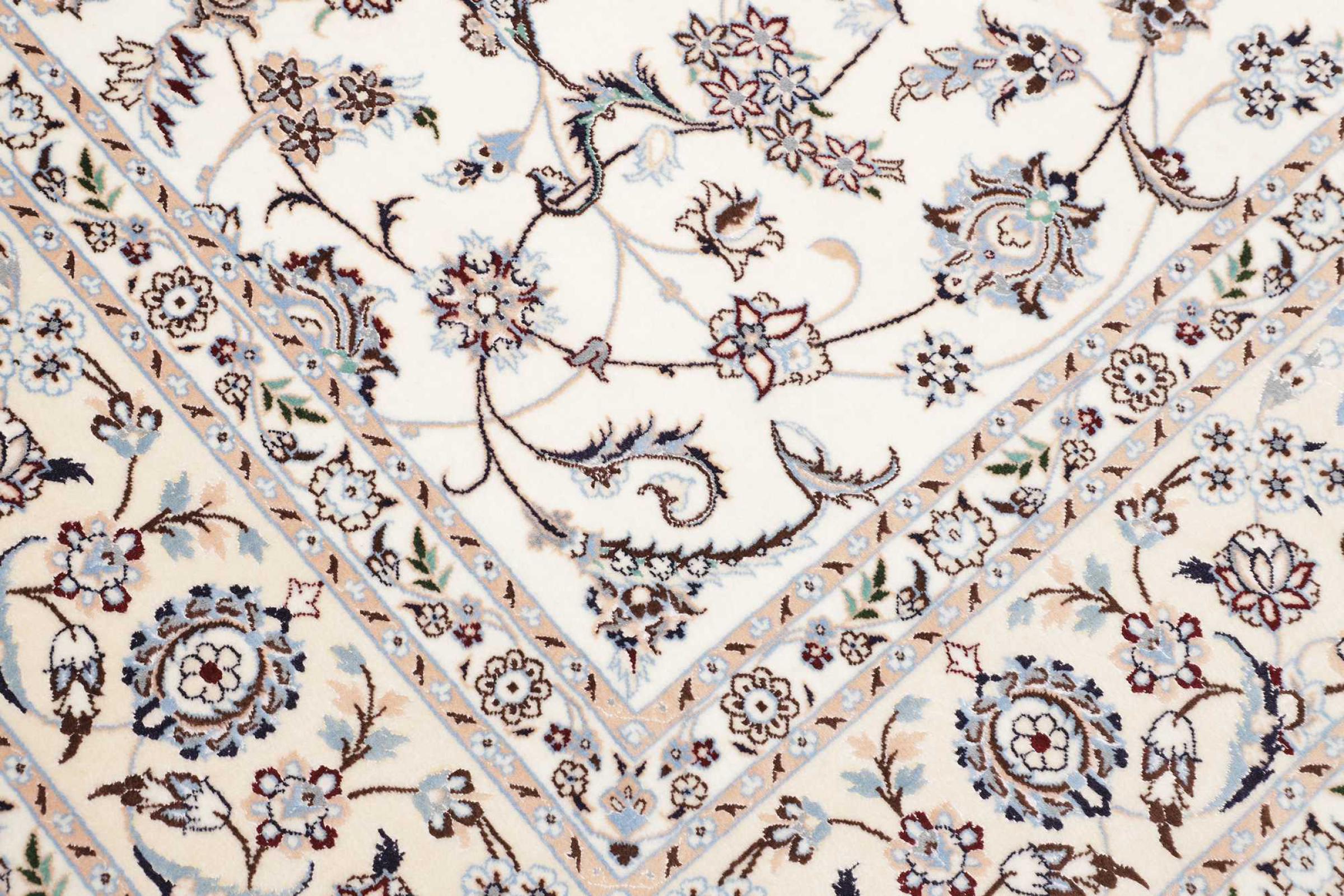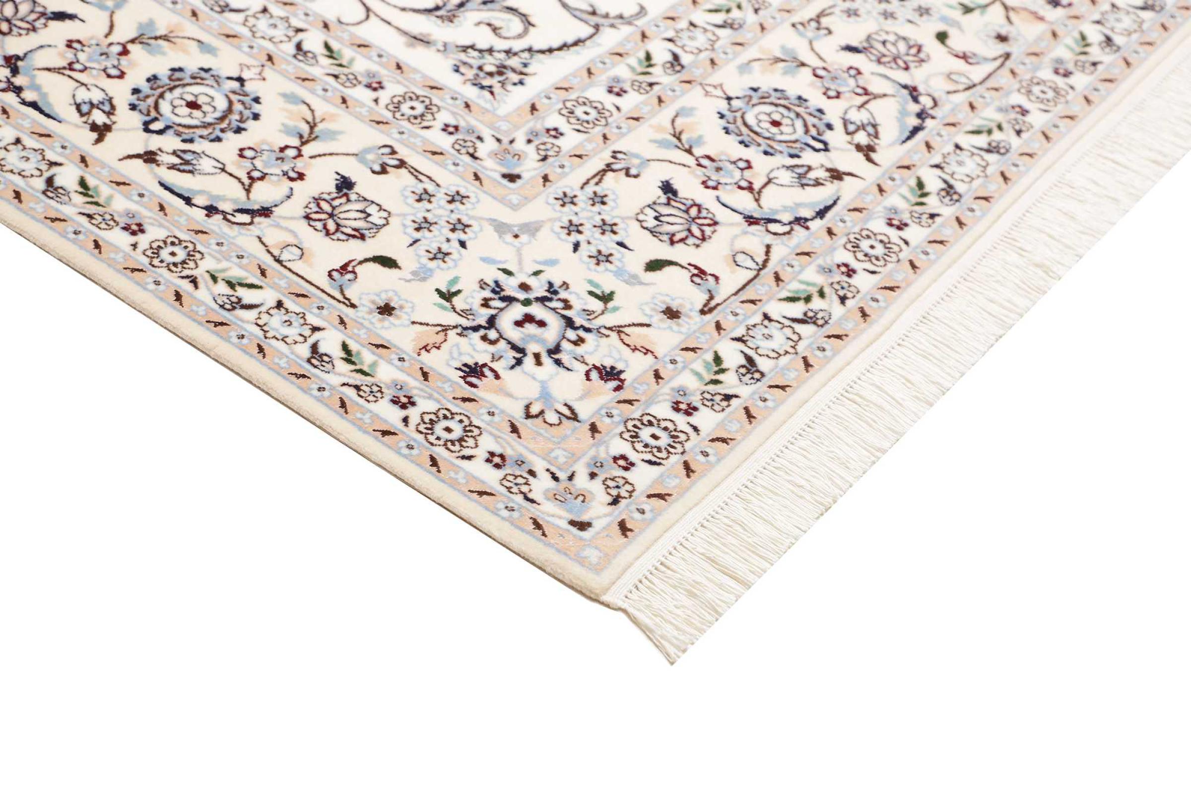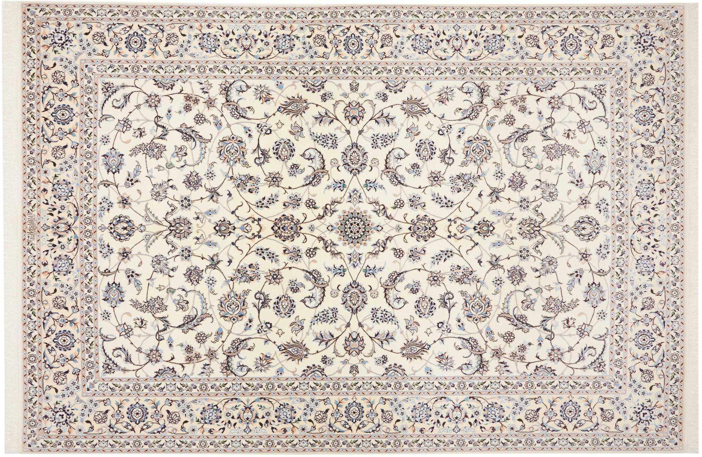 I tappeti della città di Nain, al confine con uno dei più grandi deserti dell'Iran, sono tra i tappeti persiani più famosi al mondo. Il loro tipico design è inconfondibile con ornamenti floreali, un medaglione centrale e sfumature beige e rosso o blu. Grazie alle loro denominazioni 4La, 6La, 9La e 12La, le sottigliezze di un tappeto Nain sono visibili a colpo d'occhio. Più basso è il numero "La", più alta è la densità del nodo e quindi più fine è il tappeto.