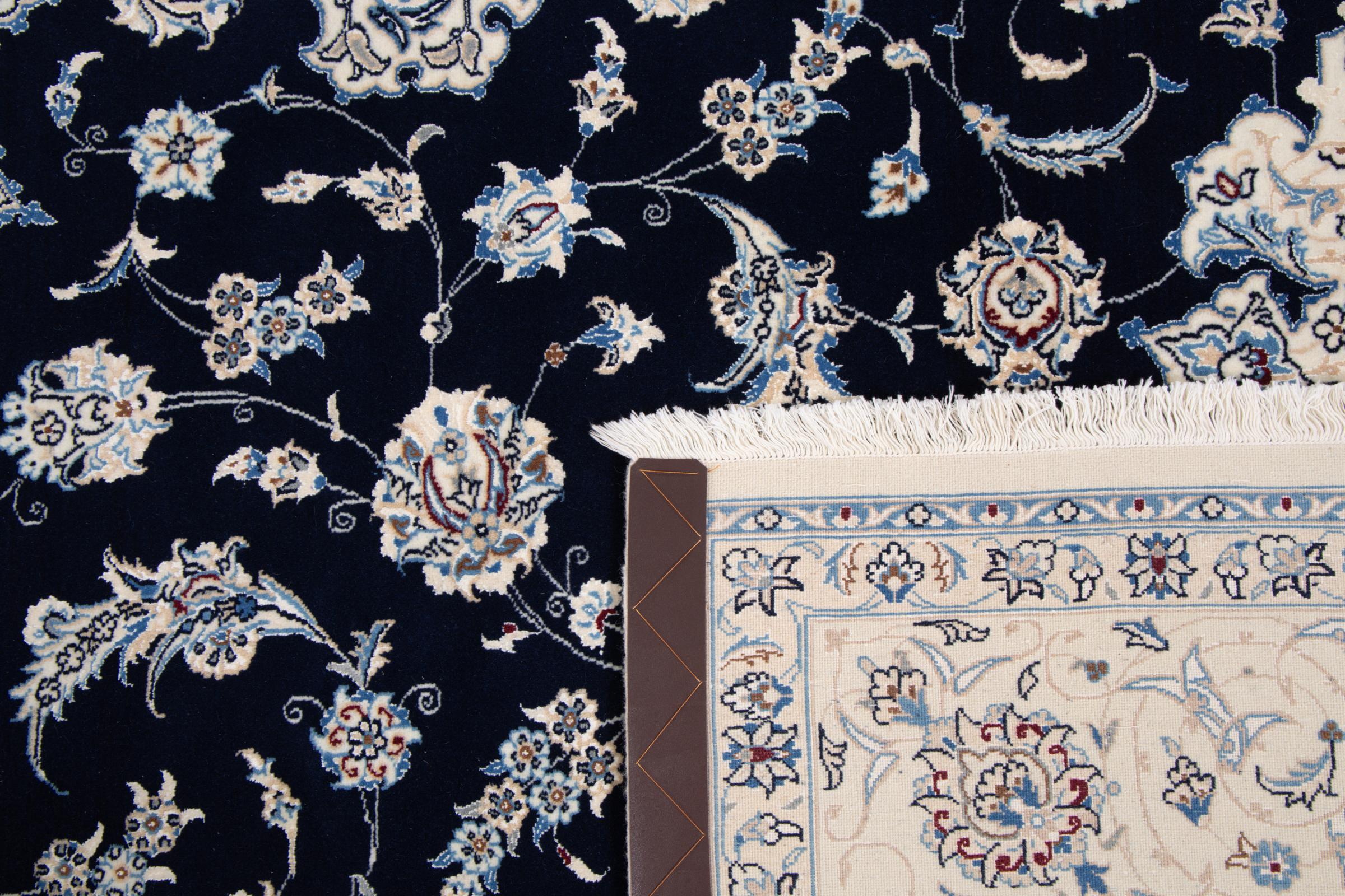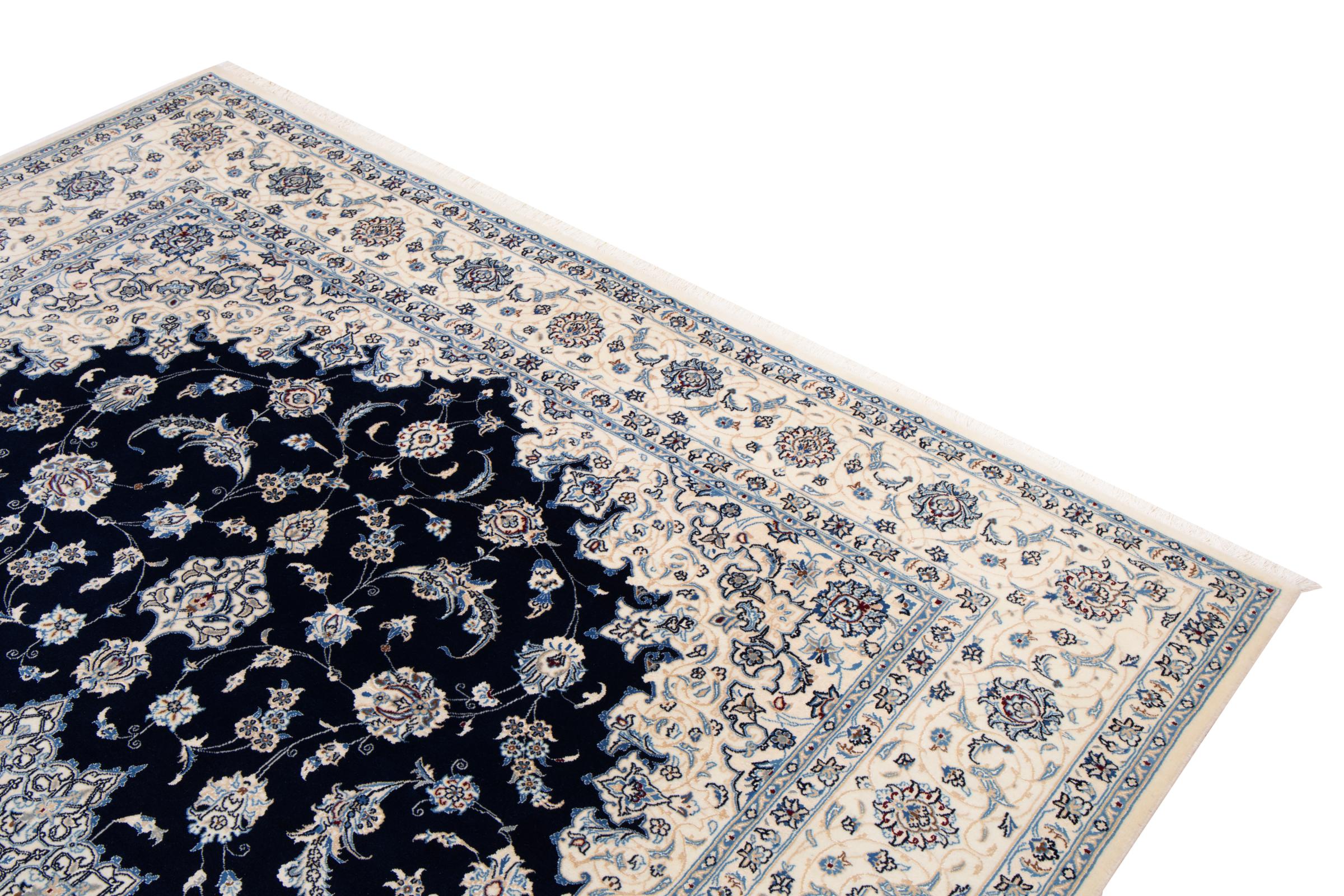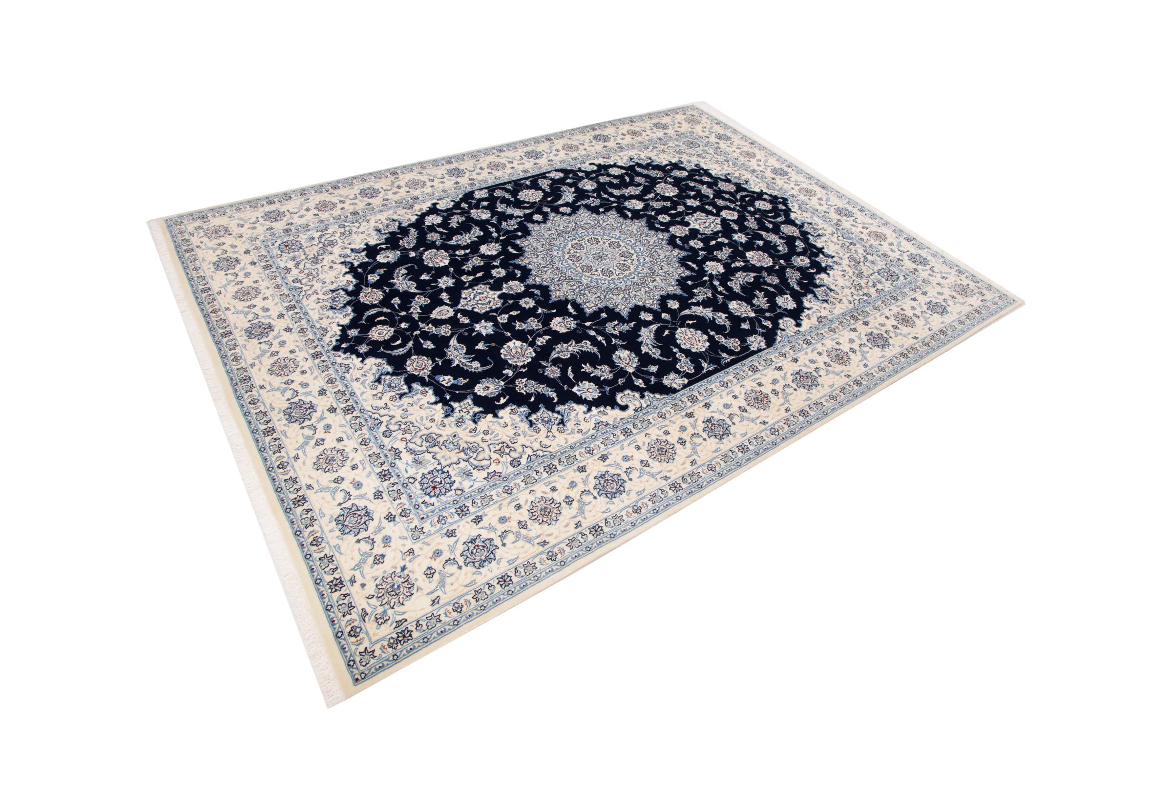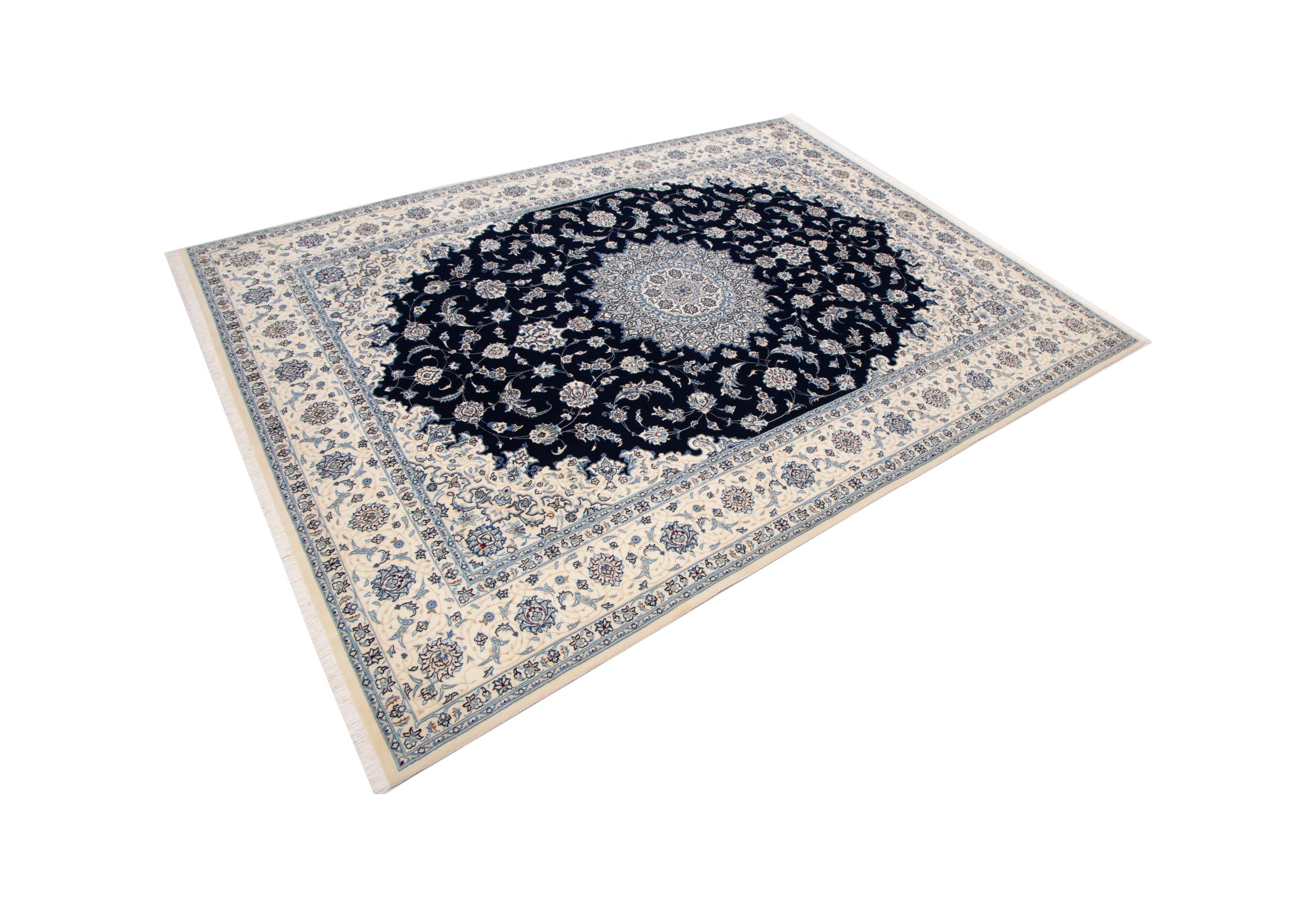 Questo tappeto Nain appartiene alla classe 9La.Lìottima qualità, il bel design orientale con disegni curvilinei soddisfa ogni cliente. Questo tappeto veniva realizzato nell’omonima città Wustend Nain a ovest del deserto Dascht-e-Kavir , con lana preziosa e seta naturale.