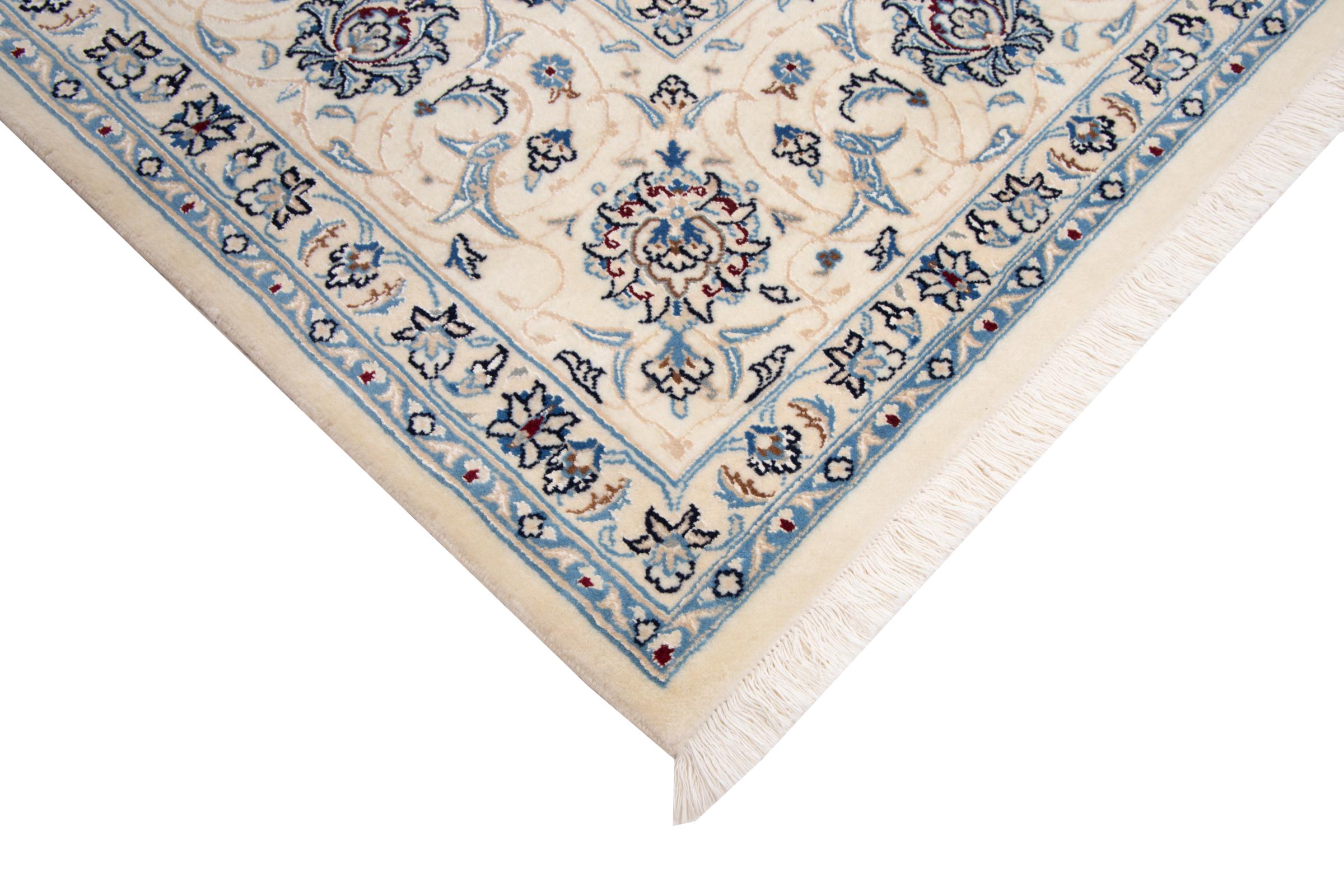 I tappeti della città di Nain, al confine con uno dei più grandi deserti dell'Iran, sono tra i tappeti persiani più famosi al mondo. Il loro tipico design è inconfondibile con ornamenti floreali, un medaglione centrale e sfumature beige e rosso o blu. Grazie alle loro denominazioni 4La, 6La, 9La e 12La, le sottigliezze di un tappeto Nain sono visibili a colpo d'occhio. Più basso è il numero "La", più alta è la densità del nodo e quindi più fine è il tappeto.