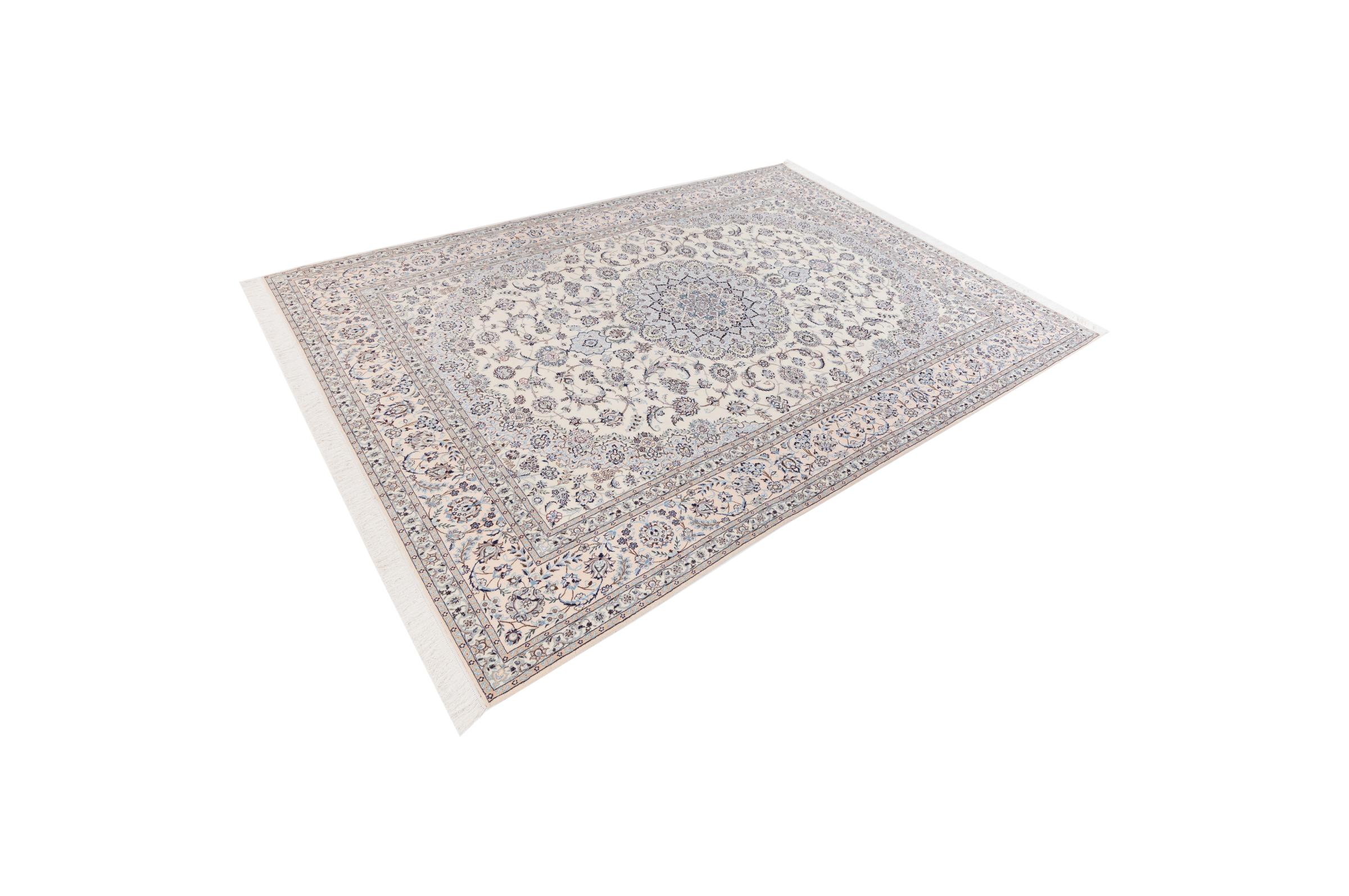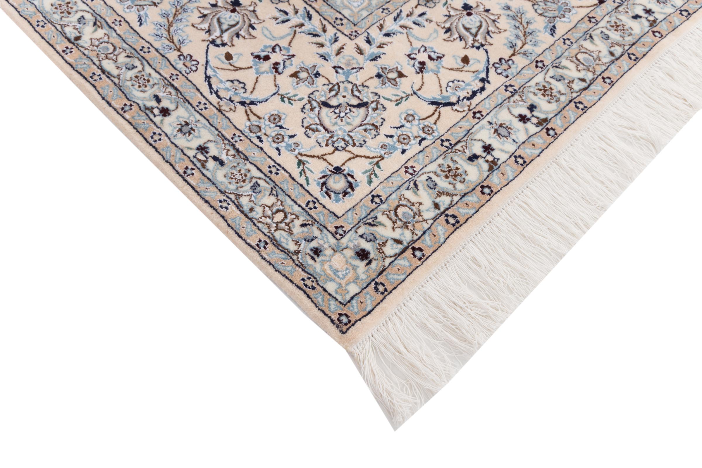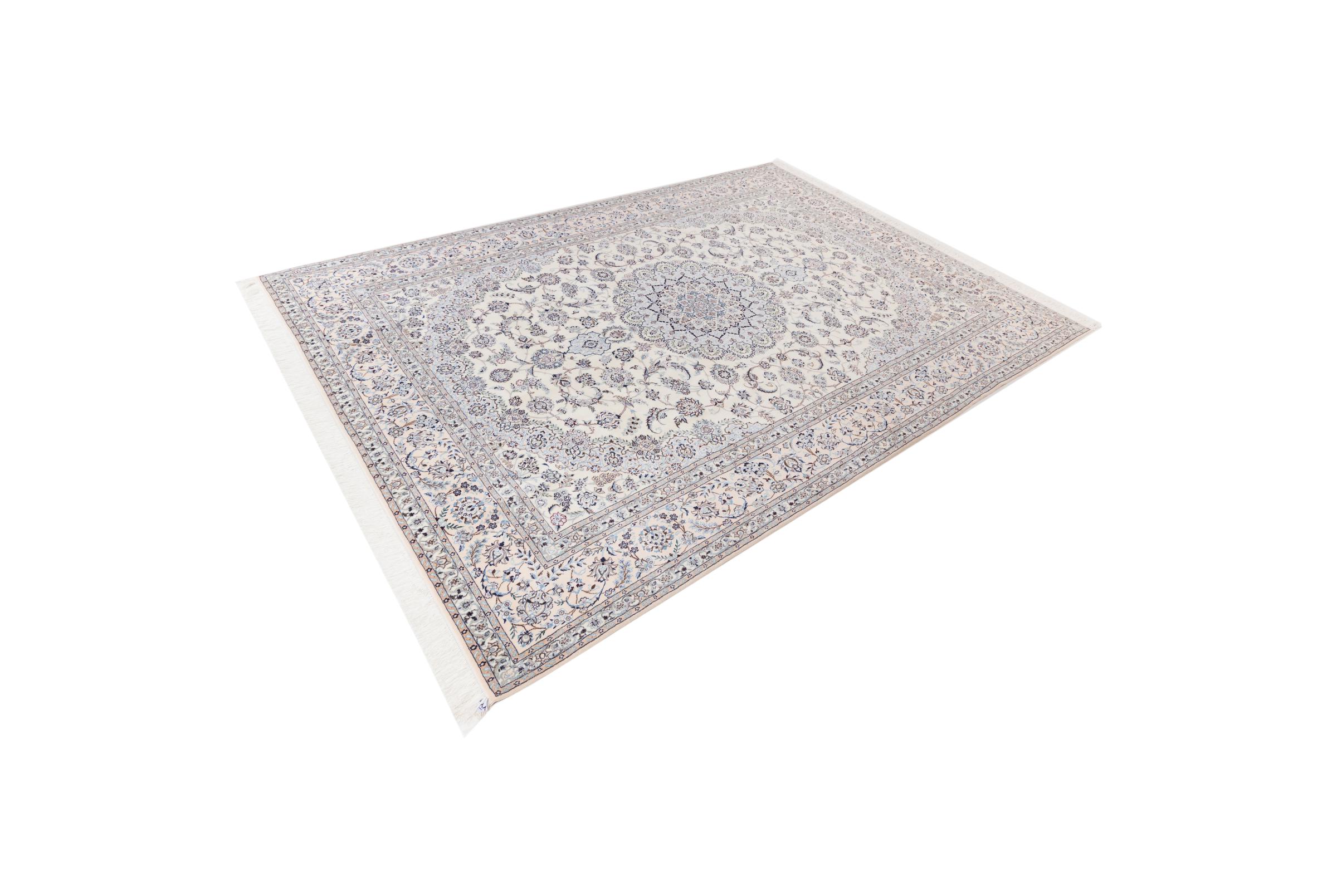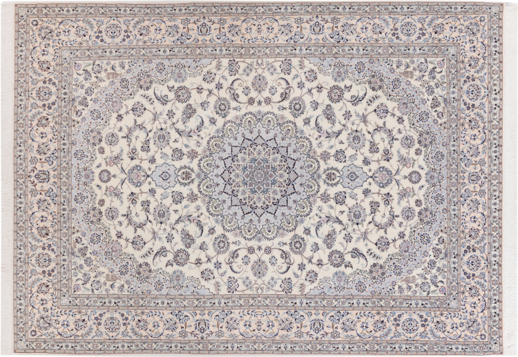 I tappeti della città di Nain, al confine con uno dei più grandi deserti dell'Iran, sono tra i tappeti persiani più famosi al mondo. Il loro tipico design è inconfondibile con ornamenti floreali, un medaglione centrale e sfumature beige e rosso o blu. Grazie alle loro denominazioni 4La, 6La, 9La e 12La, le sottigliezze di un tappeto Nain sono visibili a colpo d'occhio. Più basso è il numero "La", più alta è la densità del nodo e quindi più fine è il tappeto.