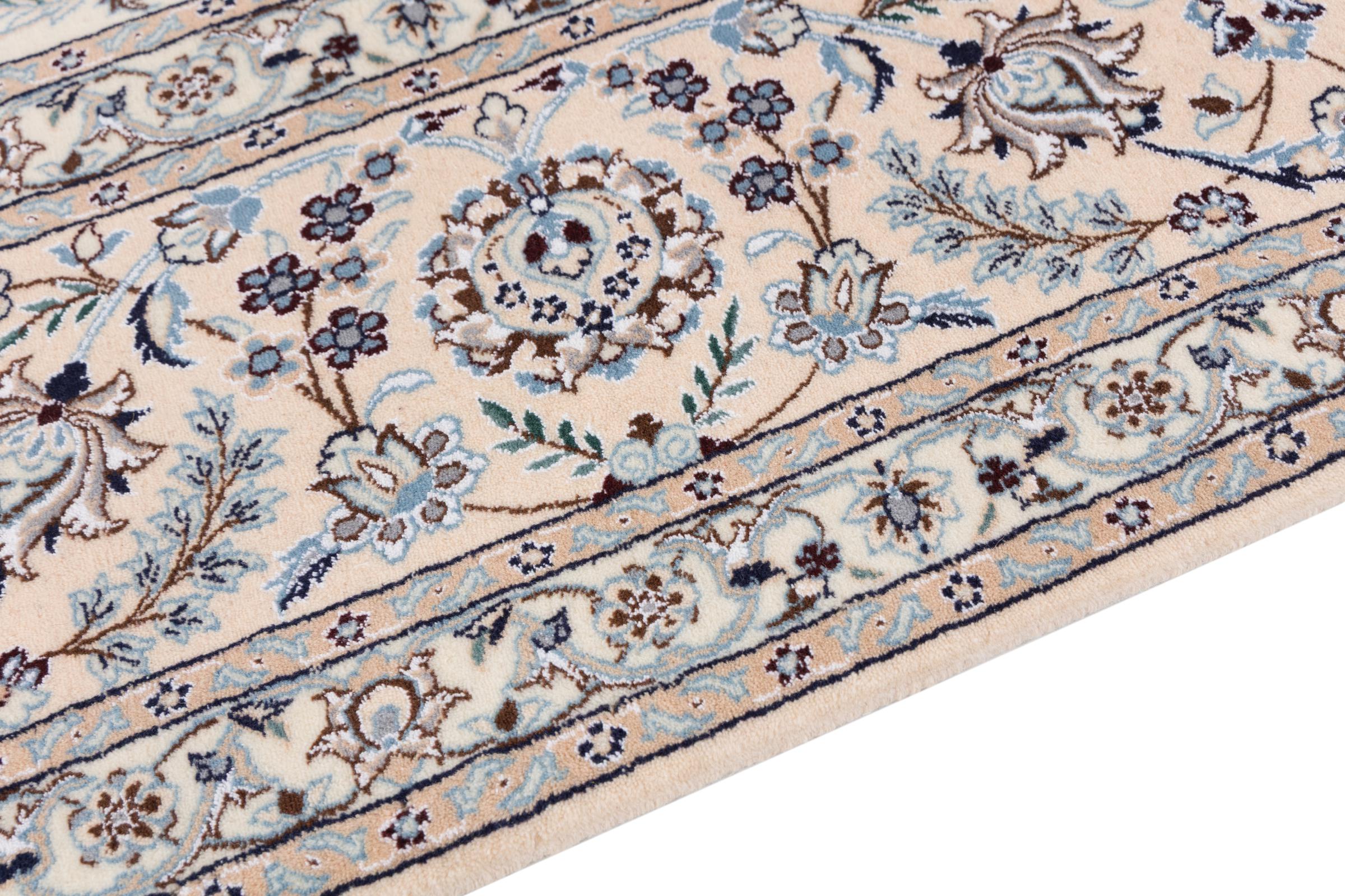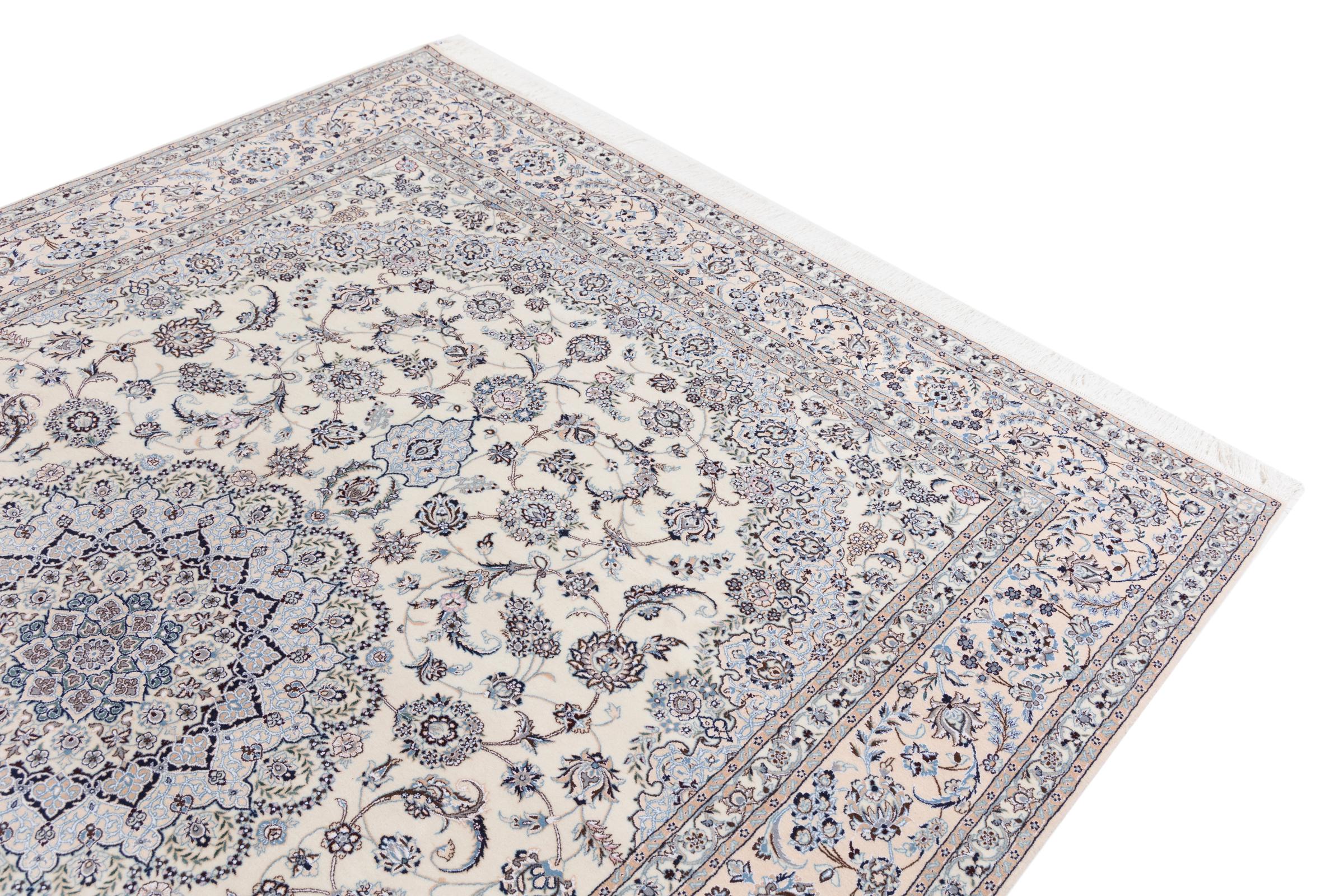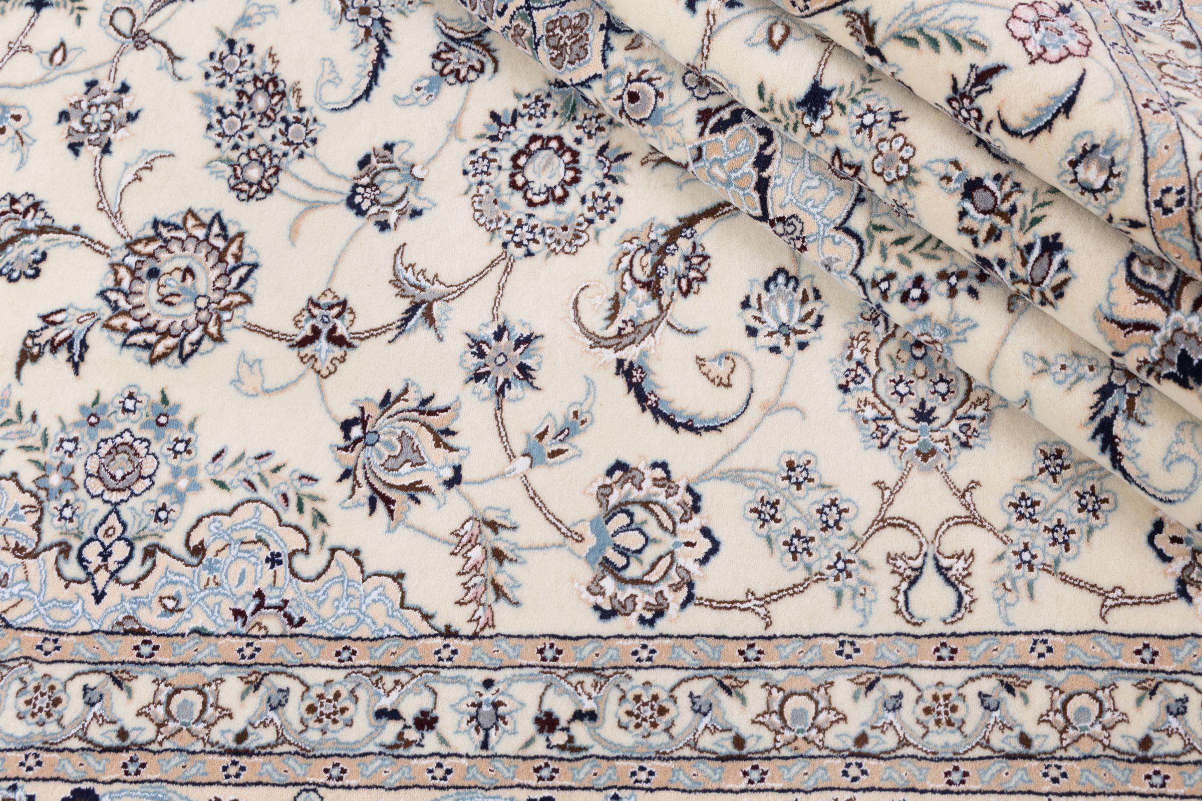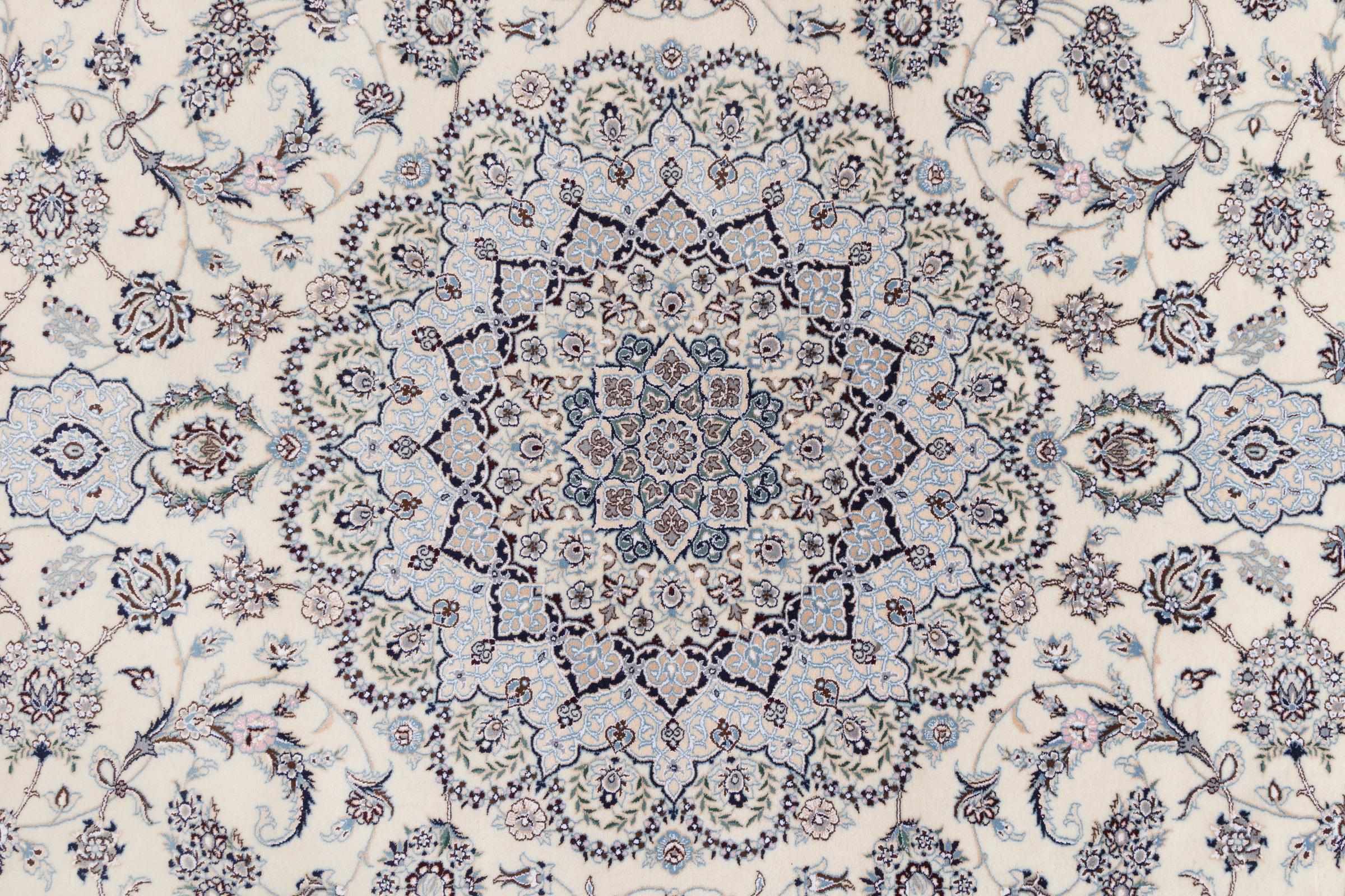I tappeti della città di Nain, al confine con uno dei più grandi deserti dell'Iran, sono tra i tappeti persiani più famosi al mondo. Il loro tipico design è inconfondibile con ornamenti floreali, un medaglione centrale e sfumature beige e rosso o blu. Grazie alle loro denominazioni 4La, 6La, 9La e 12La, le sottigliezze di un tappeto Nain sono visibili a colpo d'occhio. Più basso è il numero "La", più alta è la densità del nodo e quindi più fine è il tappeto.