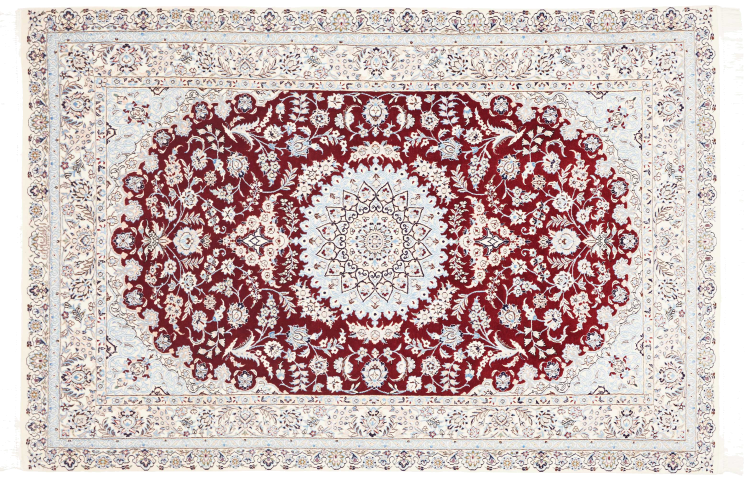I tappeti della città di Nain, al confine con uno dei più grandi deserti dell'Iran, sono tra i tappeti persiani più famosi al mondo. Il loro tipico design è inconfondibile con ornamenti floreali, un medaglione centrale e sfumature beige e rosso o blu. Grazie alle loro denominazioni 4La, 6La, 9La e 12La, le sottigliezze di un tappeto Nain sono visibili a colpo d'occhio. Più basso è il numero "La", più alta è la densità del nodo e quindi più fine è il tappeto.