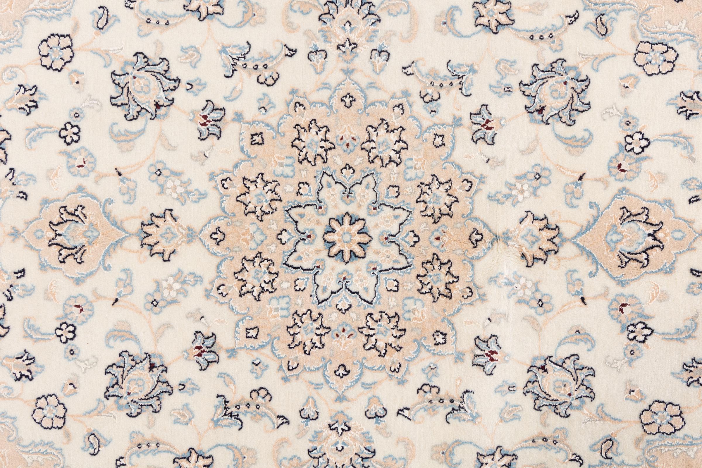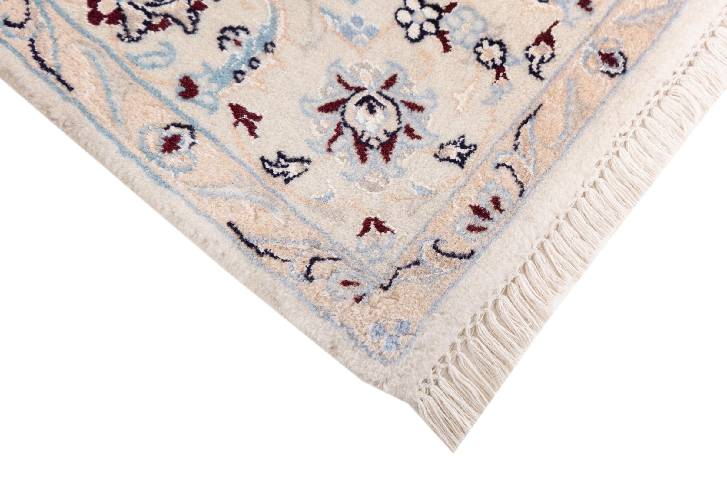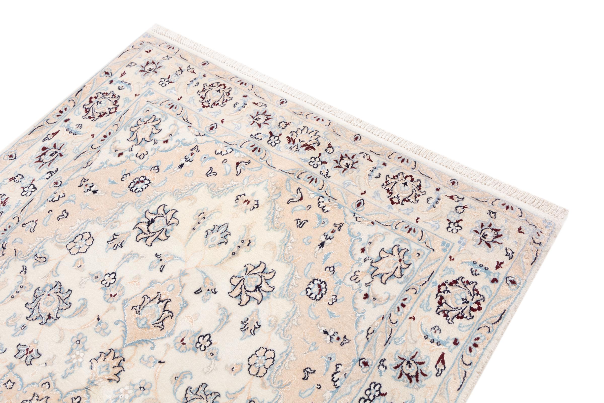 Questo tappeto Nain appartiene alla classe 9La.Lìottima qualità, il bel design orientale con disegni curvilinei soddisfa ogni cliente. Questo tappeto veniva realizzato nell’omonima città Wustend Nain a ovest del deserto Dascht-e-Kavir , con lana preziosa e seta naturale.