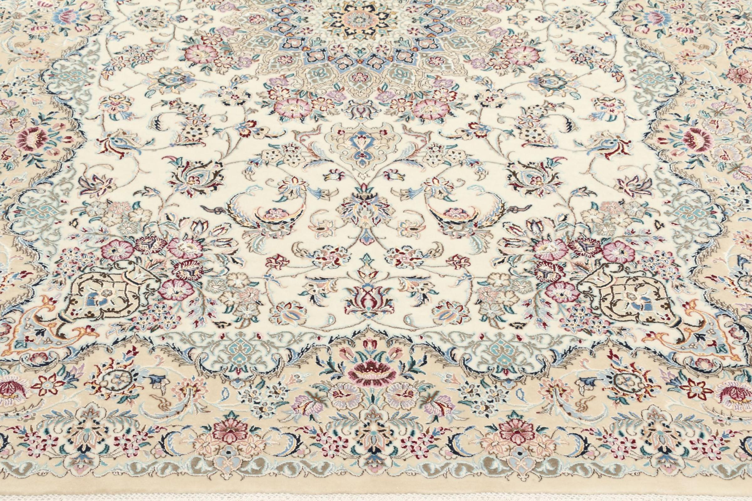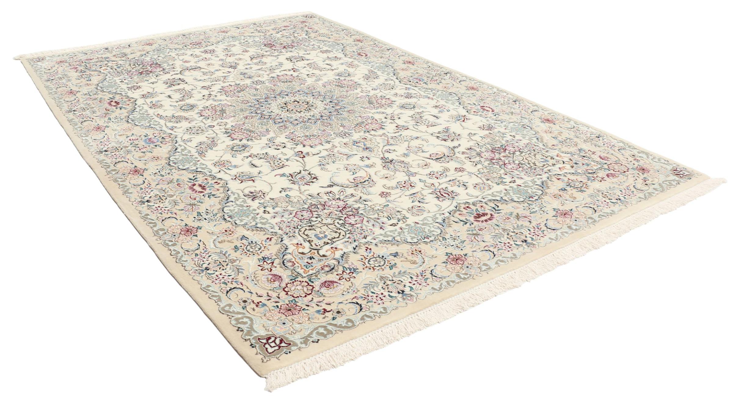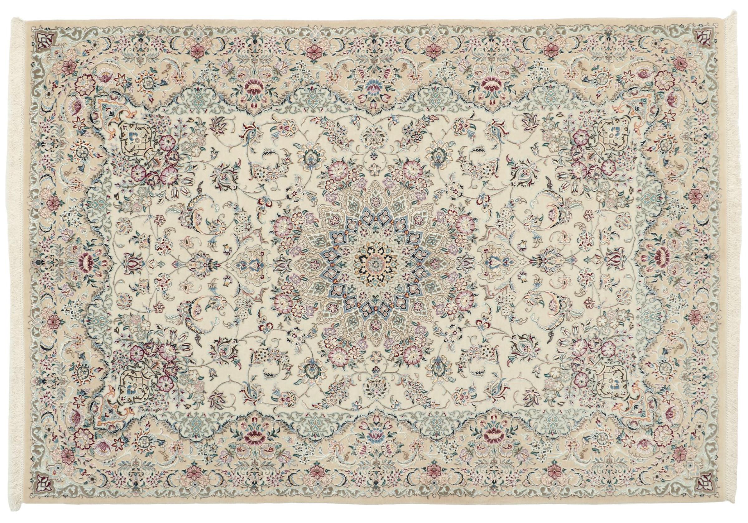 Tappeto-N.: 309443001946380 Dimensione: 206x139 cm Spessore: circa . 6 mm Nodi: 810 000 / m² Lavorazione: Annodato a mano Fondo: Lana con seta Catena: Cotone Origine: Persia / Iran Età: Nuovo Peso: circa . 7 kg Disponibile: Unico - Solo 1 disponibili