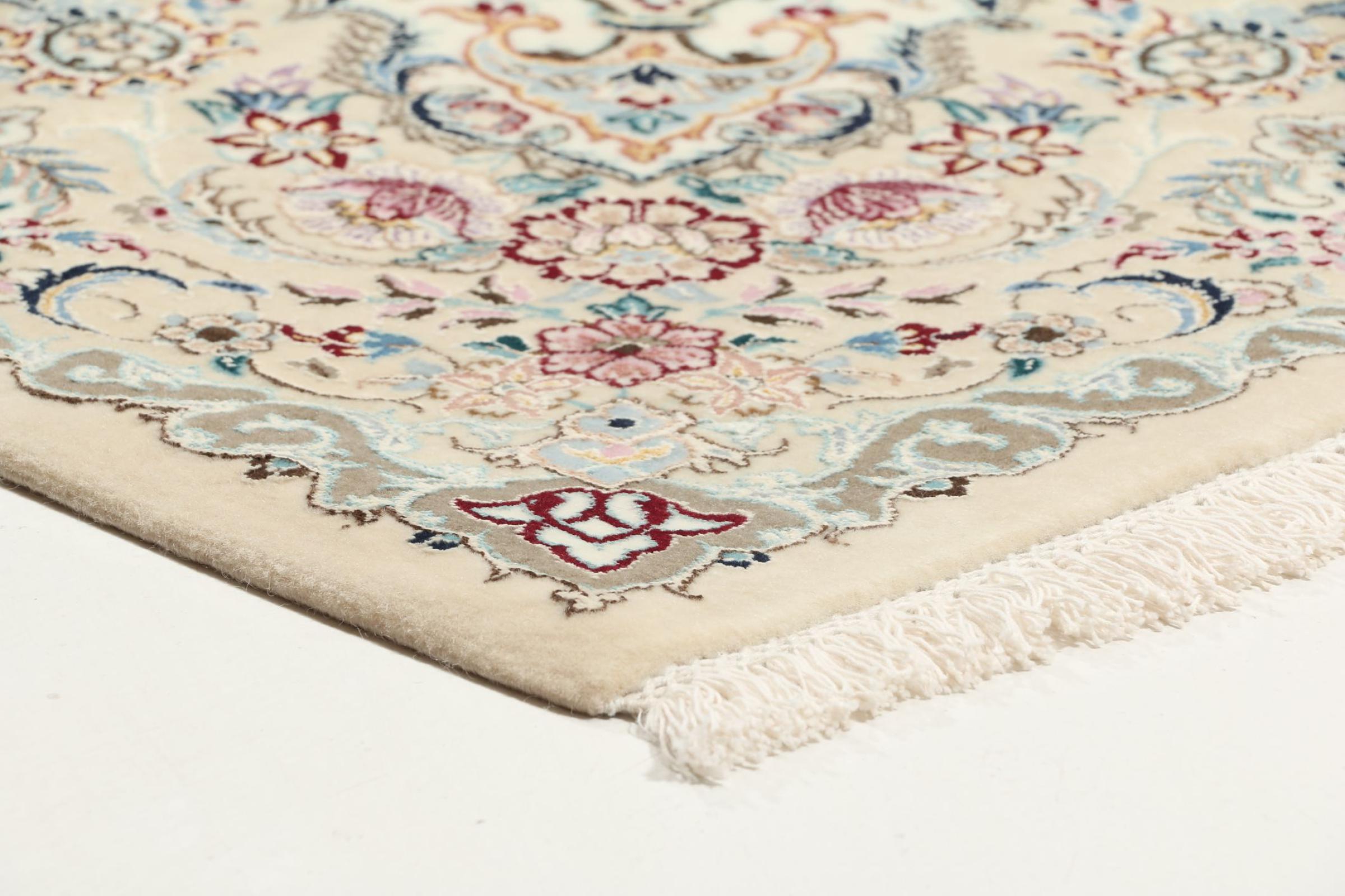I tappeti della città di Nain, al confine con uno dei più grandi deserti dell'Iran, sono tra i tappeti persiani più famosi al mondo. Il loro tipico design è inconfondibile con ornamenti floreali, un medaglione centrale e sfumature beige e rosso o blu. Grazie alle loro denominazioni 4La, 6La, 9La e 12La, le sottigliezze di un tappeto Nain sono visibili a colpo d'occhio. Più basso è il numero "La", più alta è la densità del nodo e quindi più fine è il tappeto.