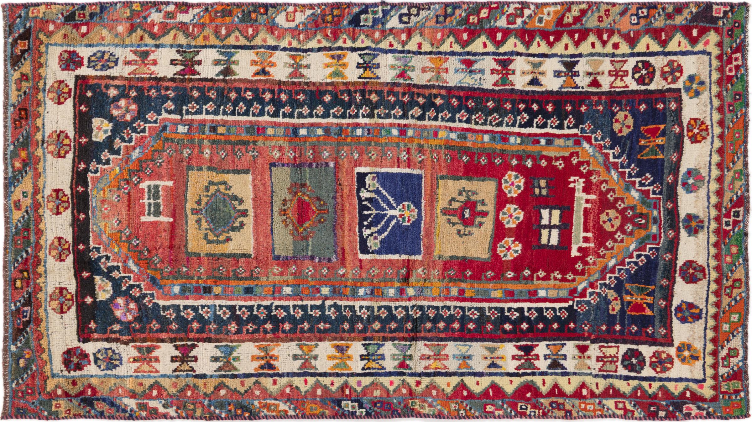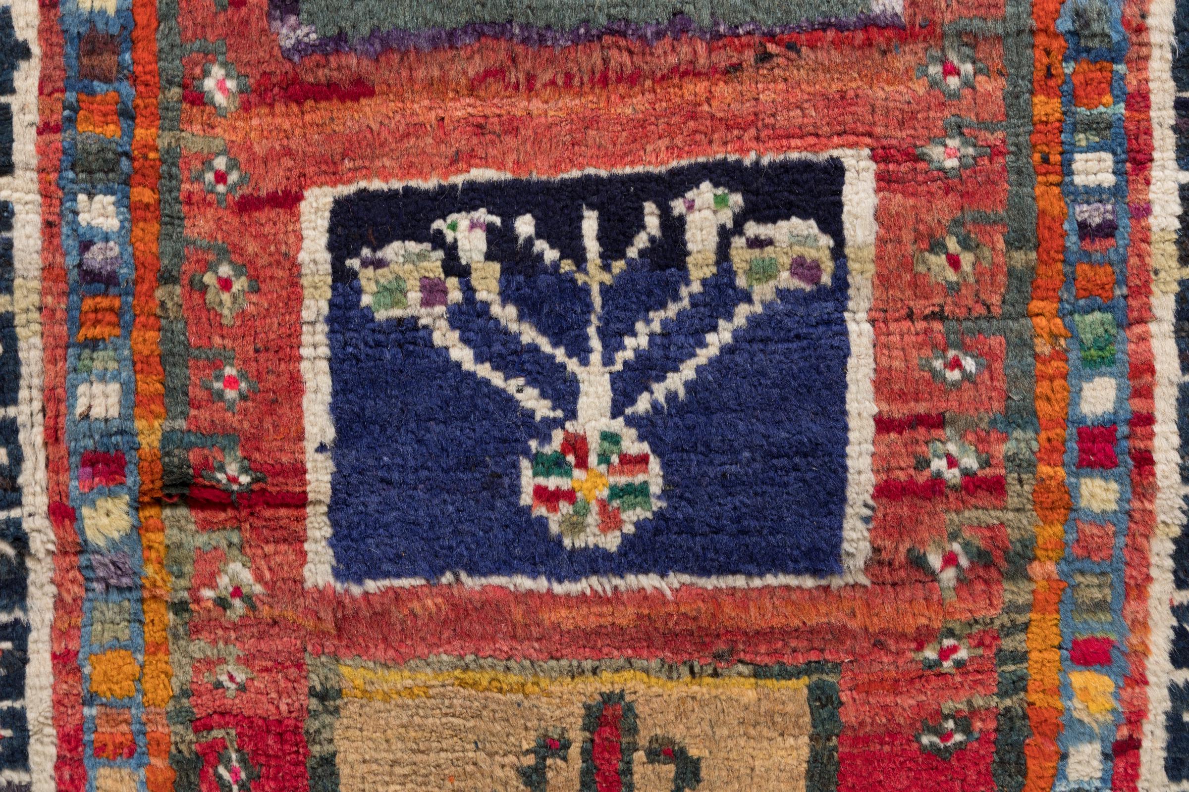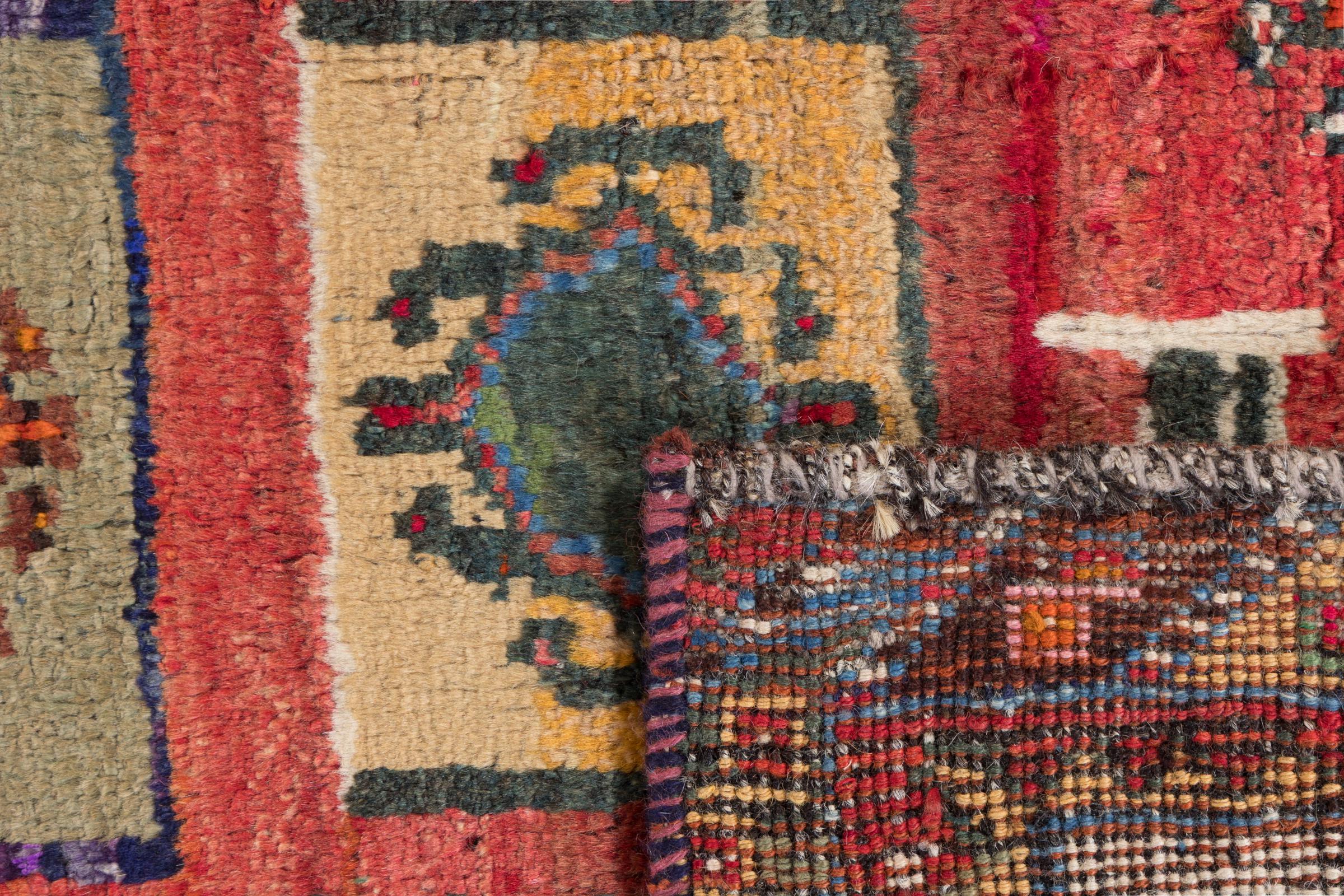 Tappeto-N.: 296310007832 Dimensione: 215x125 cm Spessore: circa . 15 mm Nodi: 32 000 - 40 000 / m² Lavorazione: Annodato a mano Fondo: Lana filata a mano Catena: Lana di pecora Origine: Persia / Iran Età: Vecchio/Semi-Antico, età più di 50 Anni Peso: circa . 11 kg Conosciuto anche come Gabbe, Ghabbeh Disponibile: Unico - Solo 1 disponibili