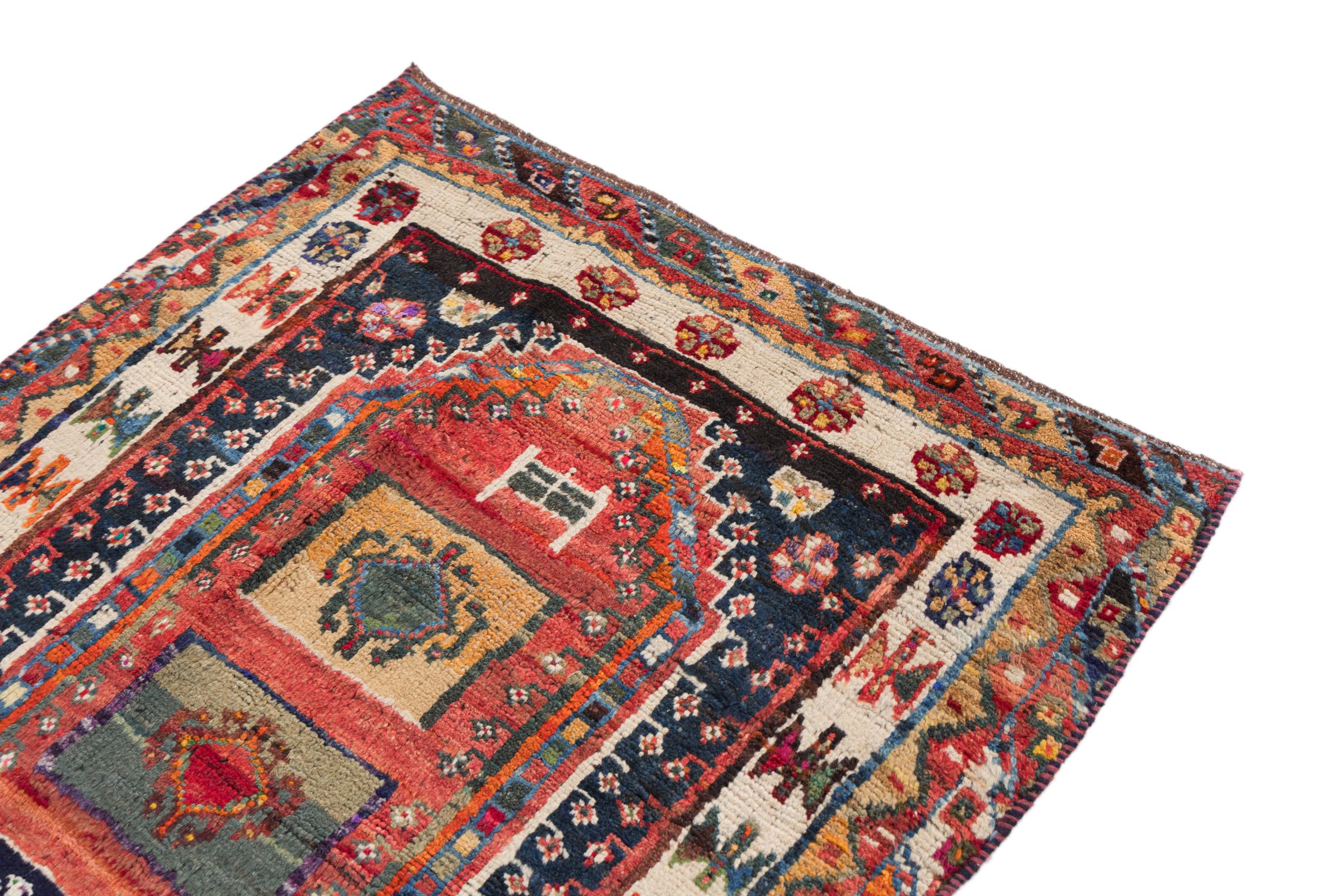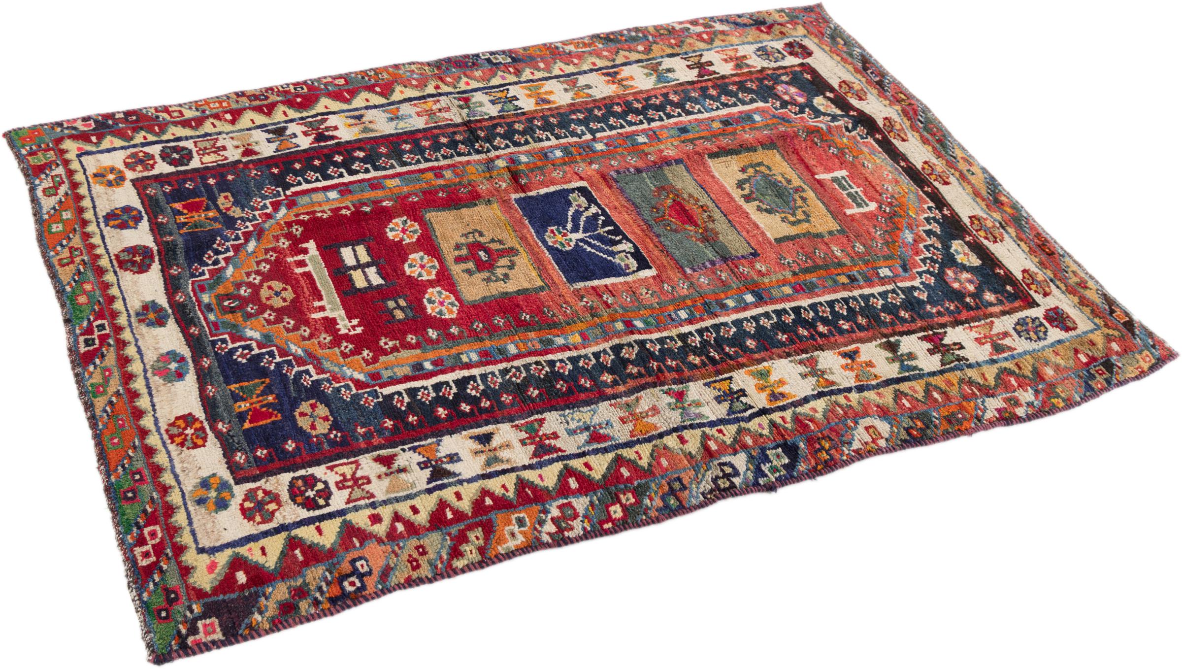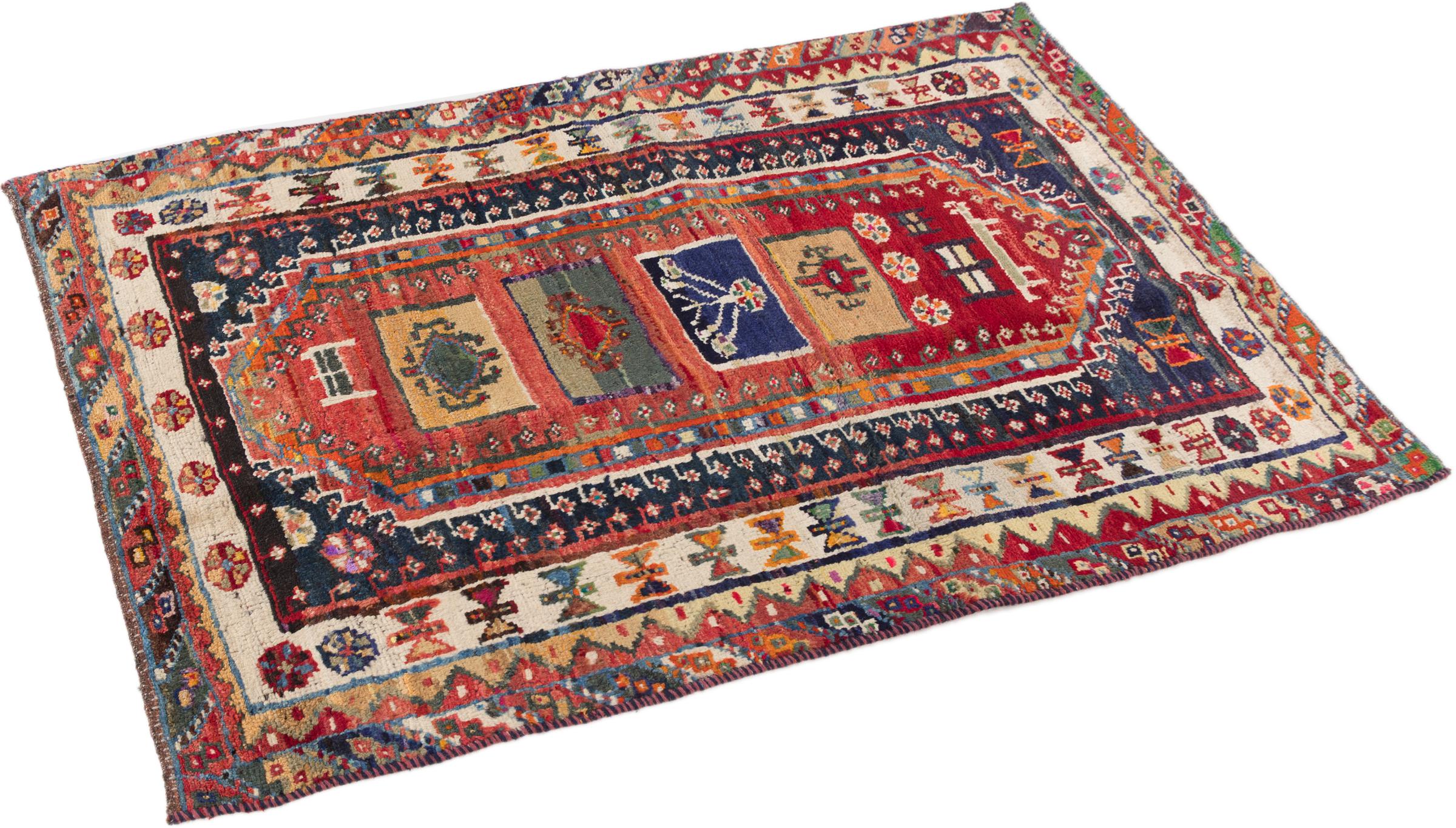 Tappeto-N.: 296310007832 Dimensione: 215x125 cm Spessore: circa . 15 mm Nodi: 32 000 - 40 000 / m² Lavorazione: Annodato a mano Fondo: Lana filata a mano Catena: Lana di pecora Origine: Persia / Iran Età: Vecchio/Semi-Antico, età più di 50 Anni Peso: circa . 11 kg Conosciuto anche come Gabbe, Ghabbeh Disponibile: Unico - Solo 1 disponibili