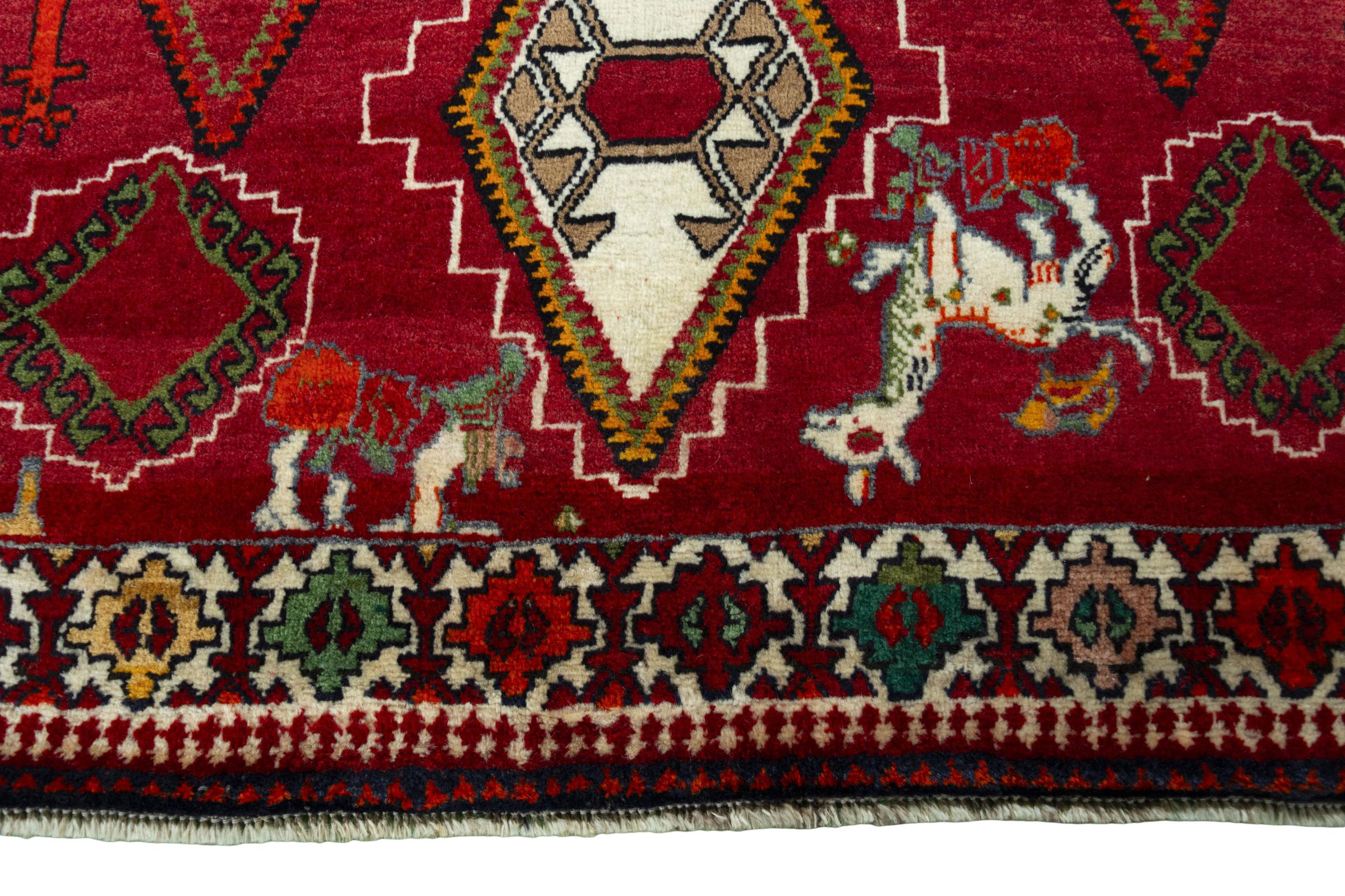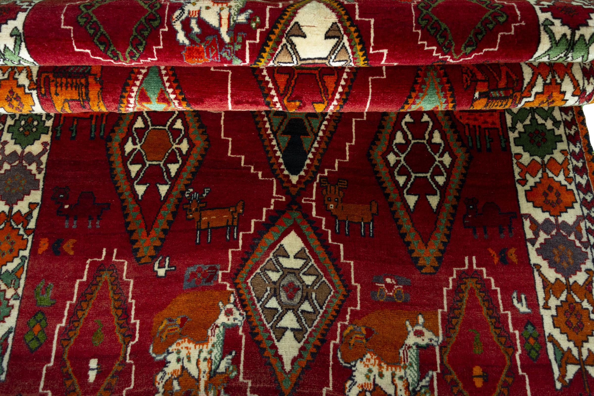 Questo bellissimo tappeto è un Gabbeh persiano e appartiene quindi ai tappeti Gabbeh di altissima qualità. I tappeti sono annodati da nomadi o seminomadi in Iran secondo la tradizione artigianale. I motivi e i motivi semplici sono per lo più ispirati all'ambiente immediato dei nomadi. Ad esempio cammelli, alberi o cespugli si trovano sui tappeti tradizionali. I tappeti persiani Gabbeh sono realizzati con lana proveniente da greggi di pecore allevate localmente. La lana è quindi per lo più ancora filata a mano. Così ognuno di questi tappeti orientali incarna un carattere unico di cultura secolare.