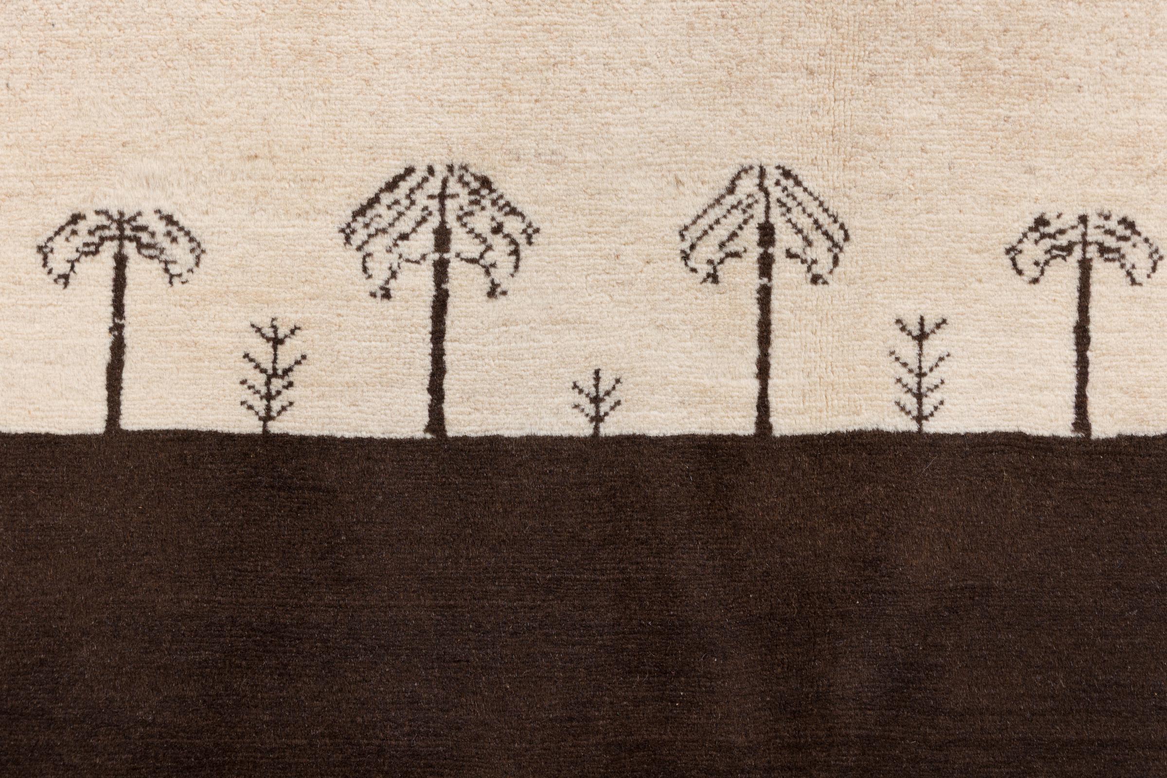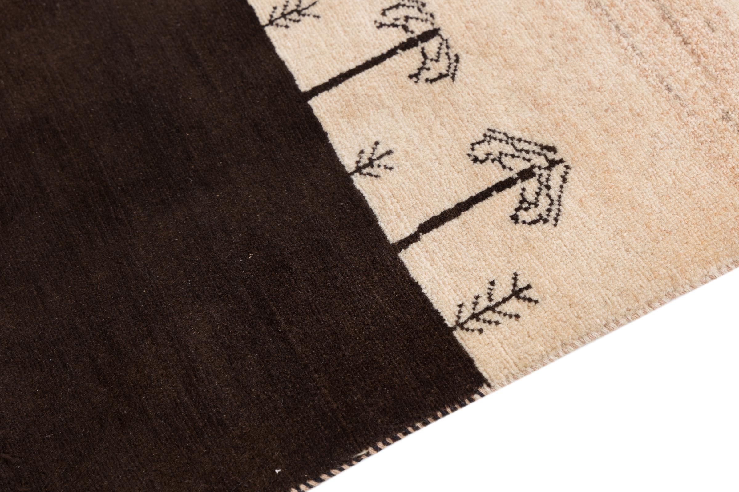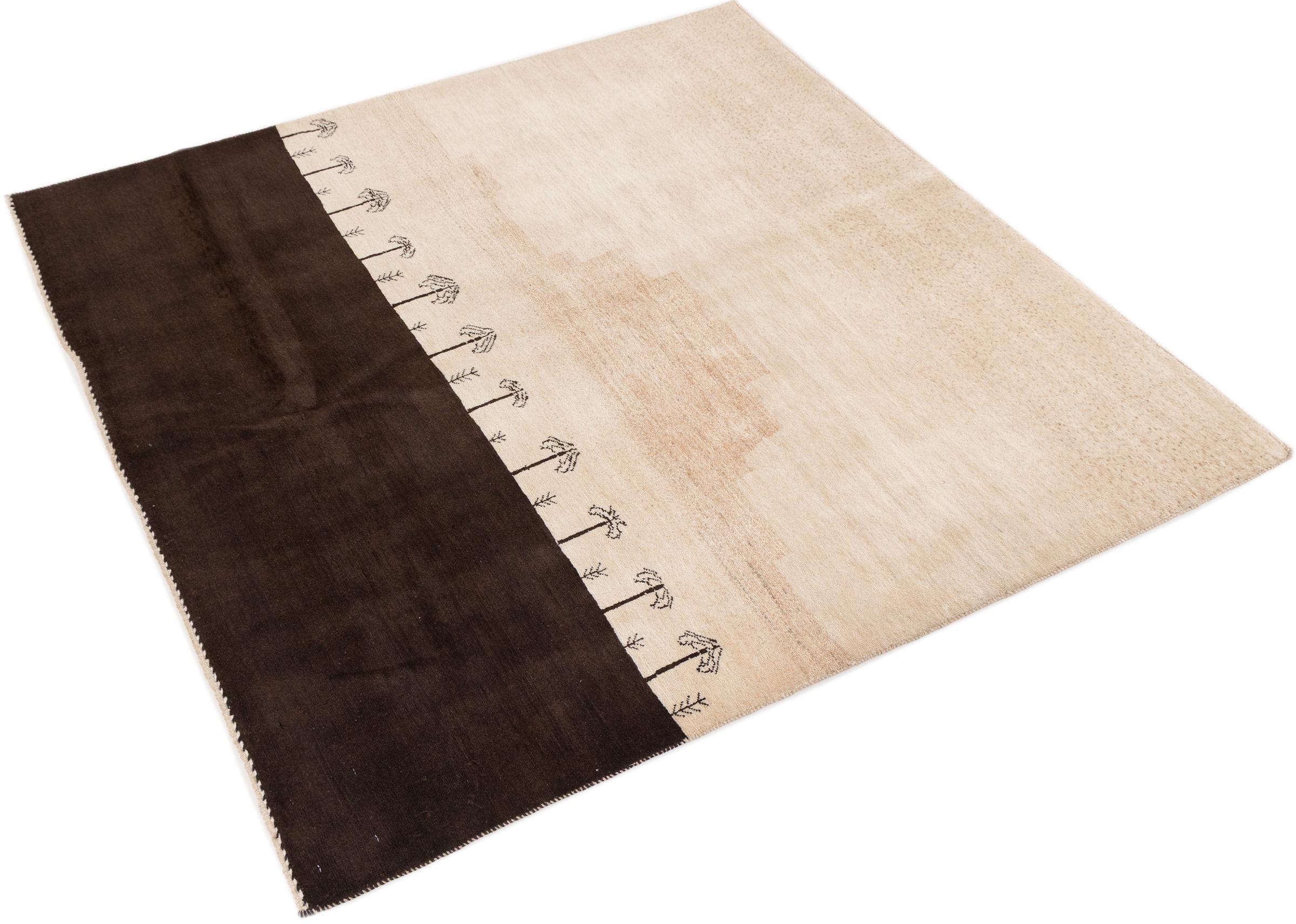 Questo bellissimo tappeto è un Gabbeh persiano e appartiene quindi ai tappeti Gabbeh di altissima qualità. I tappeti sono annodati da nomadi o seminomadi in Iran secondo la tradizione artigianale. I motivi e i motivi semplici sono per lo più ispirati all'ambiente immediato dei nomadi. Ad esempio cammelli, alberi o cespugli si trovano sui tappeti tradizionali. I tappeti persiani Gabbeh sono realizzati con lana proveniente da greggi di pecore allevate localmente. La lana è quindi per lo più ancora filata a mano. Così ognuno di questi tappeti orientali incarna un carattere unico di cultura secolare.