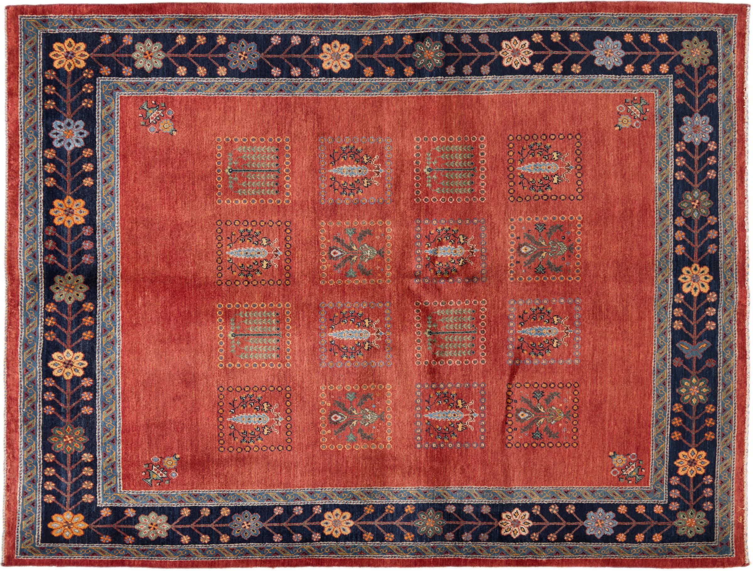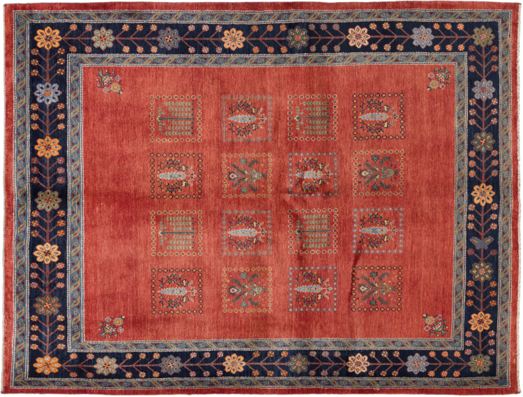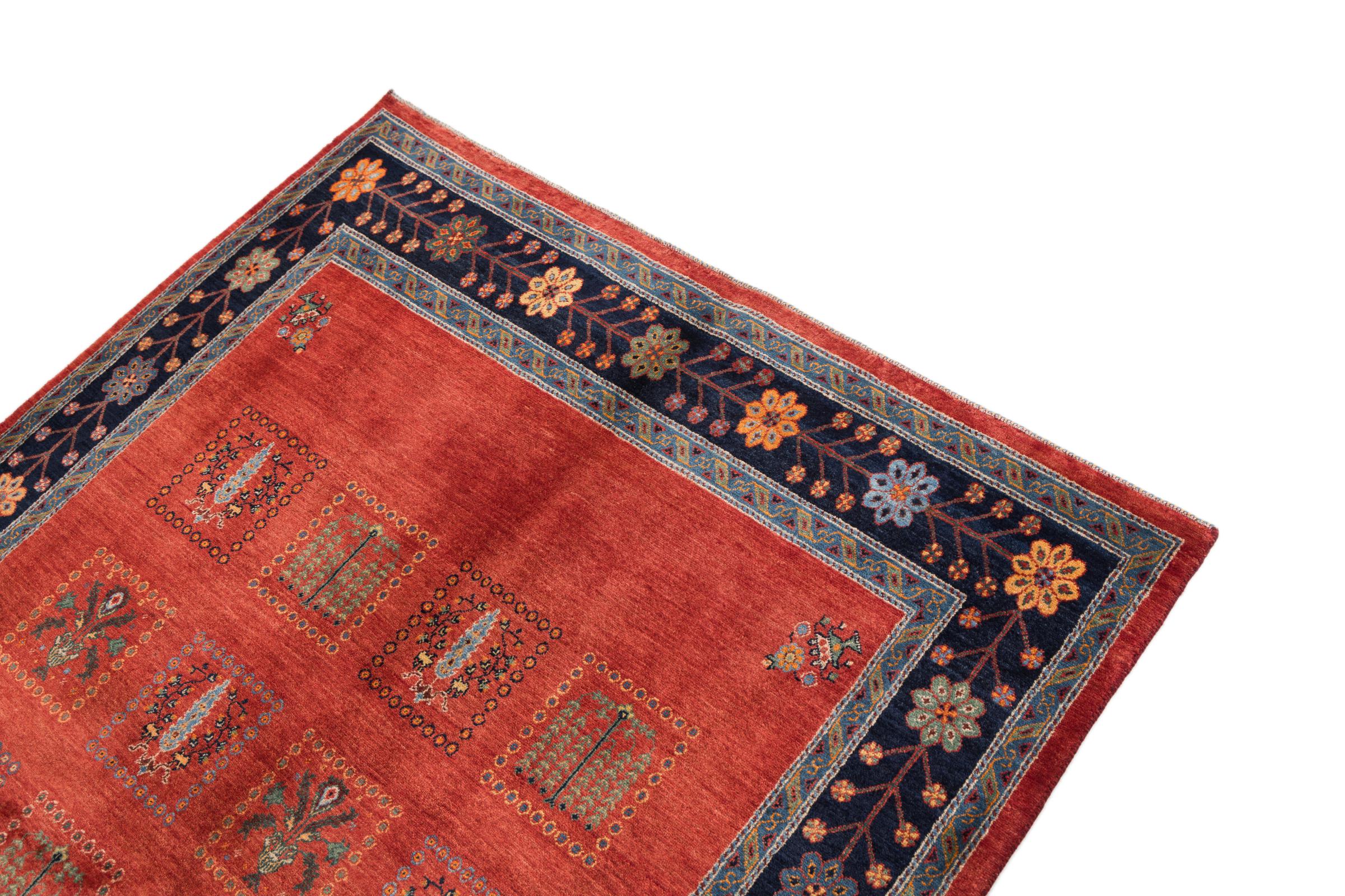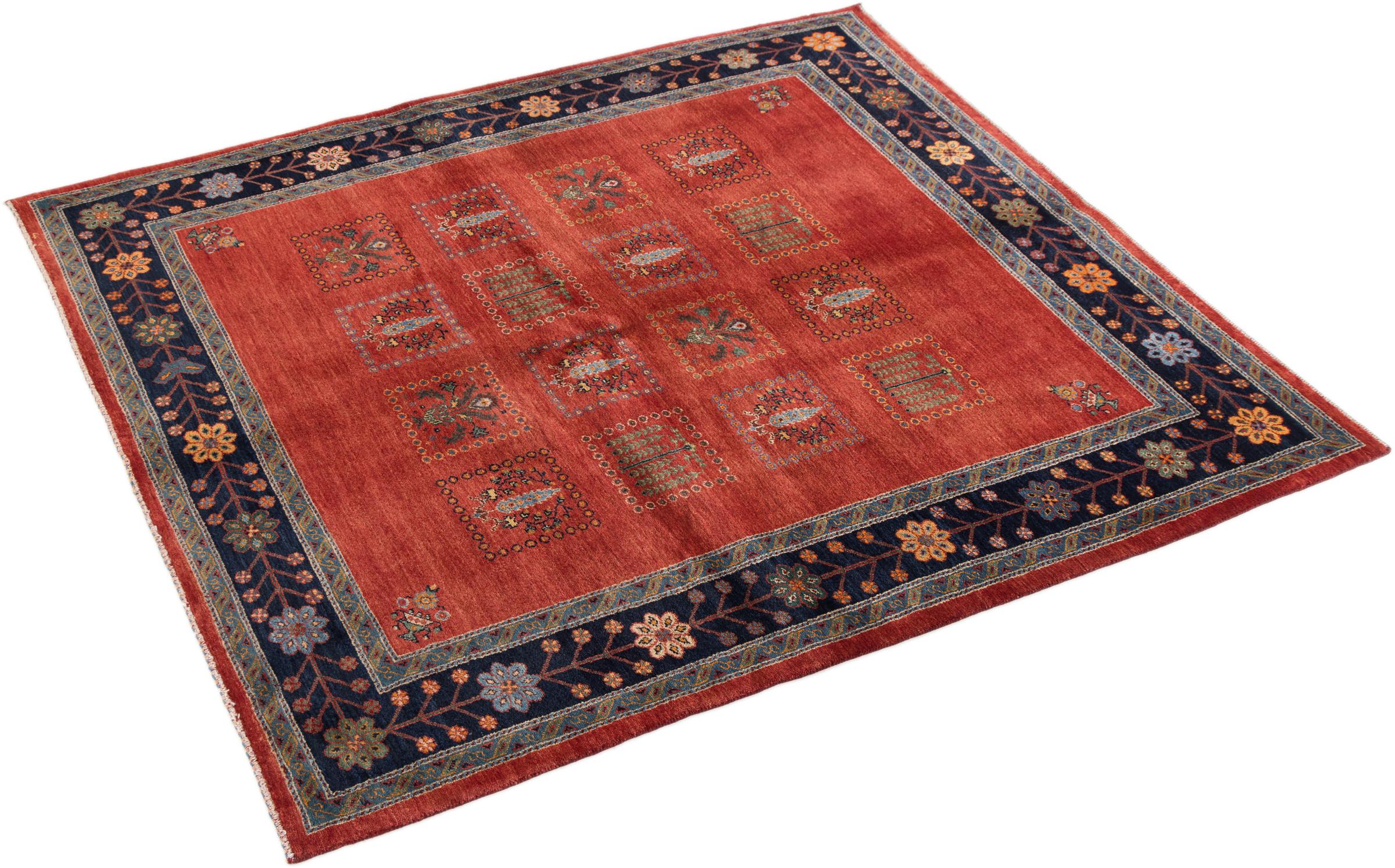 Questo bellissimo tappeto è un Gabbeh persiano e appartiene quindi ai tappeti Gabbeh di altissima qualità. I tappeti sono annodati da nomadi o seminomadi in Iran secondo la tradizione artigianale. I motivi e i motivi semplici sono per lo più ispirati all'ambiente immediato dei nomadi. Ad esempio cammelli, alberi o cespugli si trovano sui tappeti tradizionali. I tappeti persiani Gabbeh sono realizzati con lana proveniente da greggi di pecore allevate localmente. La lana è quindi per lo più ancora filata a mano. Così ognuno di questi tappeti orientali incarna un carattere unico di cultura secolare.