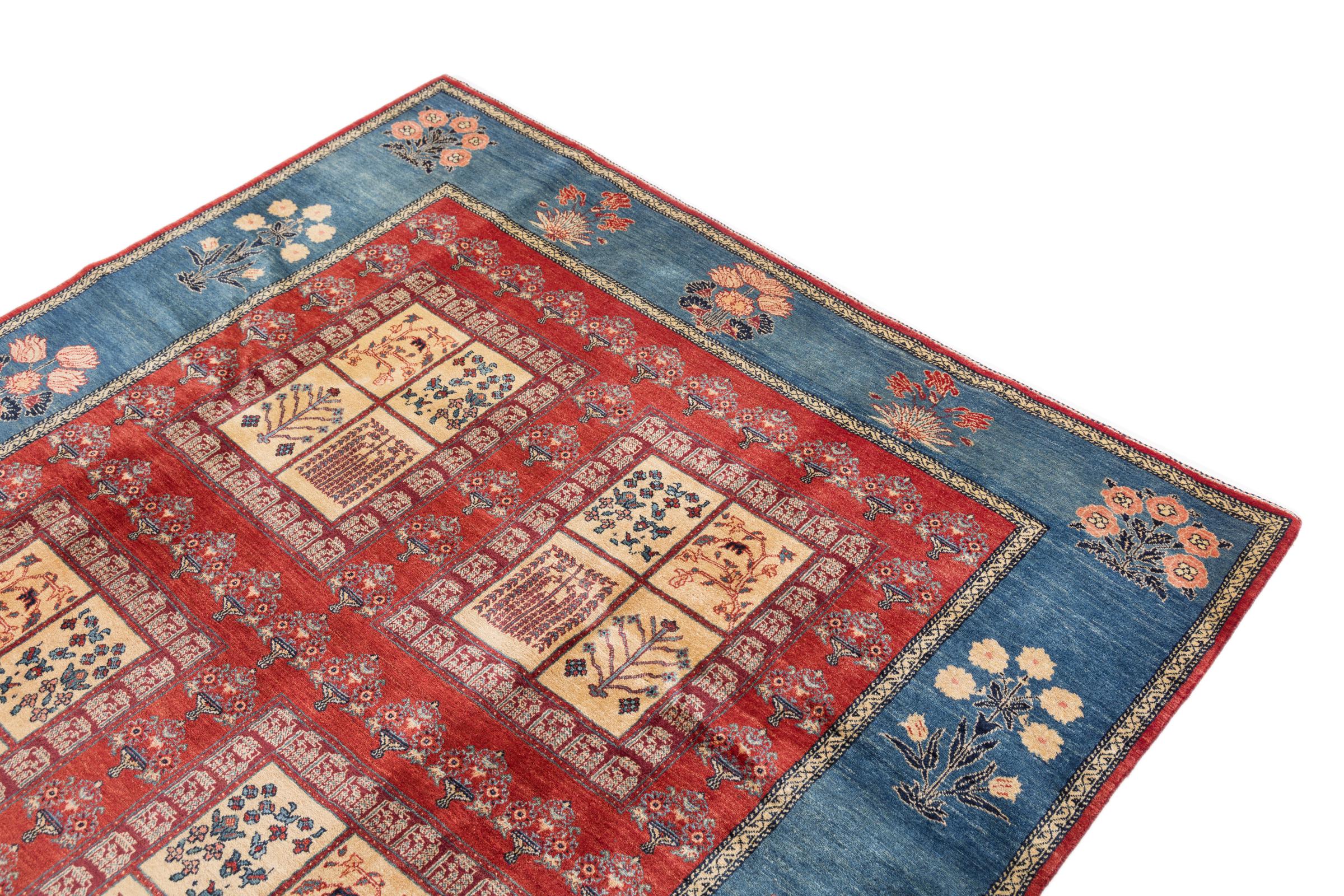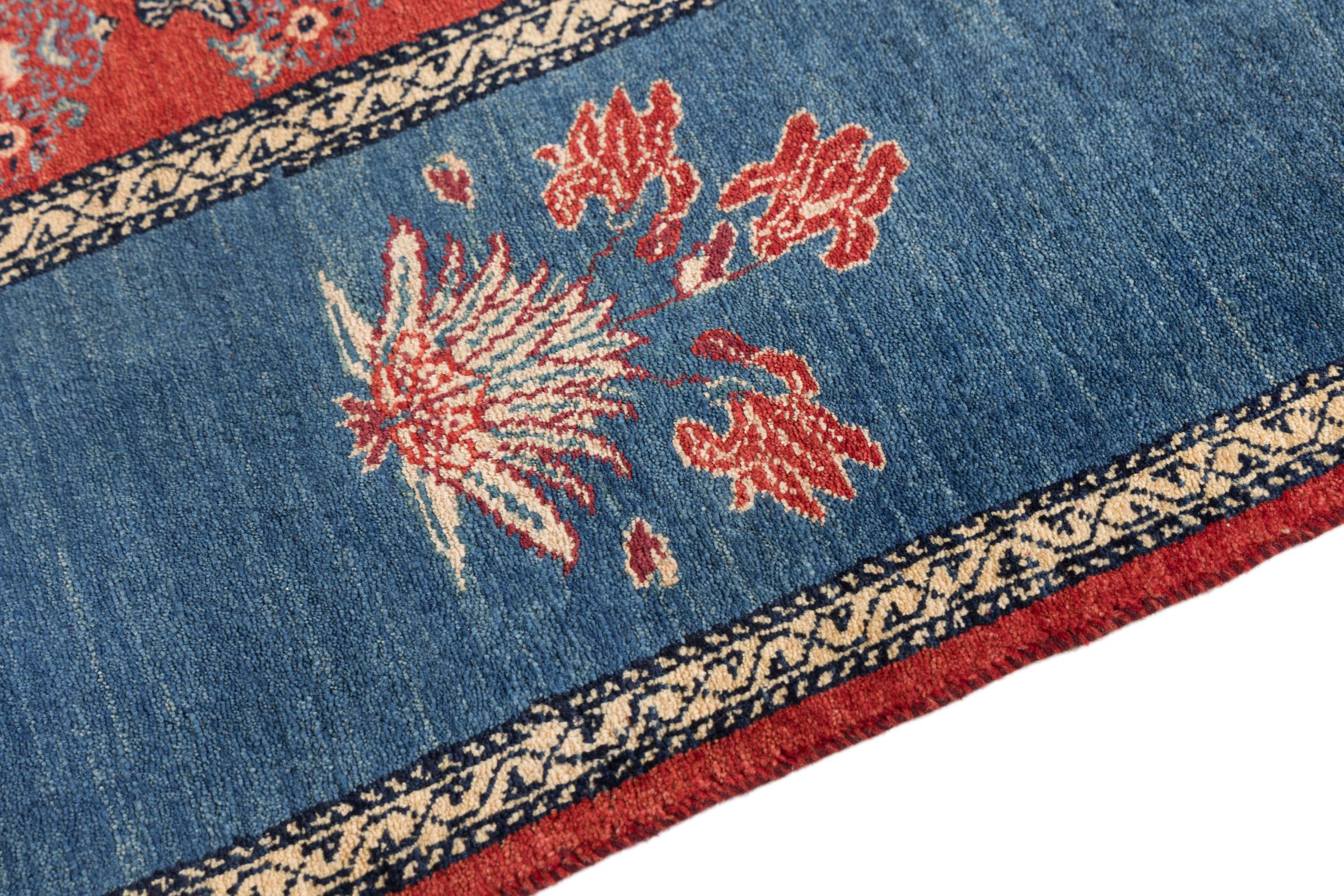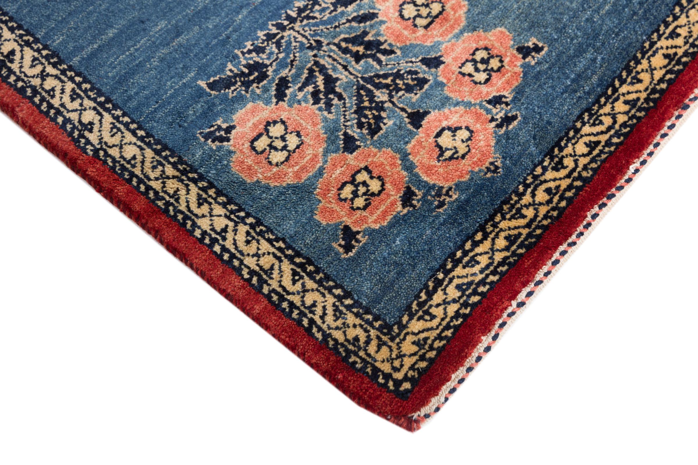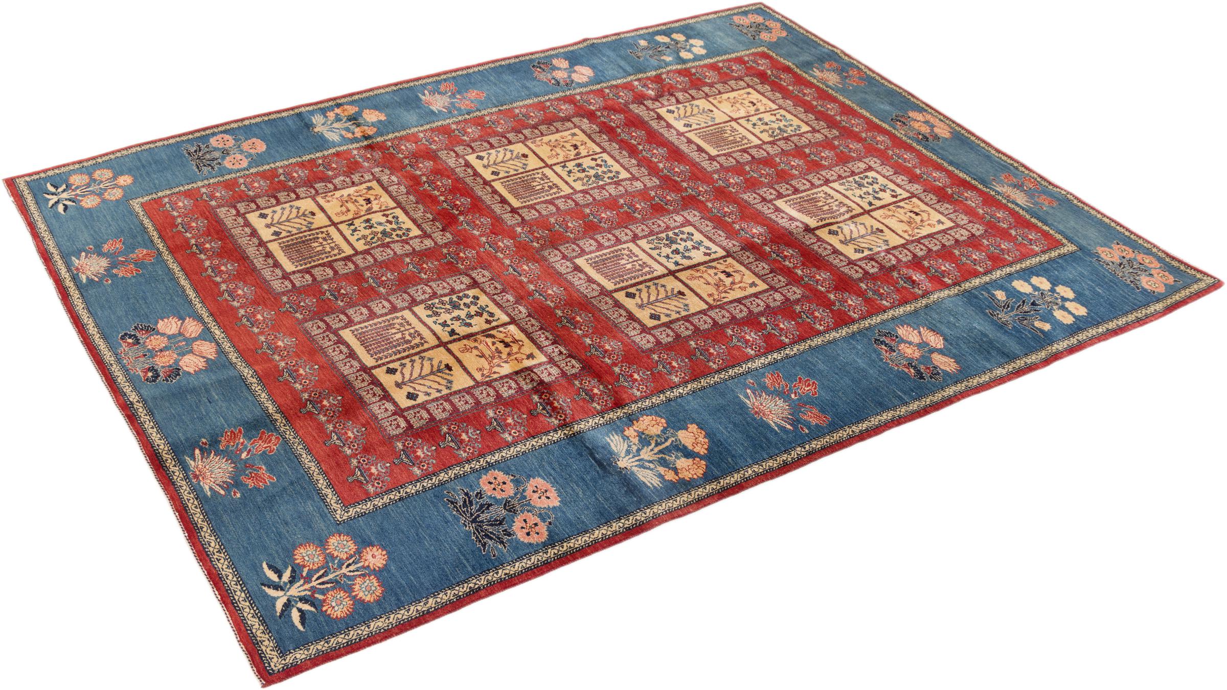 Questo bellissimo tappeto è un Gabbeh persiano e appartiene quindi ai tappeti Gabbeh di altissima qualità. I tappeti sono annodati da nomadi o seminomadi in Iran secondo la tradizione artigianale. I motivi e i motivi semplici sono per lo più ispirati all'ambiente immediato dei nomadi. Ad esempio cammelli, alberi o cespugli si trovano sui tappeti tradizionali. I tappeti persiani Gabbeh sono realizzati con lana proveniente da greggi di pecore allevate localmente. La lana è quindi per lo più ancora filata a mano. Così ognuno di questi tappeti orientali incarna un carattere unico di cultura secolare.