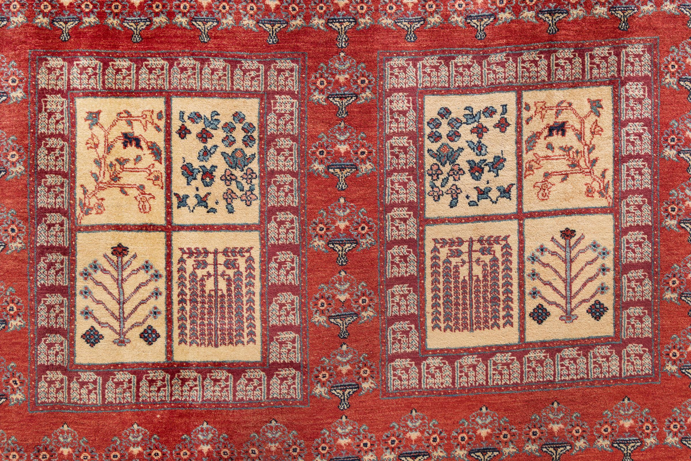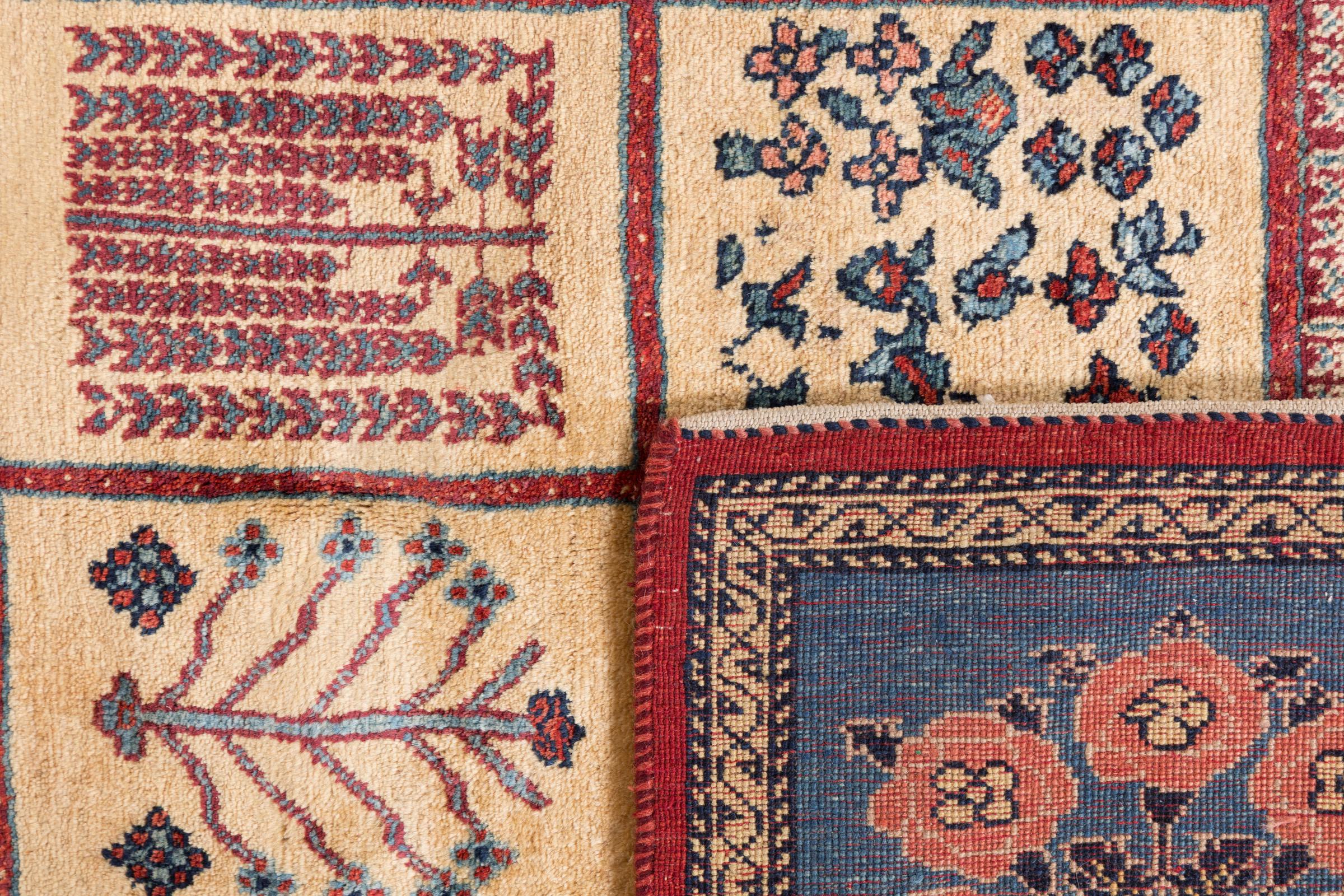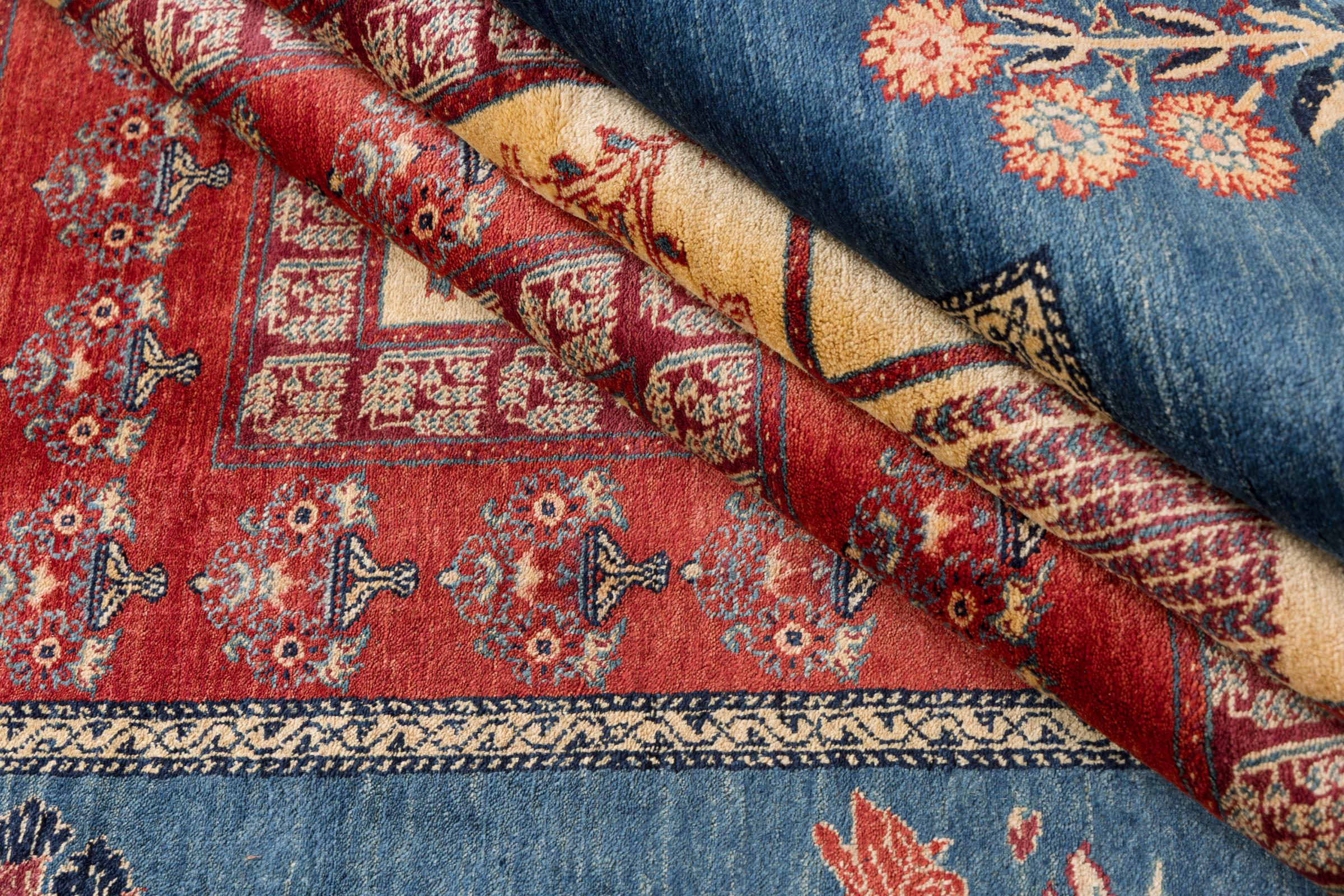 Questo tappeto è realizzato in lana di pecora filata a mano di altissima qualità. Soprattutto in Iran (ex Persia), Afghanistan e Pakistan la lana viene ancora filata a mano prima che inizi l'annodatura vera e propria del tappeto. La lana si è dimostrata nei secoli un materiale naturale ed estremamente resistente. Tra le altre cose, ha proprietà di repellenza allo sporco e di isolamento termico. Allo stesso tempo, la lana è incomparabilmente morbida e ha una lucentezza naturale.