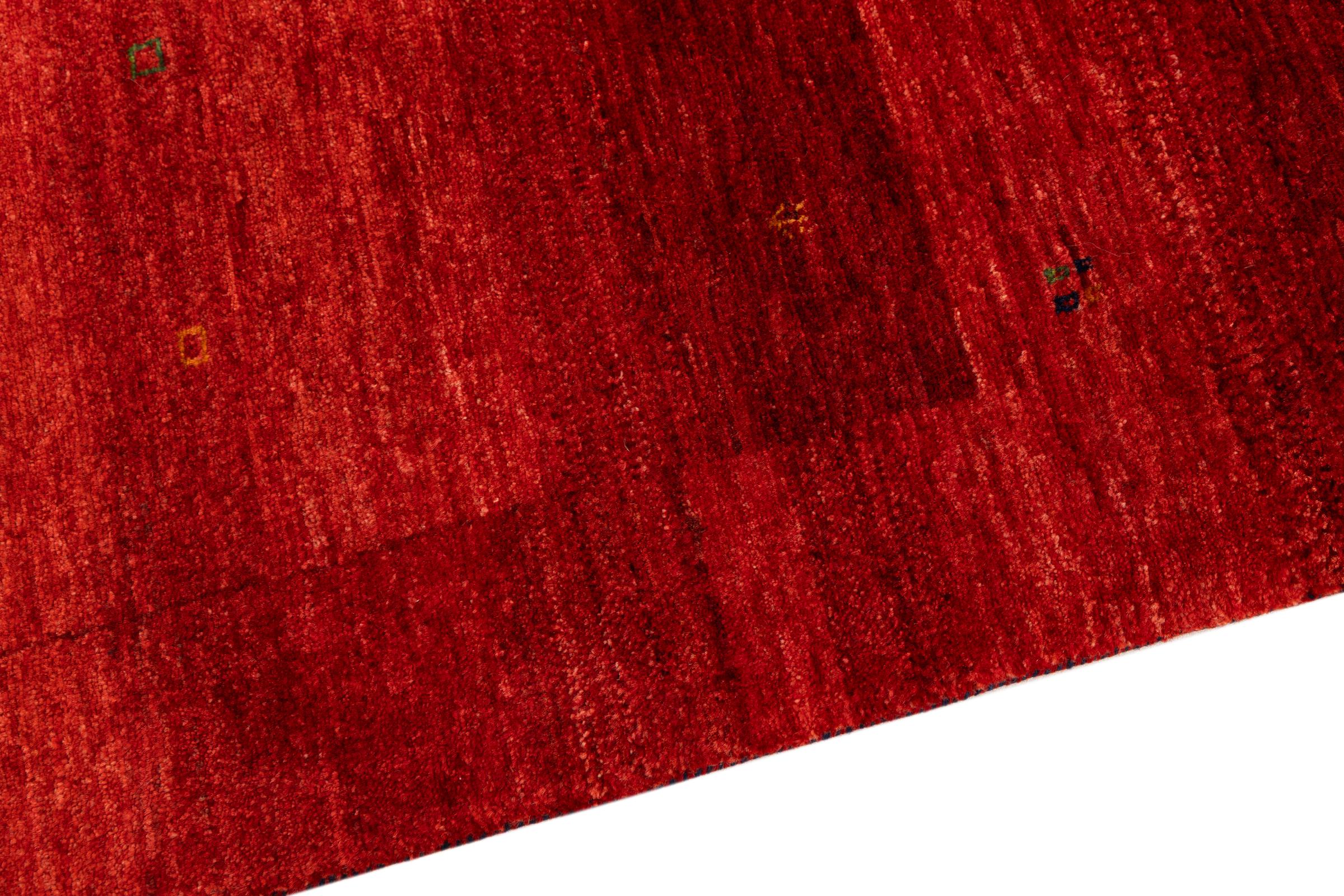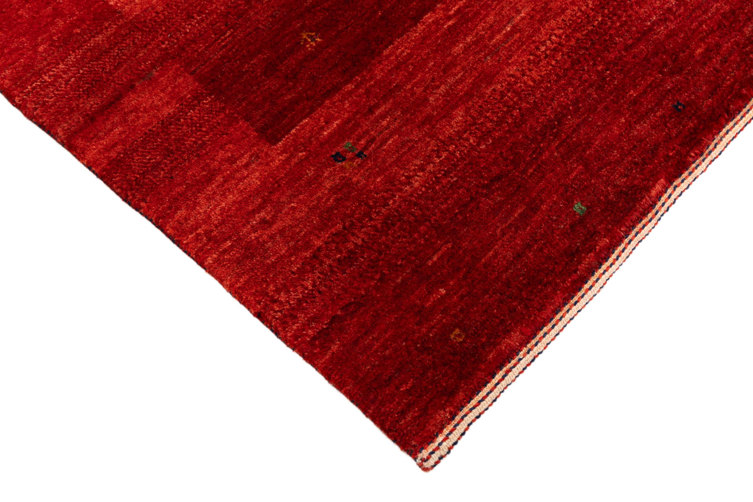 Questo bellissimo tappeto è un Gabbeh persiano e appartiene quindi ai tappeti Gabbeh di altissima qualità. I tappeti sono annodati da nomadi o seminomadi in Iran secondo la tradizione artigianale. I motivi e i motivi semplici sono per lo più ispirati all'ambiente immediato dei nomadi. Ad esempio cammelli, alberi o cespugli si trovano sui tappeti tradizionali. I tappeti persiani Gabbeh sono realizzati con lana proveniente da greggi di pecore allevate localmente. La lana è quindi per lo più ancora filata a mano. Così ognuno di questi tappeti orientali incarna un carattere unico di cultura secolare.