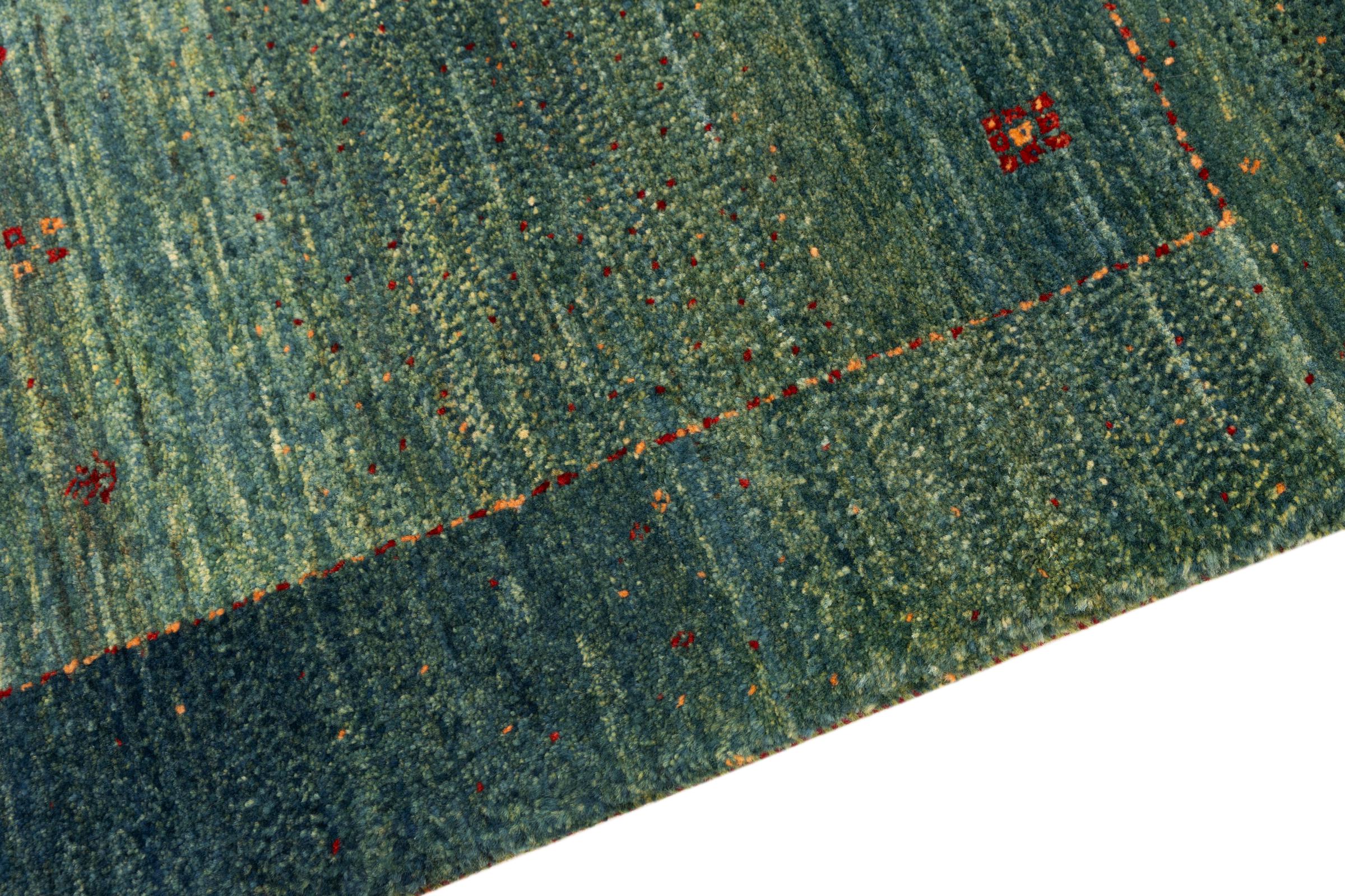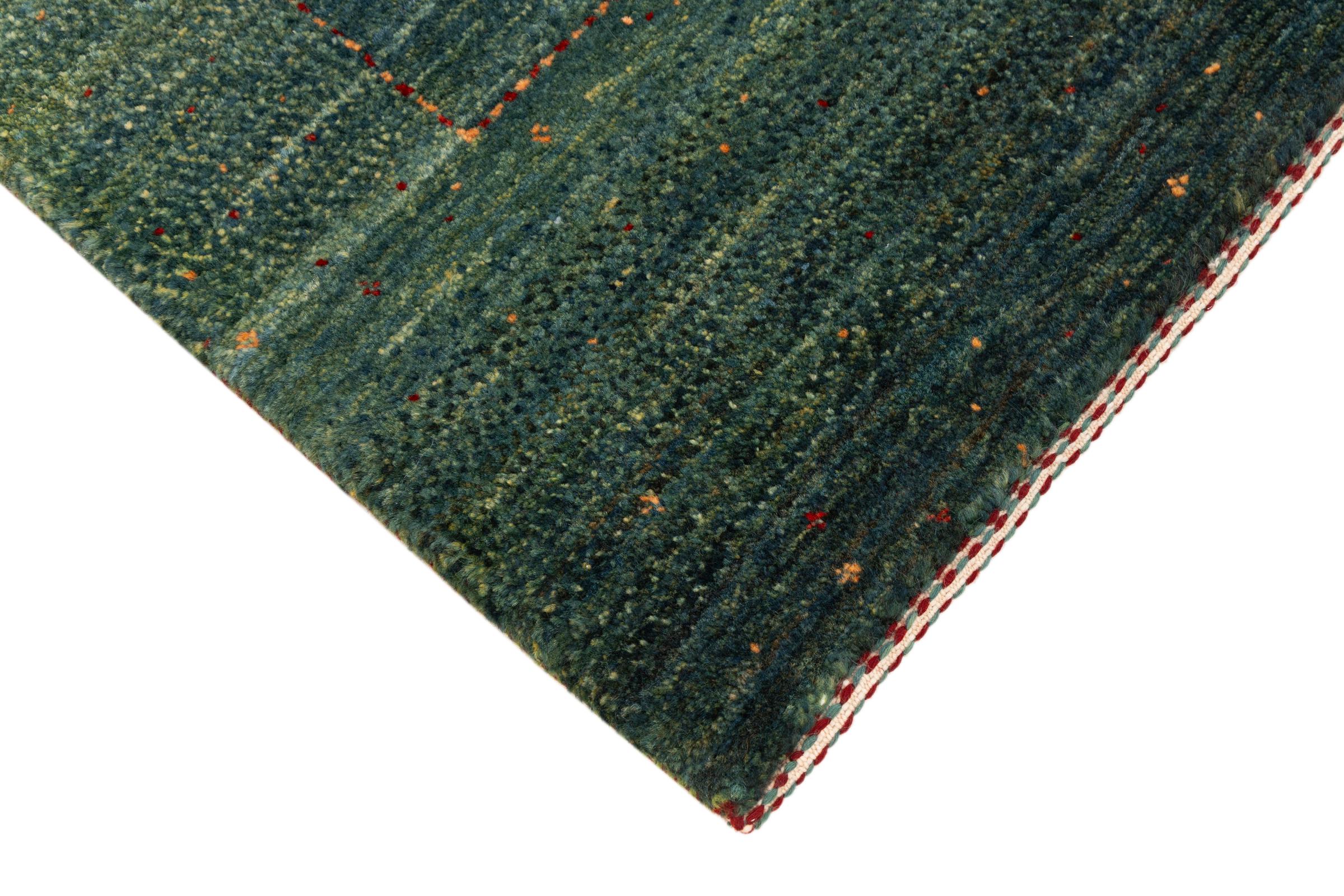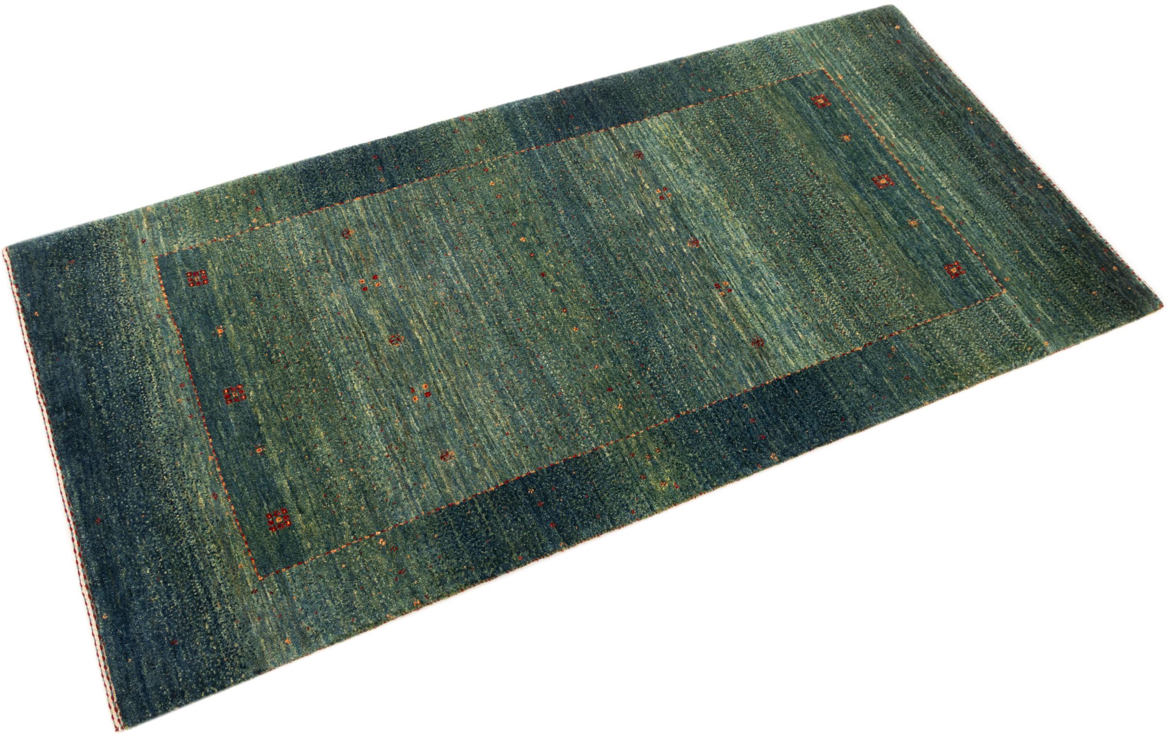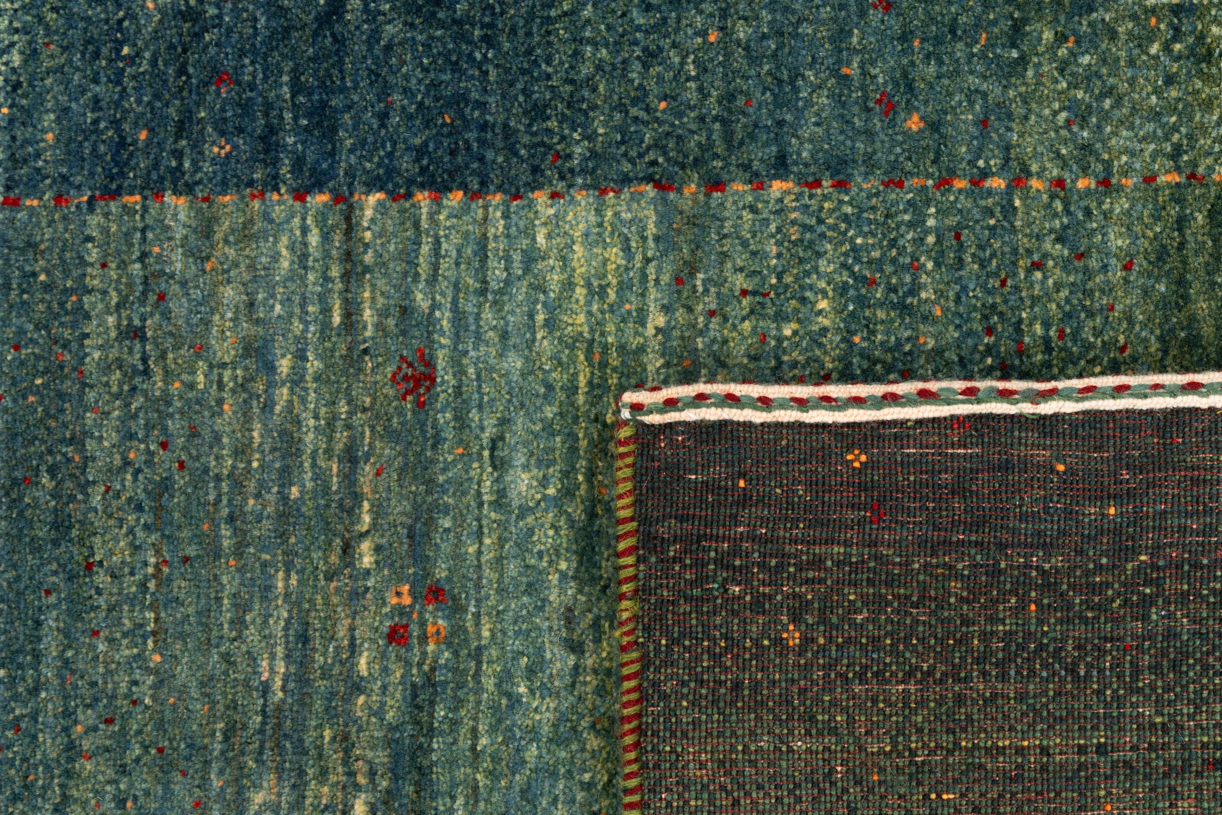 Questo bellissimo tappeto è un Gabbeh persiano e appartiene quindi ai tappeti Gabbeh di altissima qualità. I tappeti sono annodati da nomadi o seminomadi in Iran secondo la tradizione artigianale. I motivi e i motivi semplici sono per lo più ispirati all'ambiente immediato dei nomadi. Ad esempio cammelli, alberi o cespugli si trovano sui tappeti tradizionali. I tappeti persiani Gabbeh sono realizzati con lana proveniente da greggi di pecore allevate localmente. La lana è quindi per lo più ancora filata a mano. Così ognuno di questi tappeti orientali incarna un carattere unico di cultura secolare.