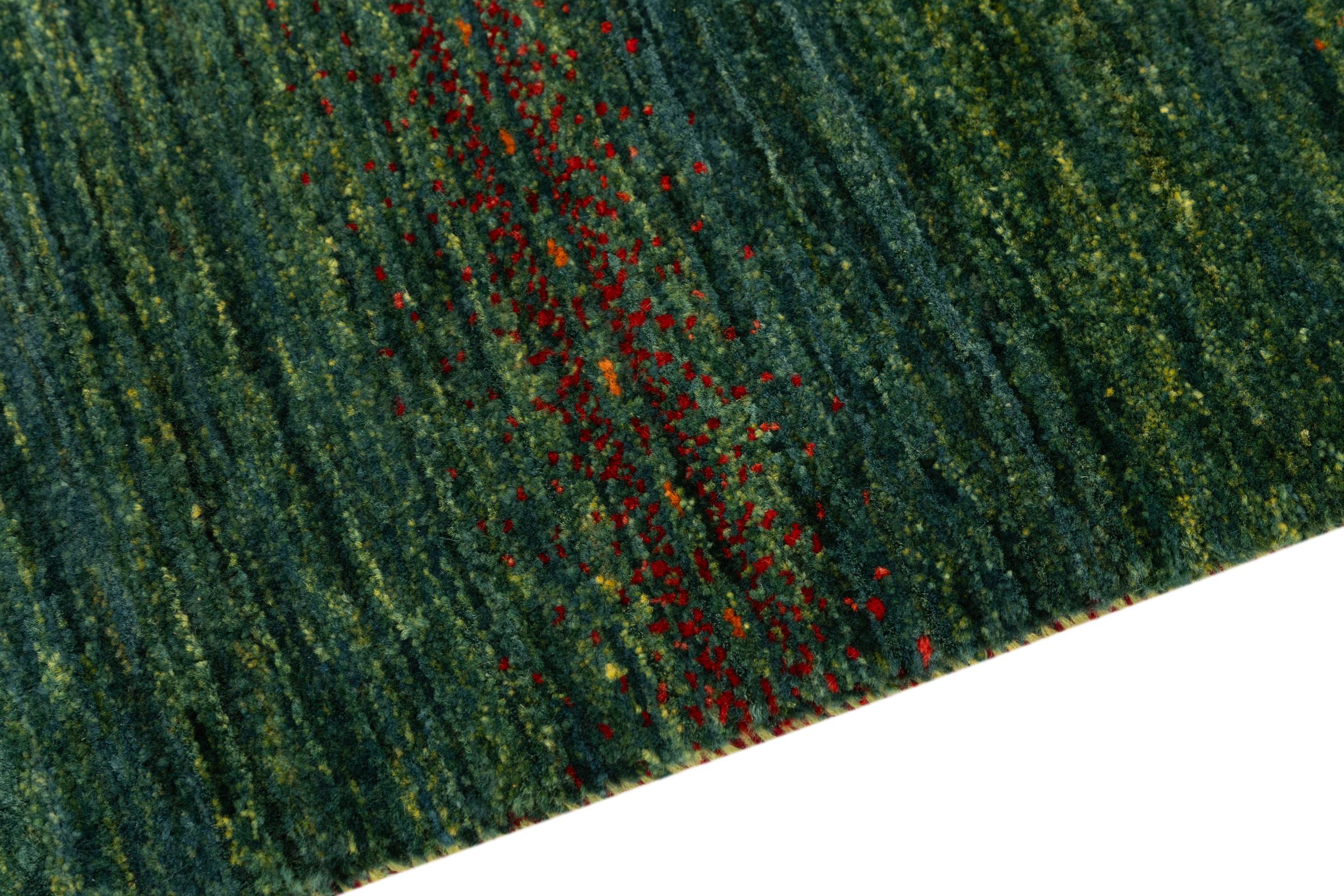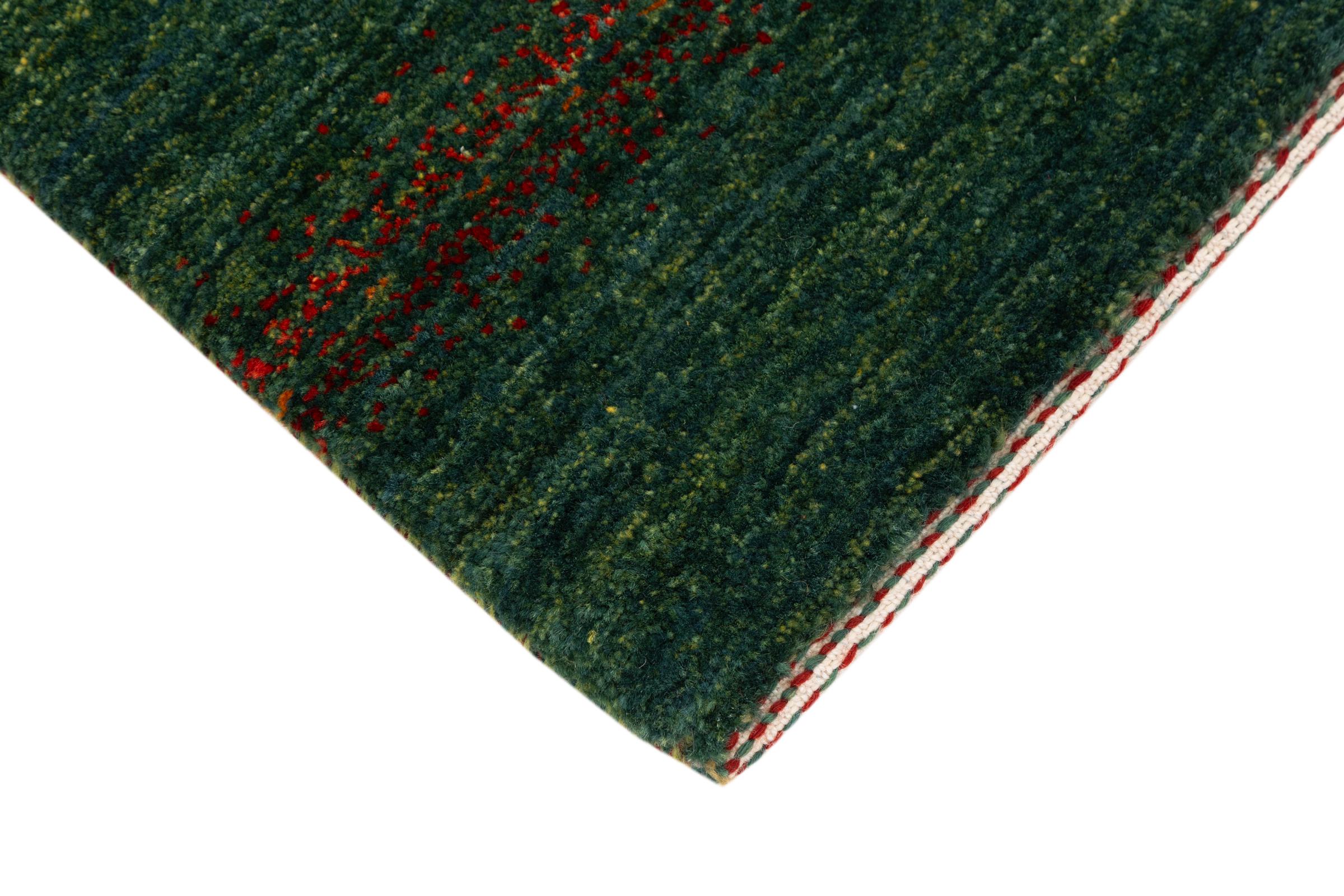 Questo bellissimo tappeto è un Gabbeh persiano e appartiene quindi ai tappeti Gabbeh di altissima qualità. I tappeti sono annodati da nomadi o seminomadi in Iran secondo la tradizione artigianale. I motivi e i motivi semplici sono per lo più ispirati all'ambiente immediato dei nomadi. Ad esempio cammelli, alberi o cespugli si trovano sui tappeti tradizionali. I tappeti persiani Gabbeh sono realizzati con lana proveniente da greggi di pecore allevate localmente. La lana è quindi per lo più ancora filata a mano. Così ognuno di questi tappeti orientali incarna un carattere unico di cultura secolare.