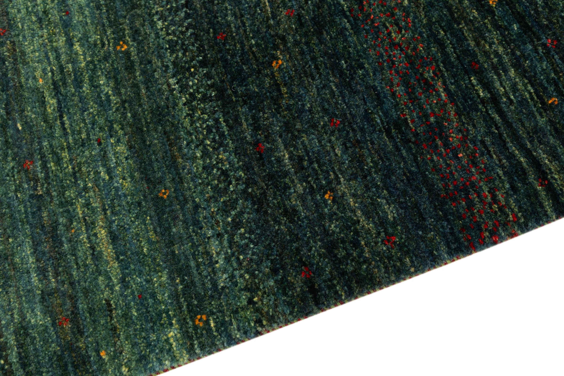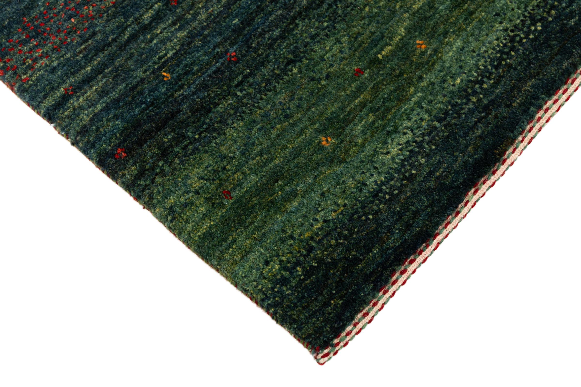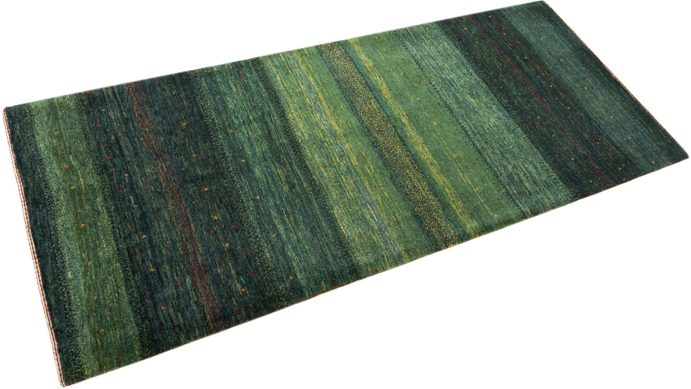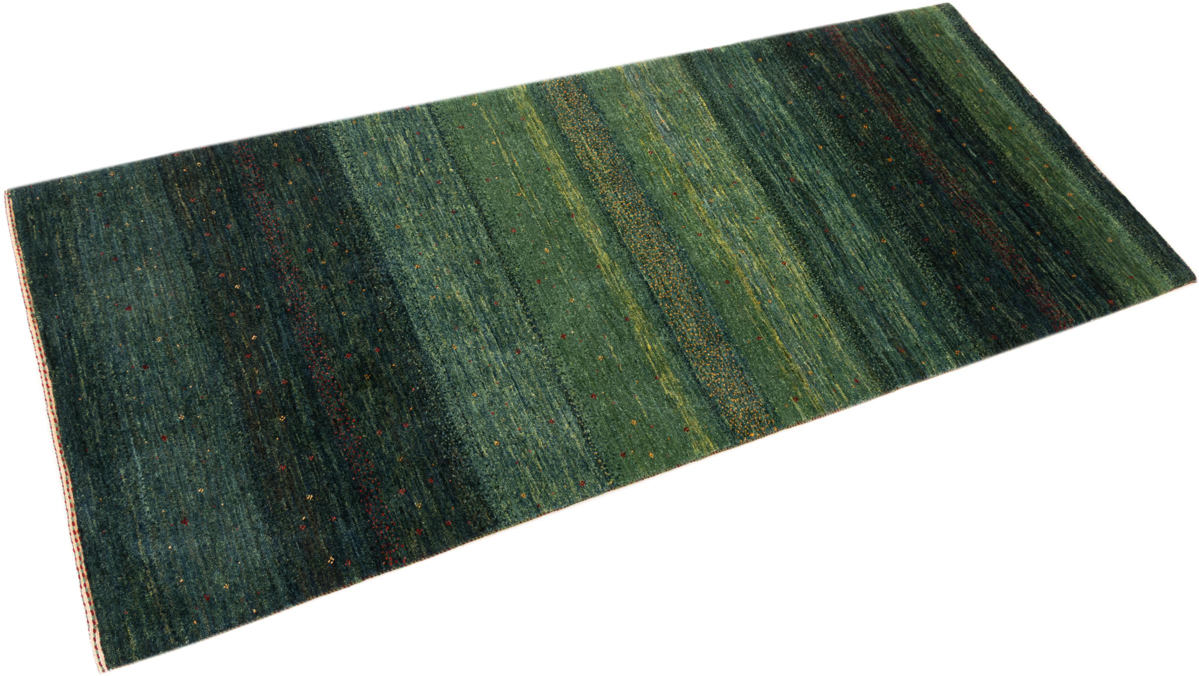 Questo bellissimo tappeto è un Gabbeh persiano e appartiene quindi ai tappeti Gabbeh di altissima qualità. I tappeti sono annodati da nomadi o seminomadi in Iran secondo la tradizione artigianale. I motivi e i motivi semplici sono per lo più ispirati all'ambiente immediato dei nomadi. Ad esempio cammelli, alberi o cespugli si trovano sui tappeti tradizionali. I tappeti persiani Gabbeh sono realizzati con lana proveniente da greggi di pecore allevate localmente. La lana è quindi per lo più ancora filata a mano. Così ognuno di questi tappeti orientali incarna un carattere unico di cultura secolare.