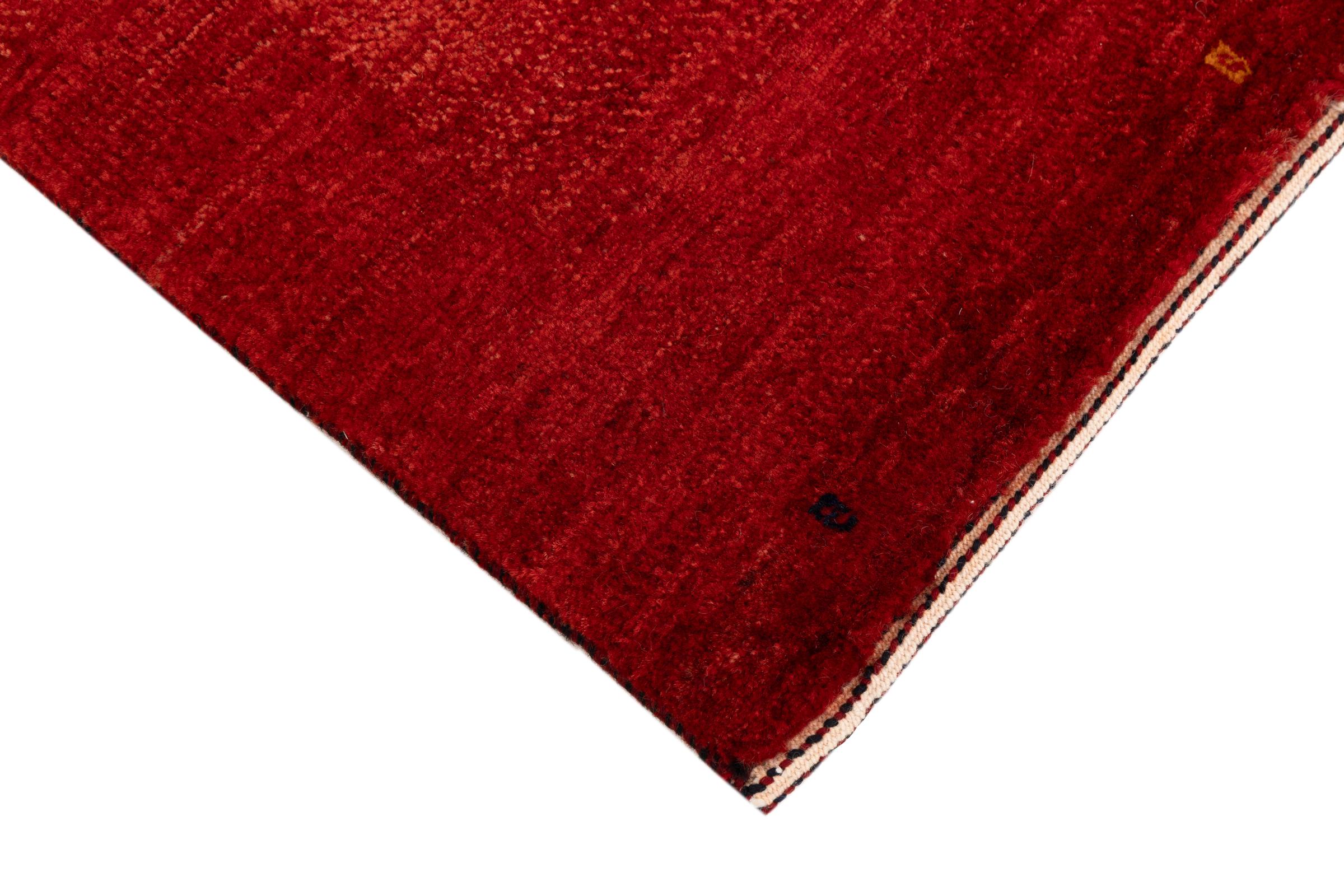 Questo bellissimo tappeto è un Gabbeh persiano e appartiene quindi ai tappeti Gabbeh di altissima qualità. I tappeti sono annodati da nomadi o seminomadi in Iran secondo la tradizione artigianale. I motivi e i motivi semplici sono per lo più ispirati all'ambiente immediato dei nomadi. Ad esempio cammelli, alberi o cespugli si trovano sui tappeti tradizionali. I tappeti persiani Gabbeh sono realizzati con lana proveniente da greggi di pecore allevate localmente. La lana è quindi per lo più ancora filata a mano. Così ognuno di questi tappeti orientali incarna un carattere unico di cultura secolare.