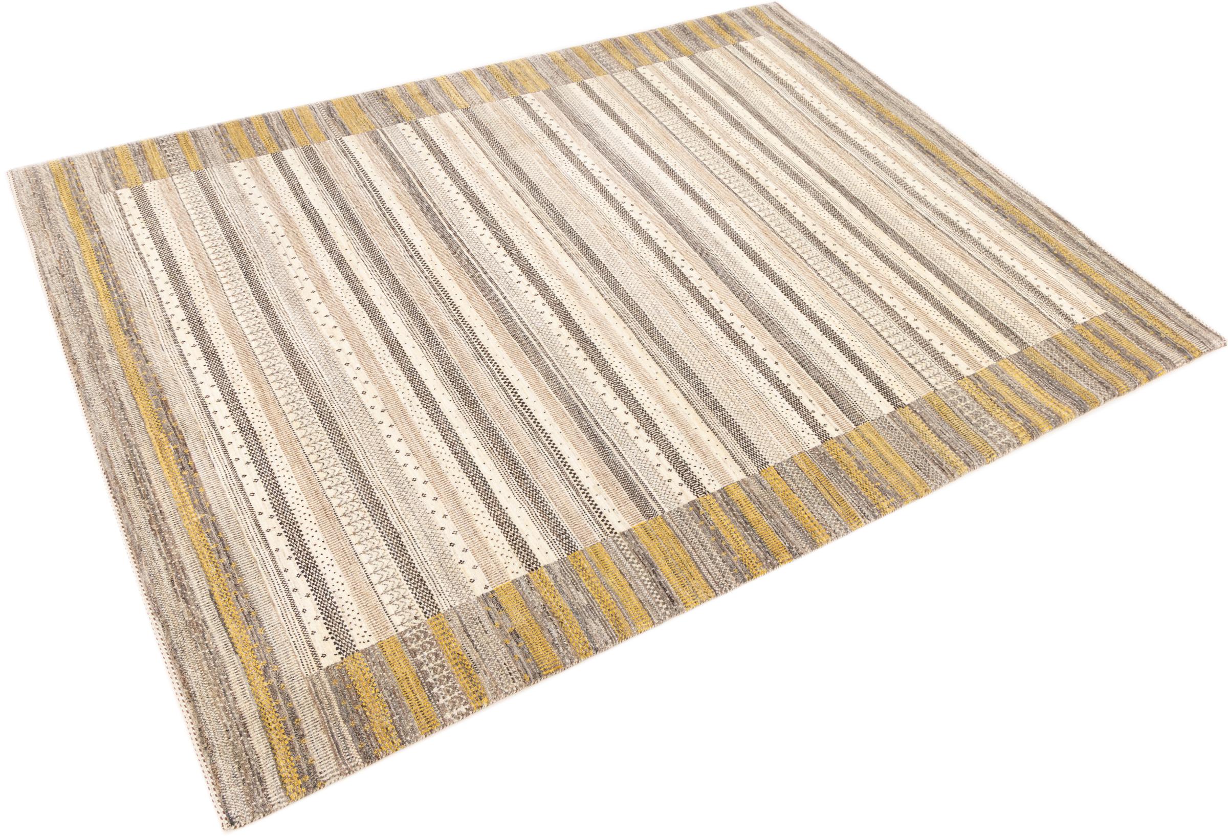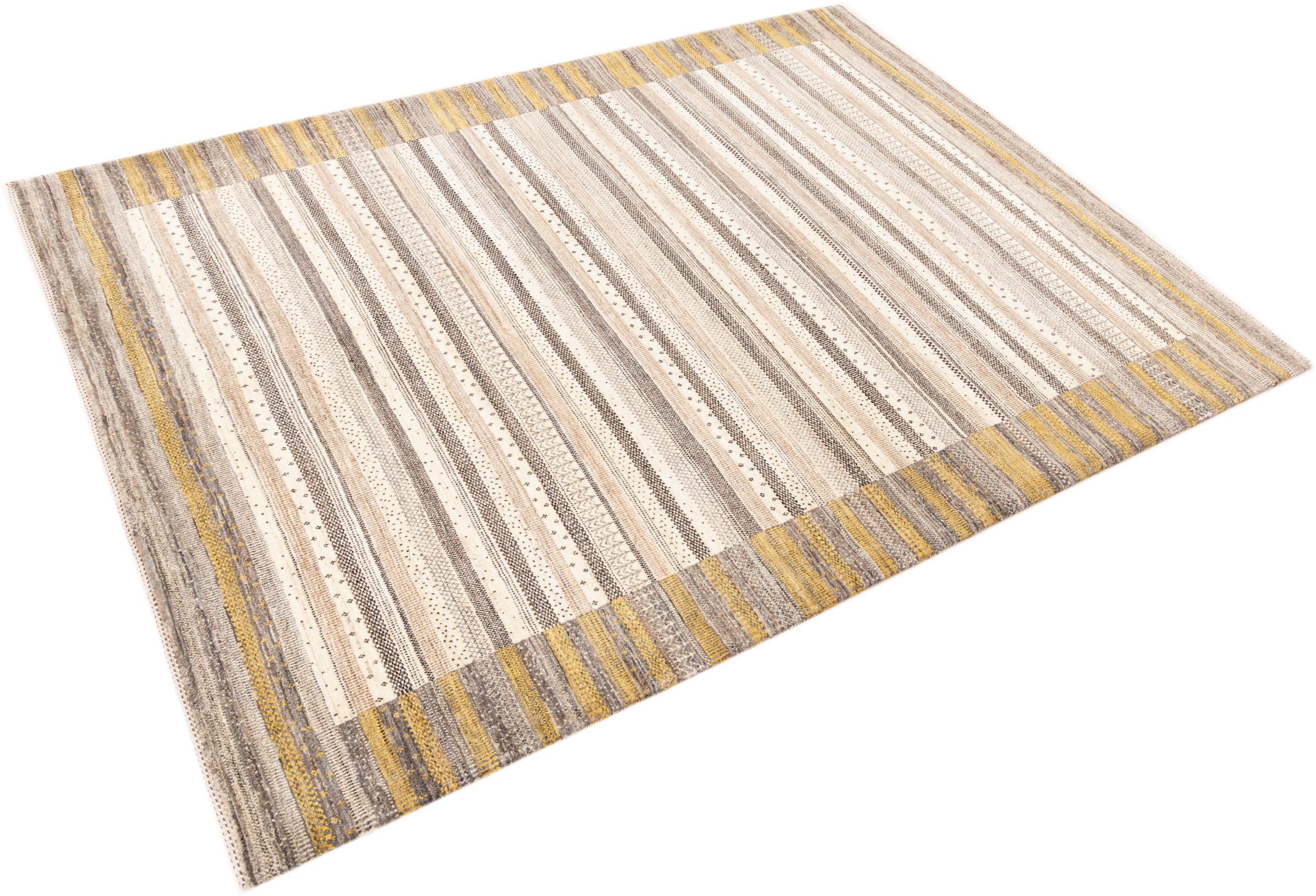 Questo bellissimo tappeto è un Gabbeh persiano e appartiene quindi ai tappeti Gabbeh di altissima qualità. I tappeti sono annodati da nomadi o seminomadi in Iran secondo la tradizione artigianale. I motivi e i motivi semplici sono per lo più ispirati all'ambiente immediato dei nomadi. Ad esempio cammelli, alberi o cespugli si trovano sui tappeti tradizionali. I tappeti persiani Gabbeh sono realizzati con lana proveniente da greggi di pecore allevate localmente. La lana è quindi per lo più ancora filata a mano. Così ognuno di questi tappeti orientali incarna un carattere unico di cultura secolare.