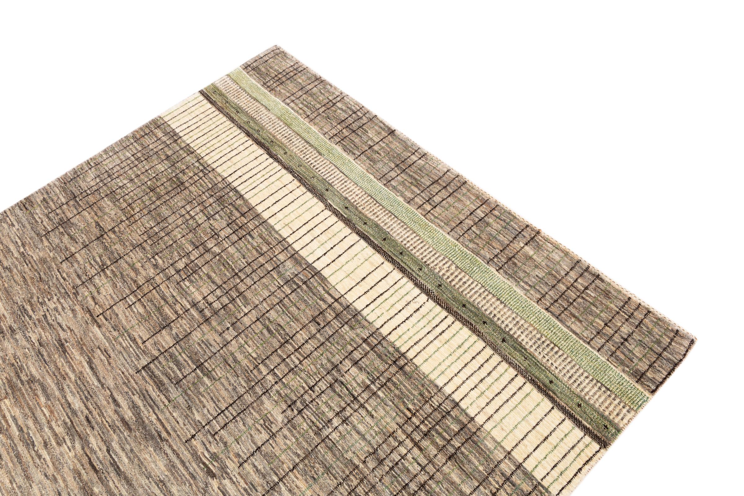 Questo bellissimo tappeto è un Gabbeh persiano e appartiene quindi ai tappeti Gabbeh di altissima qualità. I tappeti sono annodati da nomadi o seminomadi in Iran secondo la tradizione artigianale. I motivi e i motivi semplici sono per lo più ispirati all'ambiente immediato dei nomadi. Ad esempio cammelli, alberi o cespugli si trovano sui tappeti tradizionali. I tappeti persiani Gabbeh sono realizzati con lana proveniente da greggi di pecore allevate localmente. La lana è quindi per lo più ancora filata a mano. Così ognuno di questi tappeti orientali incarna un carattere unico di cultura secolare.
