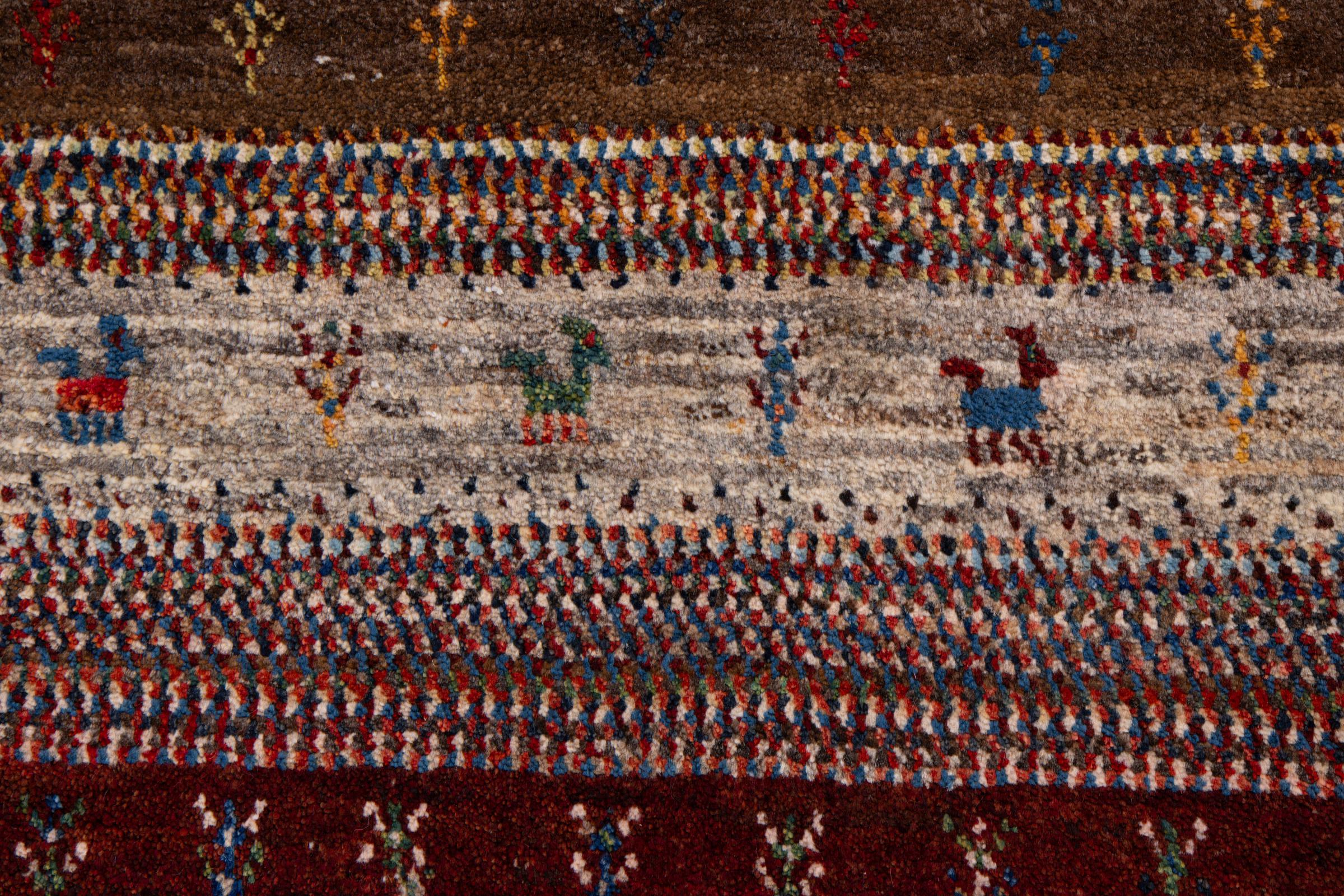 Questi tappeti appartengono ai tappeti per villaggi e ai nomadi dell'Iran, ex Persia. Questo tipo di tappeto viene annodato a mano nelle città e nei villaggi più piccoli secondo l'antica tradizione. Anche i nomadi annodano ancora i tappeti persiani all'aperto. I tappeti sono annodati senza motivo e completamente dalla testa. Sono caratterizzati da ornamenti classici, che sono disposti in motivi rettilinei e geometrici. Grazie alla loro origine culturale-tradizionale, questi tappeti hanno un carattere unico che incarna l'antica Persia.