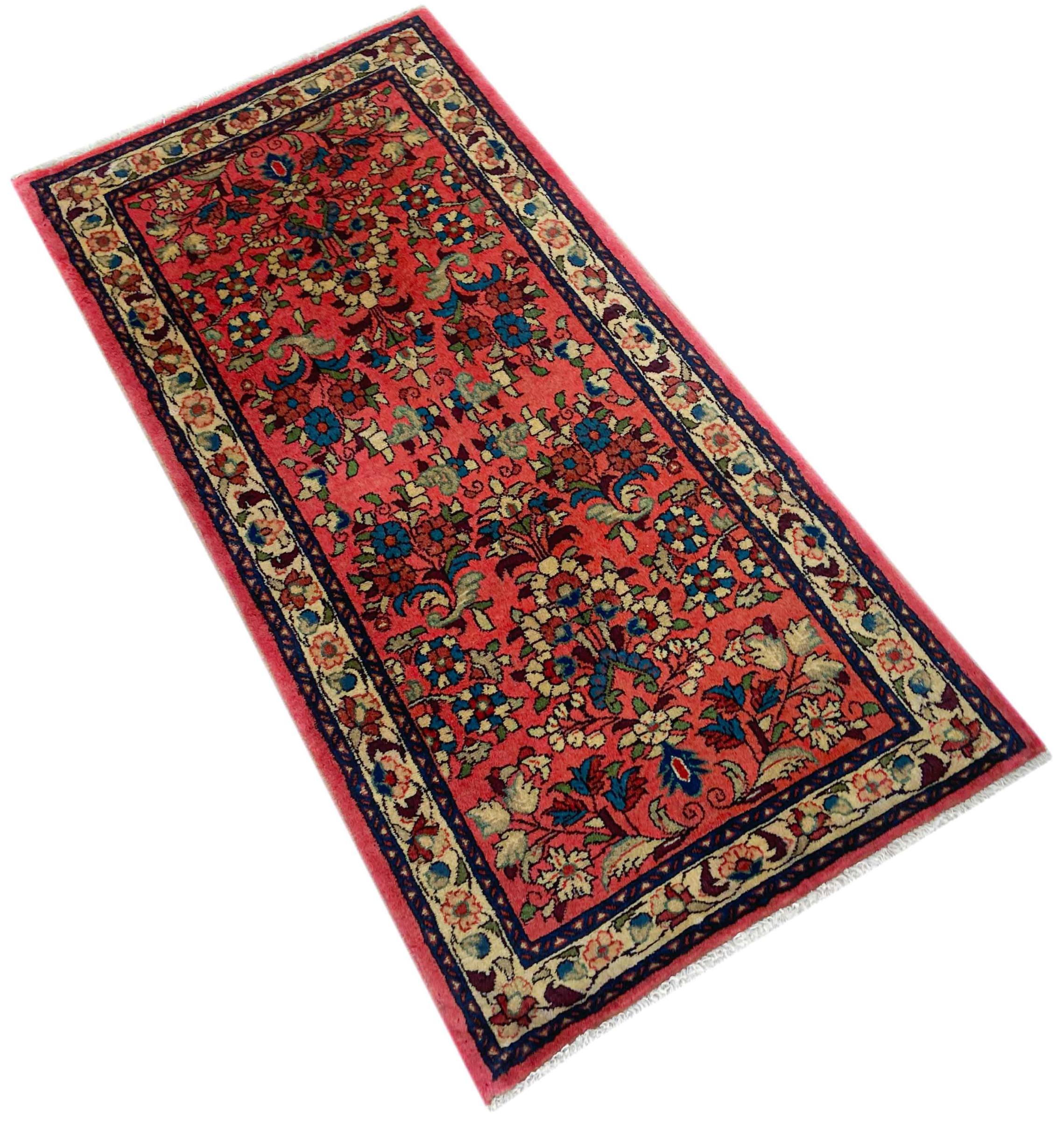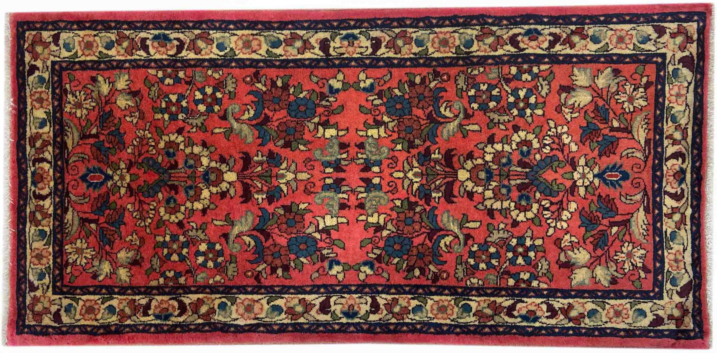 Tappeto-N.: 318428009033150 Dimensione: 131x67 cm Spessore: circa . 12 mm Nodi: 200 000 - 250 000 / m² Lavorazione: Annodato a mano Fondo: Lana filata a mano Catena: Cotone Origine: Persia / Iran Età: Nuovo Peso: circa . 4 kg Conosciuto anche come Arak , Sarough, Sarouk, Saruk, Saroq, Sultanabad Disponibile: Unico - Solo 1 disponibili