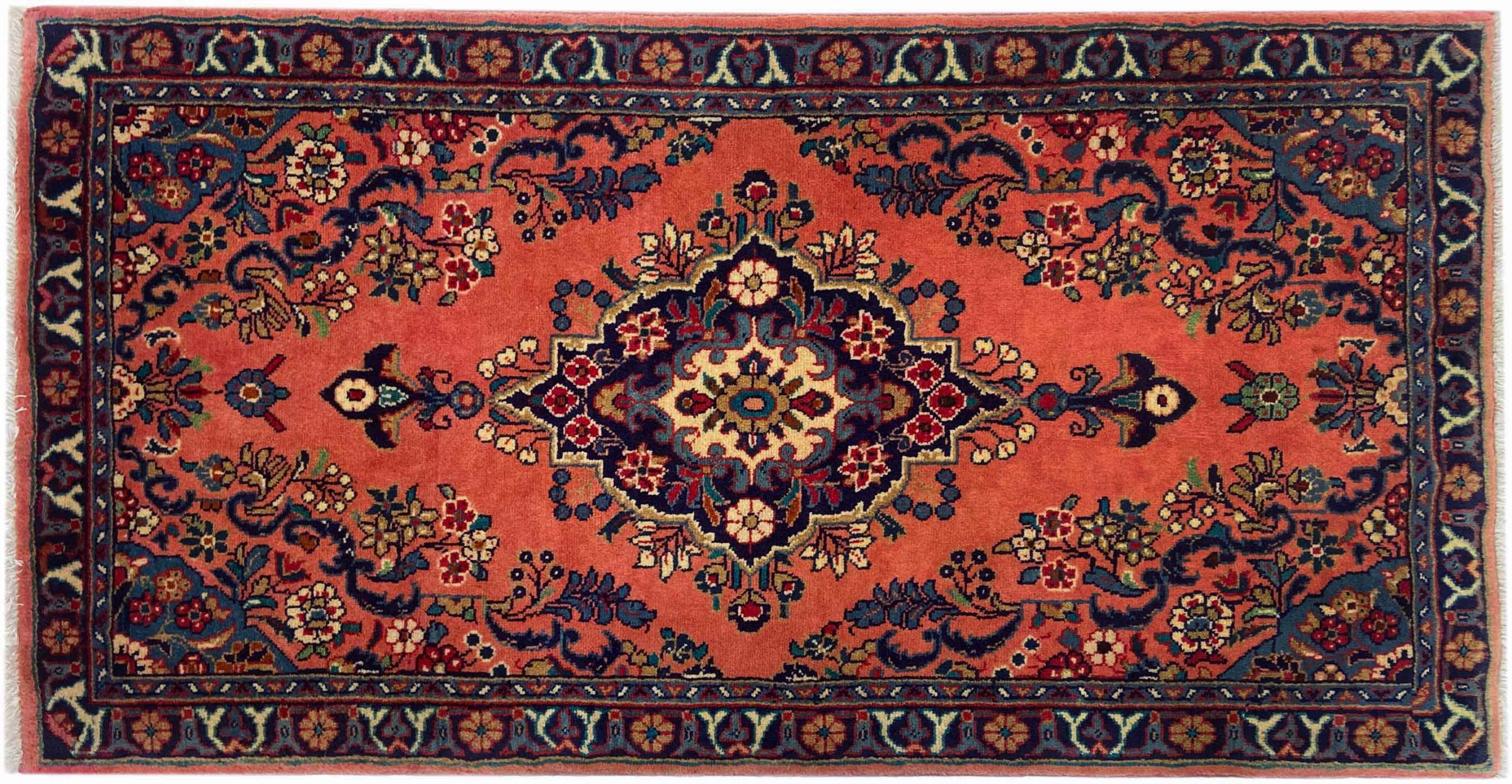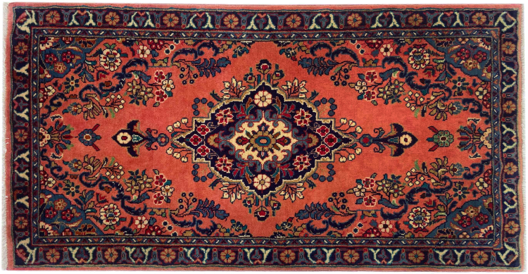 Tappeto-N.: 318438004502066 Dimensione: 149x77 cm Spessore: circa . 12 mm Nodi: 200 000 - 250 000 / m² Lavorazione: Annodato a mano Fondo: Lana filata a mano Catena: Cotone Origine: Persia / Iran Età: Nuovo Peso: circa . 5 kg Conosciuto anche come Arak , Sarough, Sarouk, Saruk, Saroq, Sultanabad Disponibile: Unico - Solo 1 disponibili