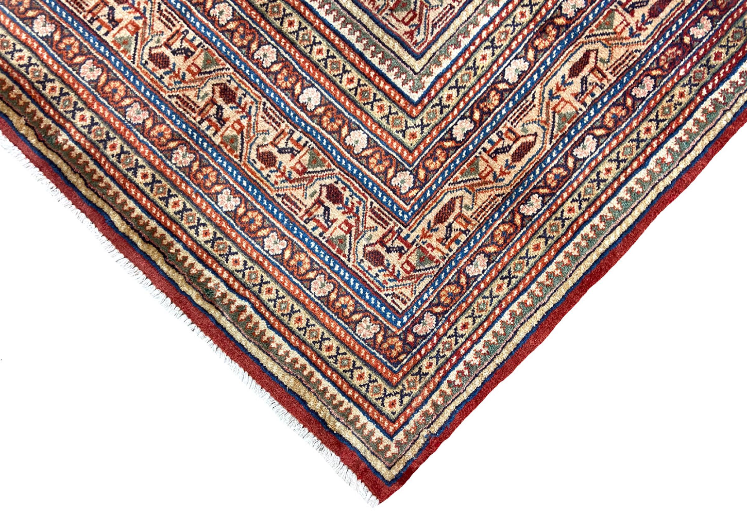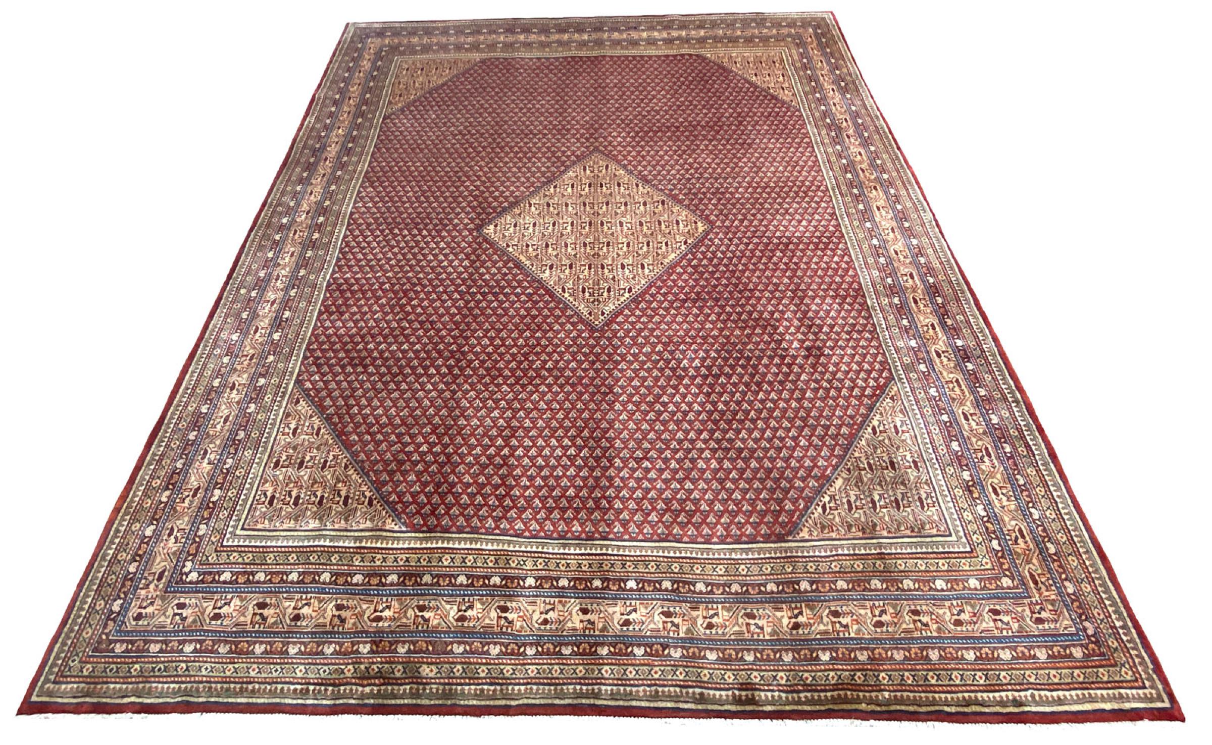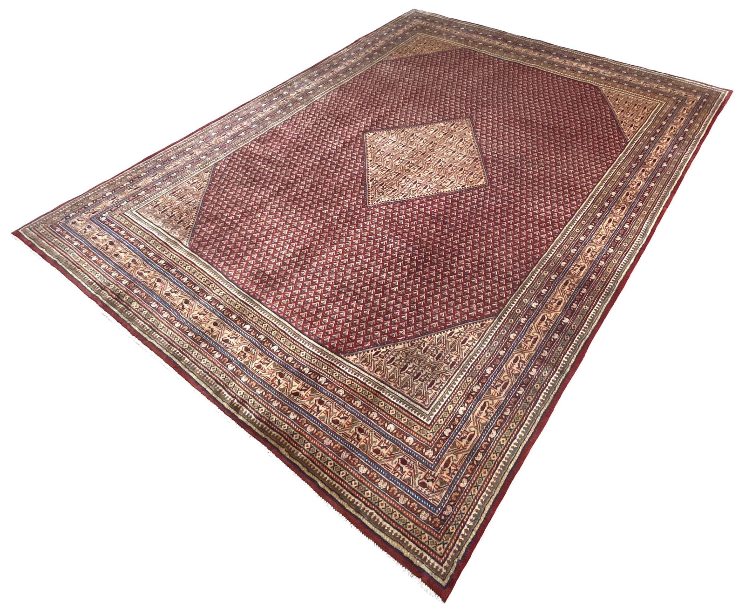 Tappeto-N.: 318903006790206 Dimensione: 383x283 cm Spessore: circa . 12 mm Nodi: 128 000 - 160 000 / m² Lavorazione: Annodato a mano Fondo: Lana filata a mano Catena: Cotone Origine: Persia / Iran Età: Nuovo Peso: circa . 43 kg Conosciuto anche come Sarough Mir Disponibile: Unico - Solo 1 disponibili