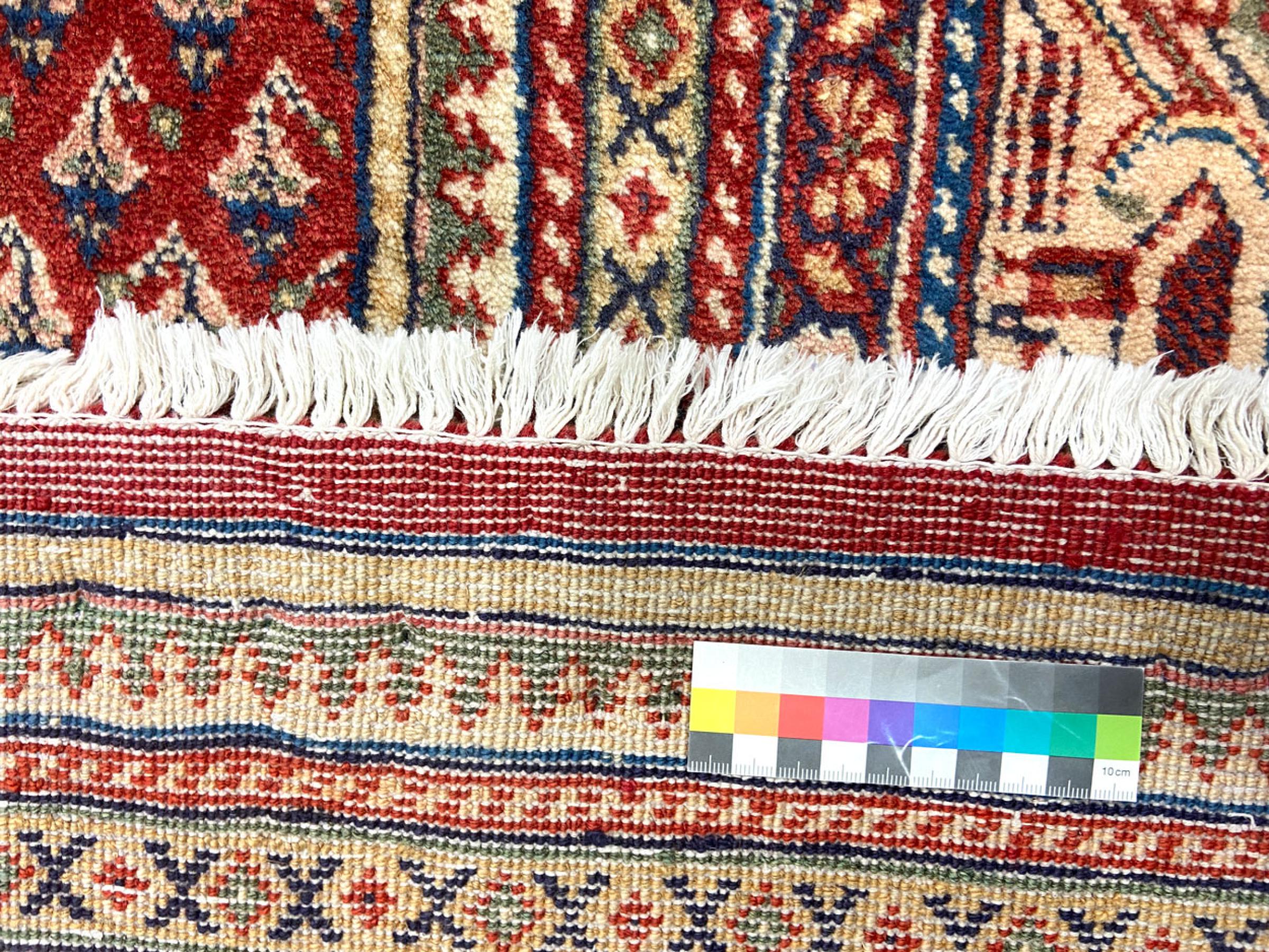 Questo tappeto è realizzato in lana di pecora filata a mano di altissima qualità. Soprattutto in Iran (ex Persia), Afghanistan e Pakistan la lana viene ancora filata a mano prima che inizi l'annodatura vera e propria del tappeto. La lana si è dimostrata nei secoli un materiale naturale ed estremamente resistente. Tra le altre cose, ha proprietà di repellenza allo sporco e di isolamento termico. Allo stesso tempo, la lana è incomparabilmente morbida e ha una lucentezza naturale.