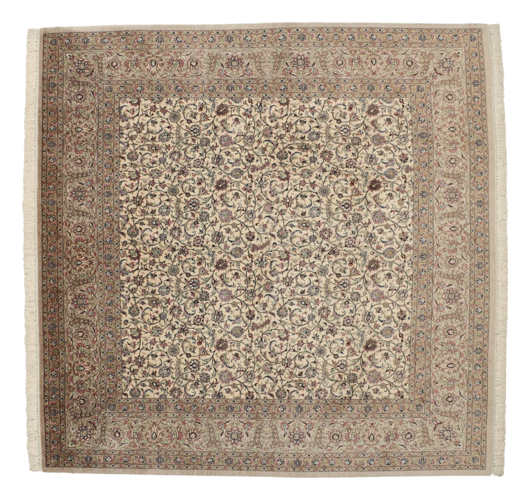 Tappeto-N.: 309591003342650 Dimensione: 199x196 cm Spessore: circa . 3 mm Nodi: 1 000 000 / m² Lavorazione: Annodato a mano Fondo: Seta Catena: Seta Origine: Persia / Iran Età: Nuovo Peso: circa . 8 kg Disponibile: Unico - Solo 1 disponibili