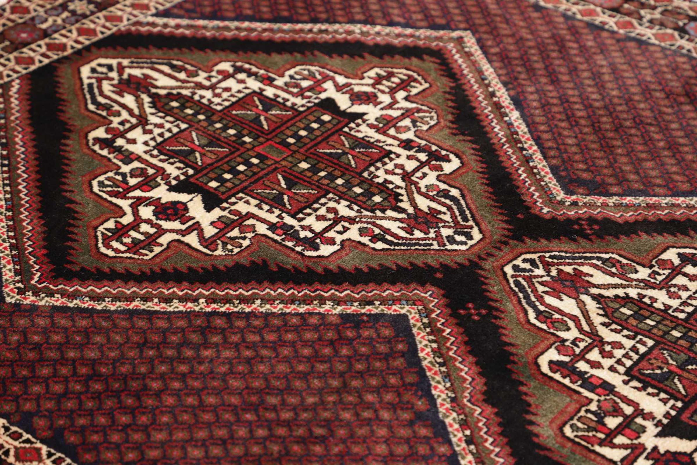 Questi tappeti appartengono ai tappeti per villaggi e ai nomadi dell'Iran, ex Persia. Questo tipo di tappeto viene annodato a mano nelle città e nei villaggi più piccoli secondo l'antica tradizione. Anche i nomadi annodano ancora i tappeti persiani all'aperto. I tappeti sono annodati senza motivo e completamente dalla testa. Sono caratterizzati da ornamenti classici, che sono disposti in motivi rettilinei e geometrici. Grazie alla loro origine culturale-tradizionale, questi tappeti hanno un carattere unico che incarna l'antica Persia.