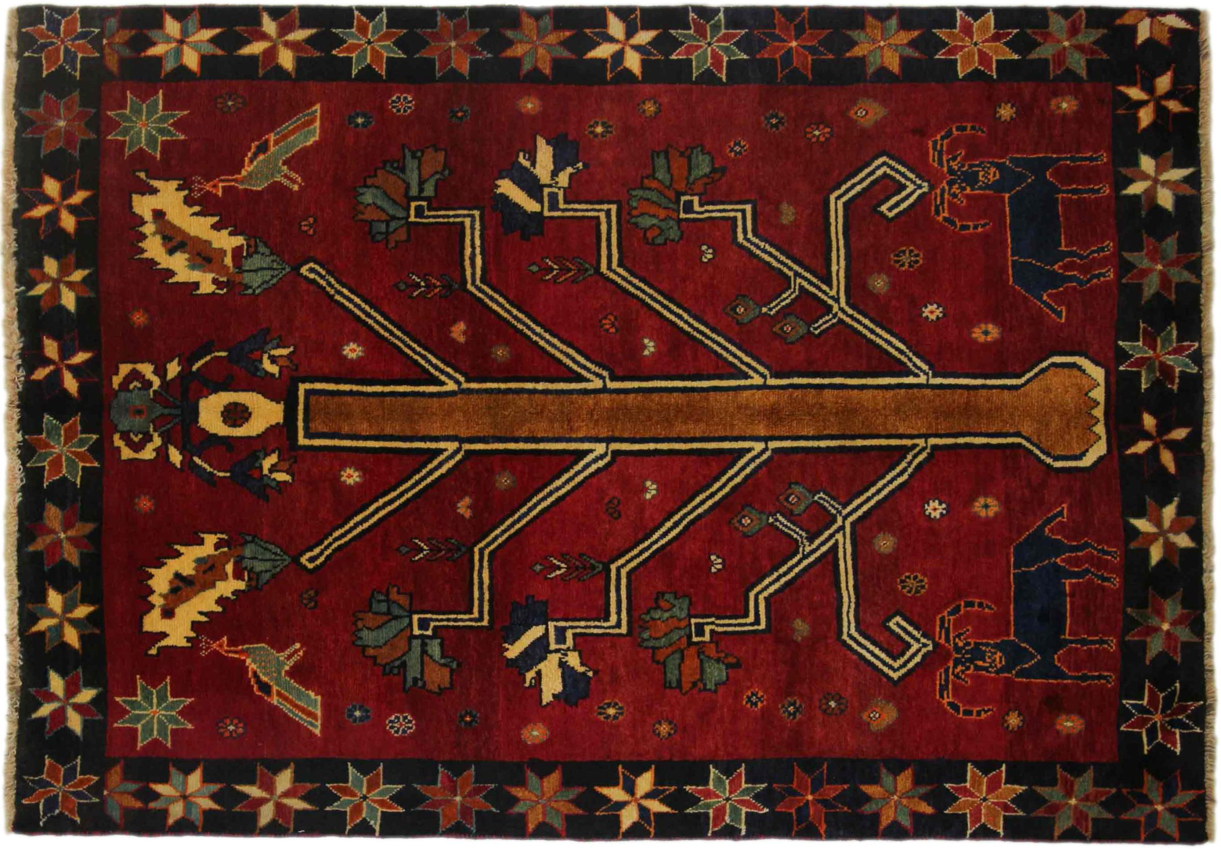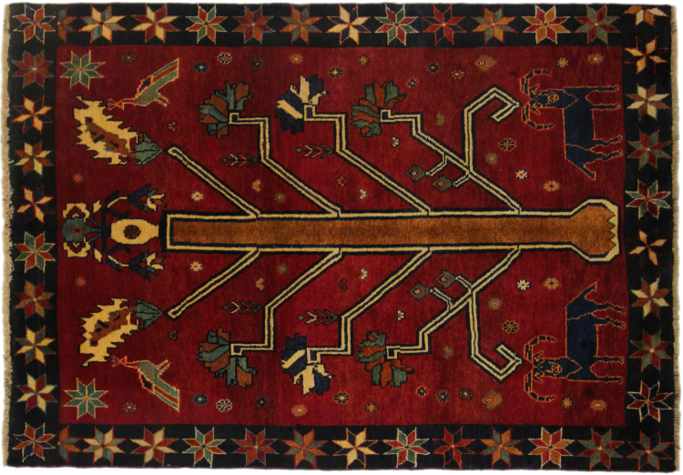 Questi tappeti appartengono ai tappeti per villaggi e ai nomadi dell'Iran, ex Persia. Questo tipo di tappeto viene annodato a mano nelle città e nei villaggi più piccoli secondo l'antica tradizione. Anche i nomadi annodano ancora i tappeti persiani all'aperto. I tappeti sono annodati senza motivo e completamente dalla testa. Sono caratterizzati da ornamenti classici, che sono disposti in motivi rettilinei e geometrici. Grazie alla loro origine culturale-tradizionale, questi tappeti hanno un carattere unico che incarna l'antica Persia.