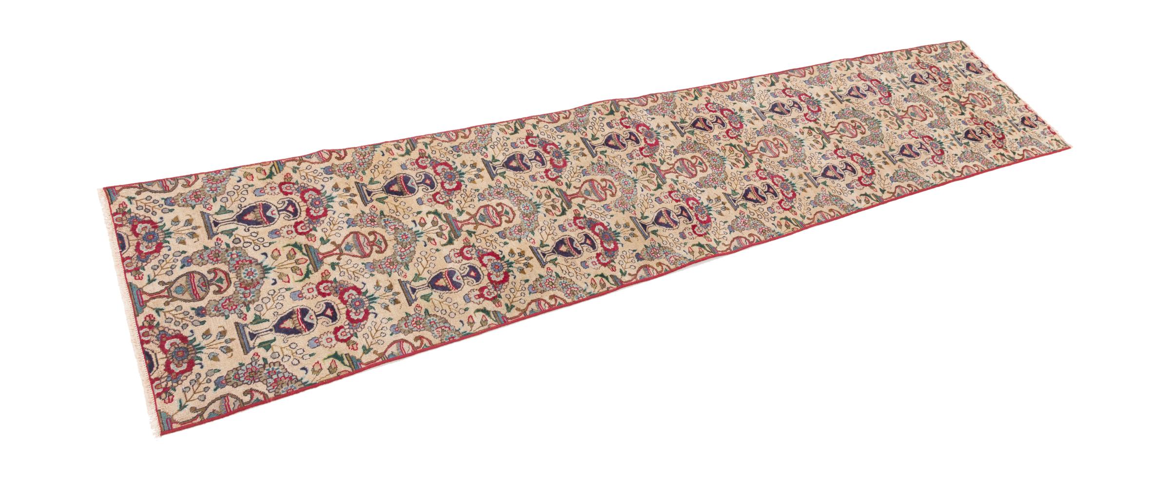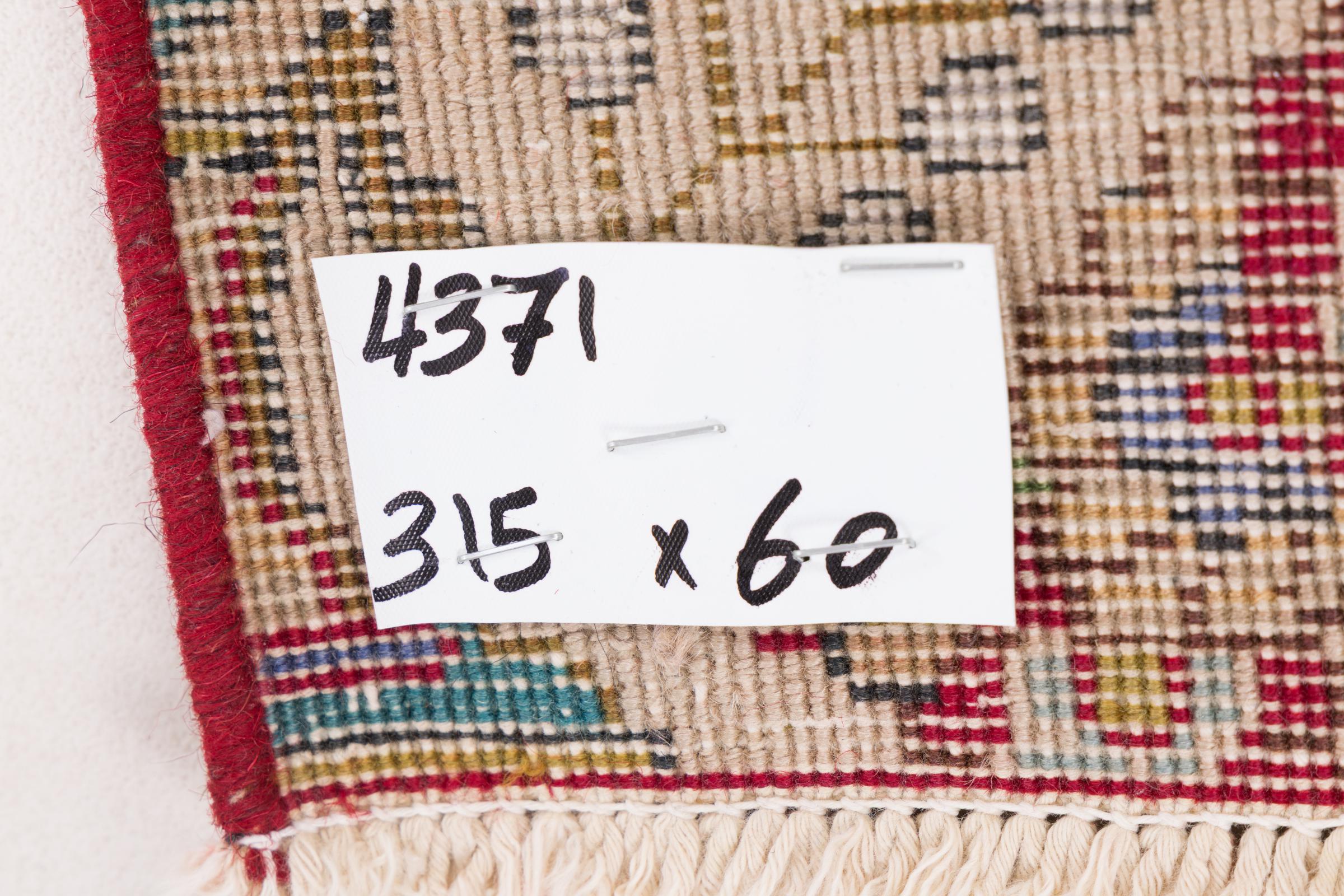 Tappeto-N.: 284277007646177 Dimensione: 314x59 cm Spessore: circa . 10 mm Nodi: 128 000 - 160 000 / m² Lavorazione: Annodato a mano Fondo: Lana filata a mano Catena: Cotone Stato / Condizione Til tappeto è fortemente ed uniformemente usurato Origine: Persia / Iran Età: circa . 30-50 Anni (Nuovo) Peso: circa . 6 kg Conosciuto anche come Tabris, Tabriz, Tebris, Tebriz, Täbris, Village Disponibile: Unico - Solo 1 disponibili