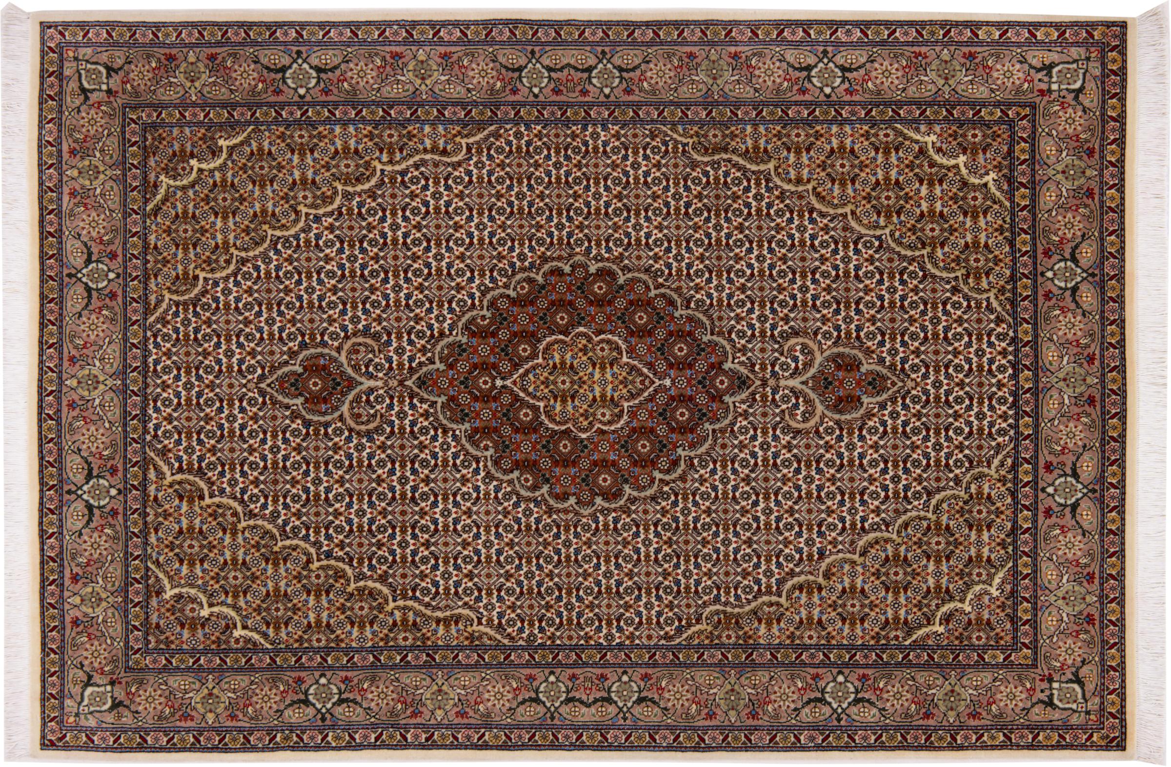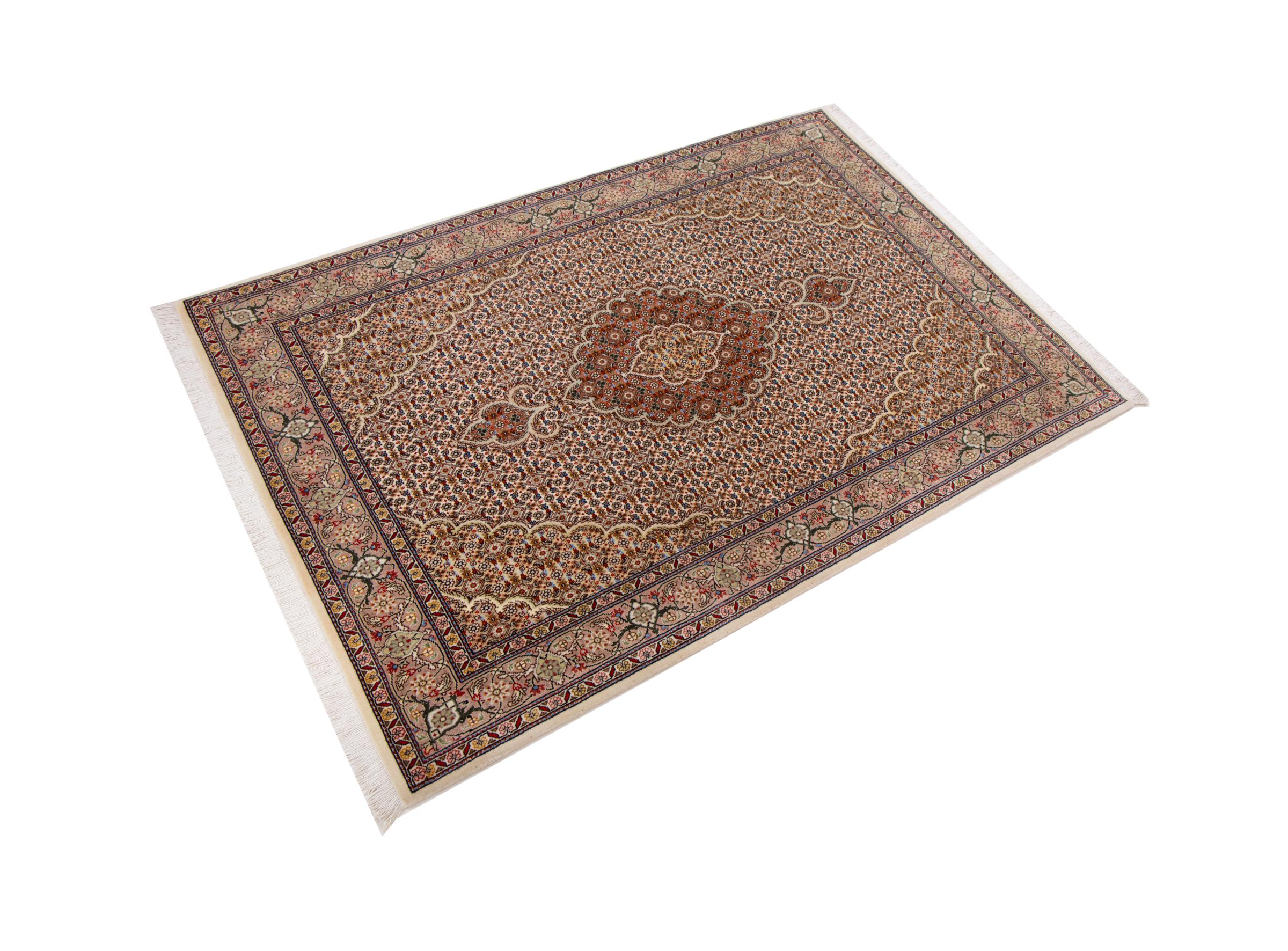 Tappeto-N.: 292531002749294 Dimensione: 154x106 cm Spessore: circa . 7 mm Nodi: 440 000 - 490 000 / m² Lavorazione: Annodato a mano Fondo: Lana con seta Catena: Cotone Origine: Persia / Iran Età: Nuovo Peso: circa . 5 kg Conosciuto anche come Tabriz, Tabris, Täbris, Tebriz, Tebris, 40Raj, 50Raj Disponibile: Unico - Solo 1 disponibili