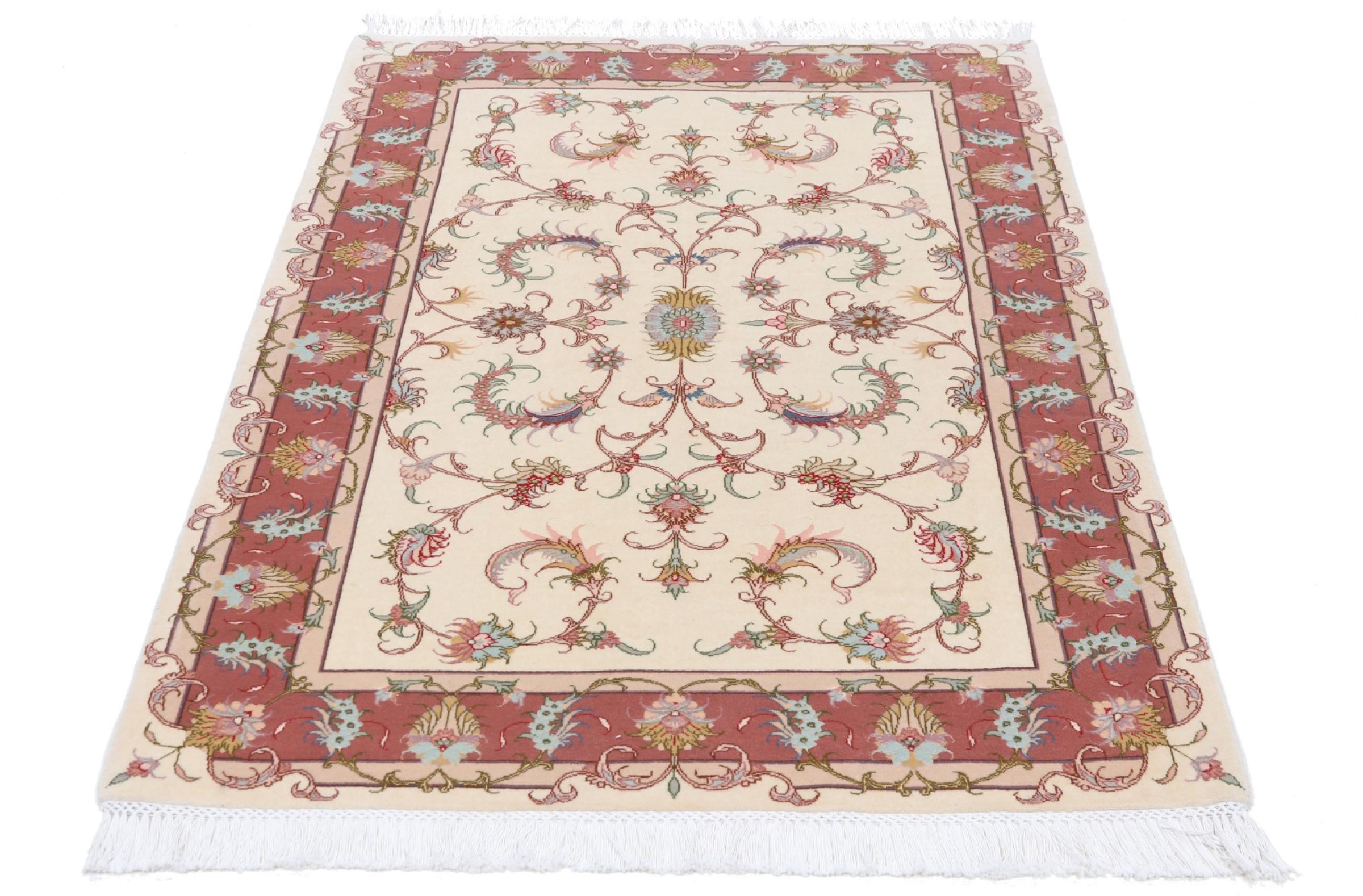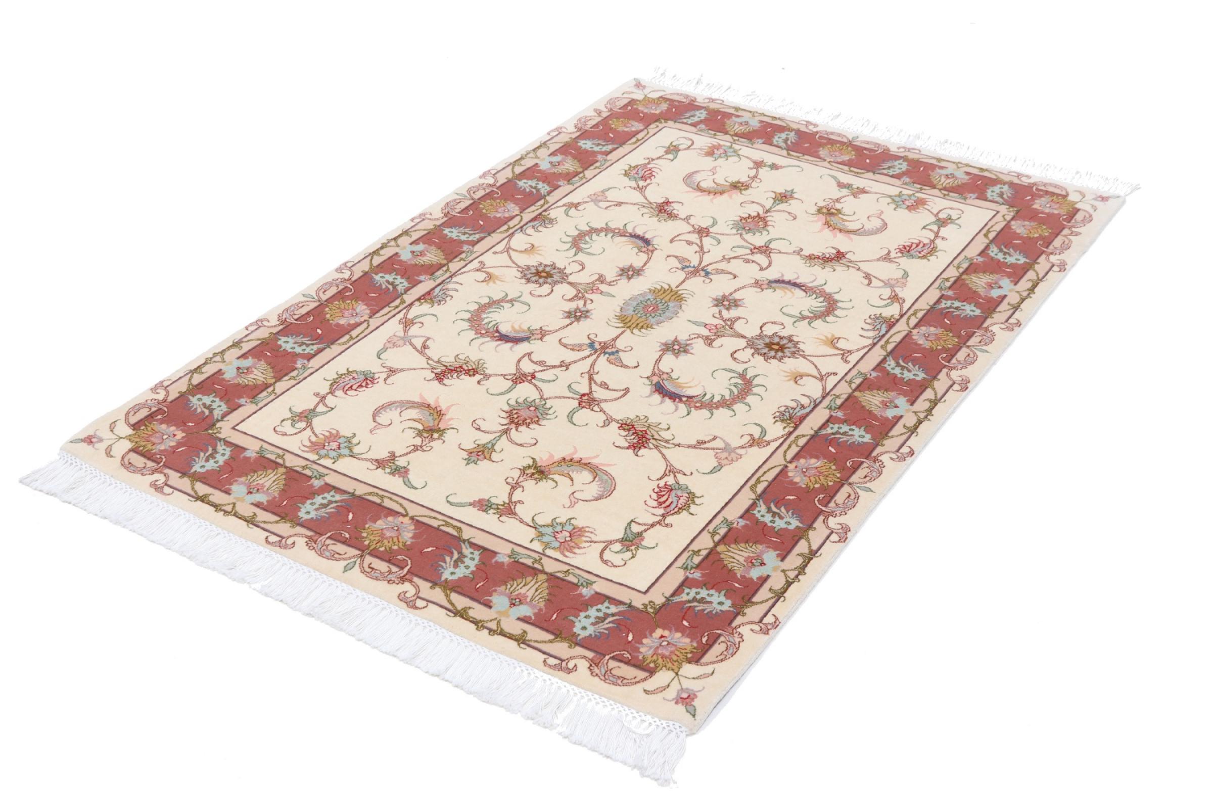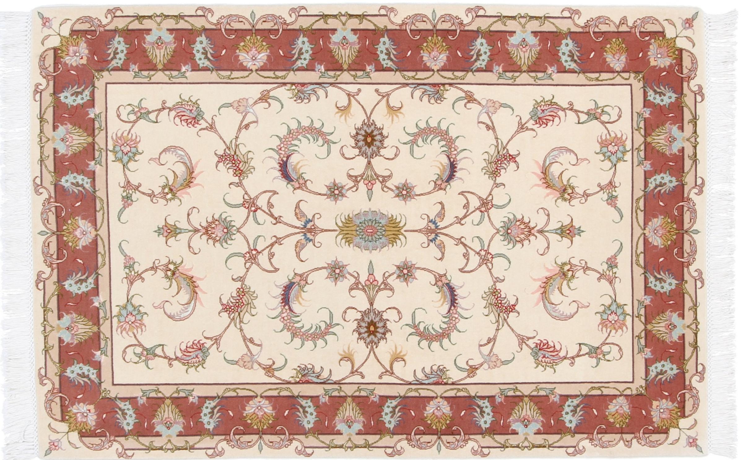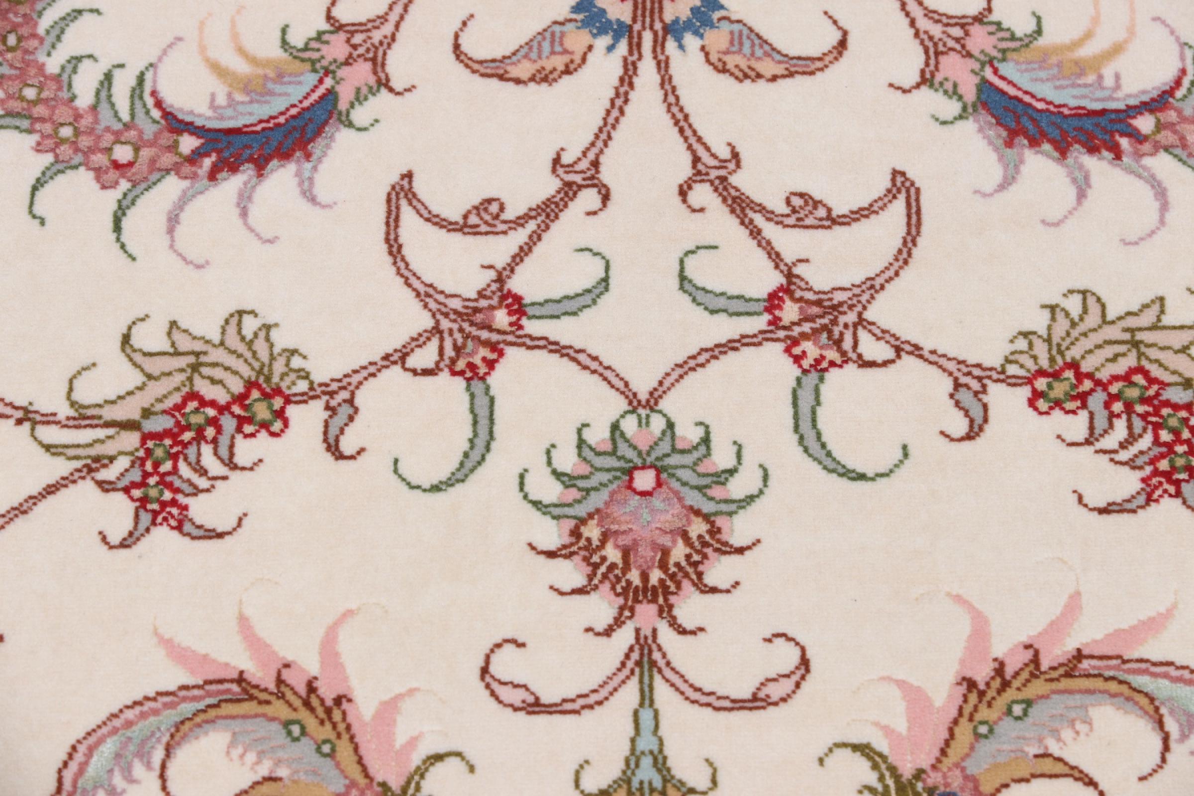 Tappeto-N.: 42000053917 Dimensione: 156x105 cm Spessore: circa . 8 mm Nodi: 450 000 - 500 000 / m² Lavorazione: Annodato a mano Fondo: Lana con seta Catena: Cotone Origine: Persia / Iran Età: Nuovo Peso: circa . 5 kg Conosciuto anche come Tabriz, Tabris, Täbris, Tebriz, Tebris, 40Raj, 50Raj Disponibile: Unico - Solo 1 disponibili