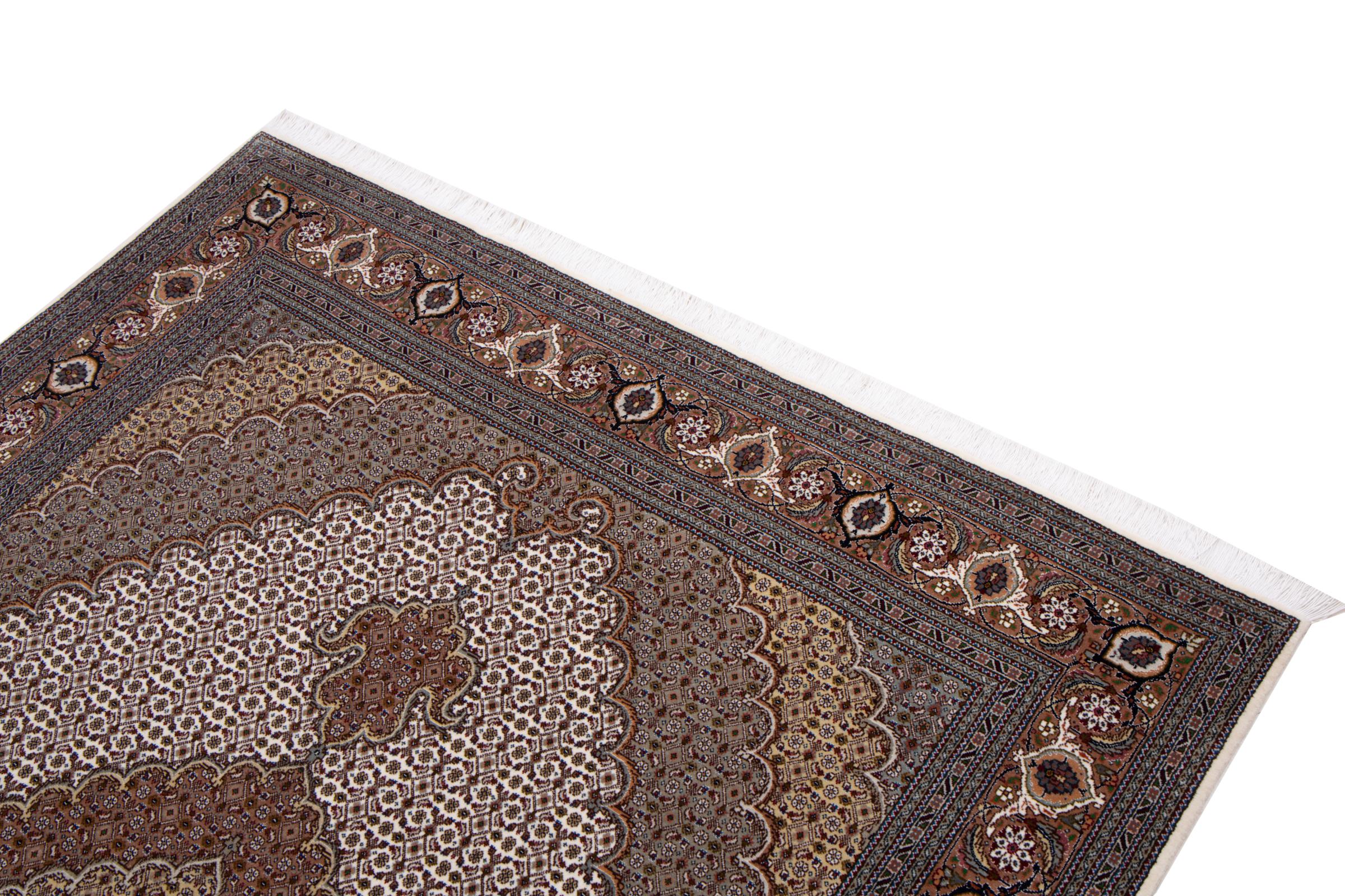 Tappeto-N.: 292246009163809 Dimensione: 203x151 cm Spessore: circa . 7 mm Nodi: 440 000 - 490 000 / m² Lavorazione: Annodato a mano Fondo: Lana con seta Catena: Cotone Origine: Persia / Iran Età: Nuovo Peso: circa . 9 kg Conosciuto anche come Tabriz, Tabris, Täbris, Tebriz, Tebris, 40Raj, 50Raj Disponibile: Unico - Solo 1 disponibili