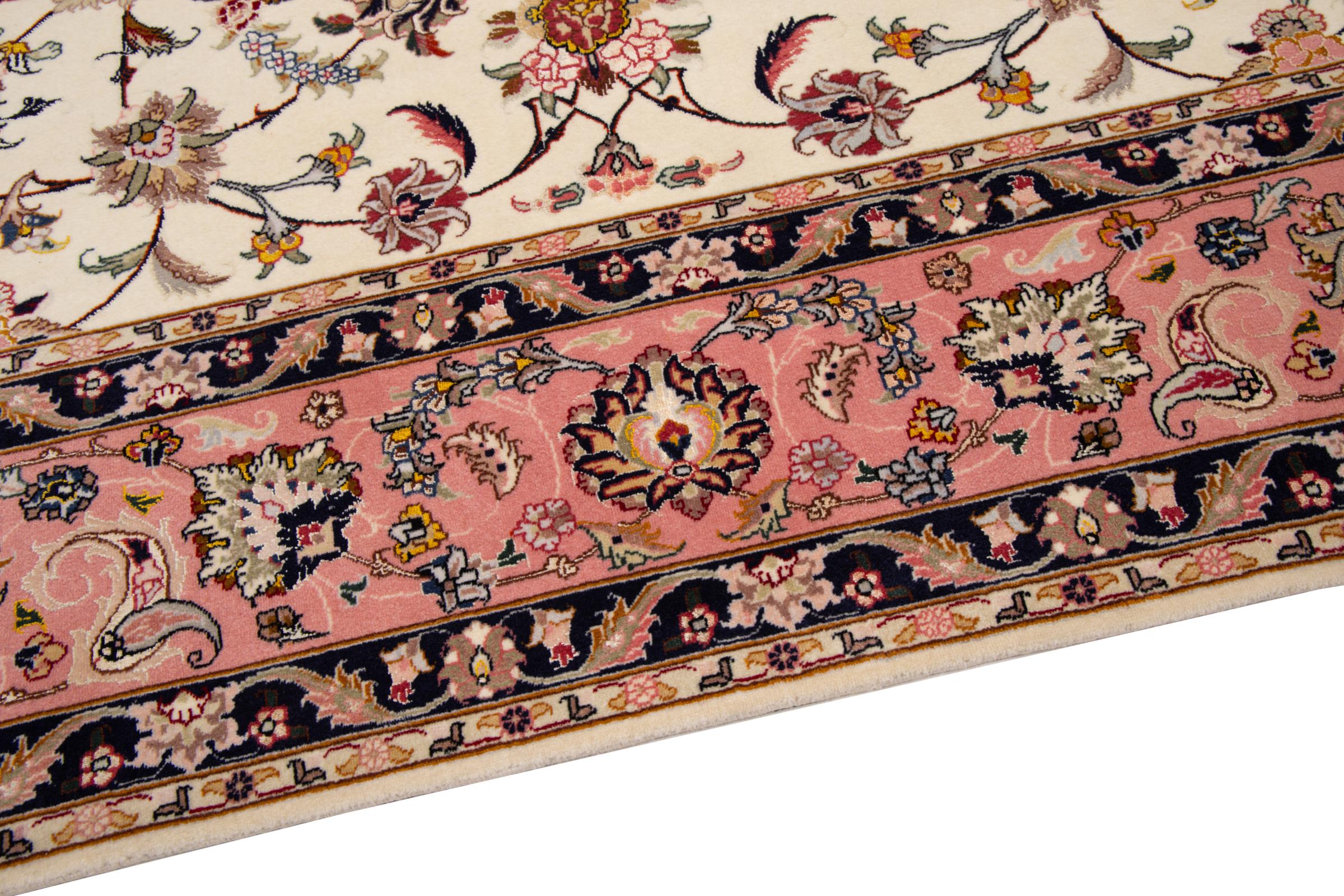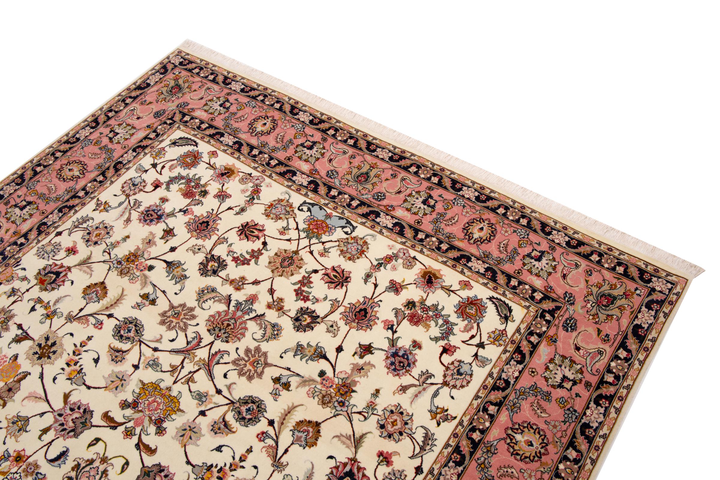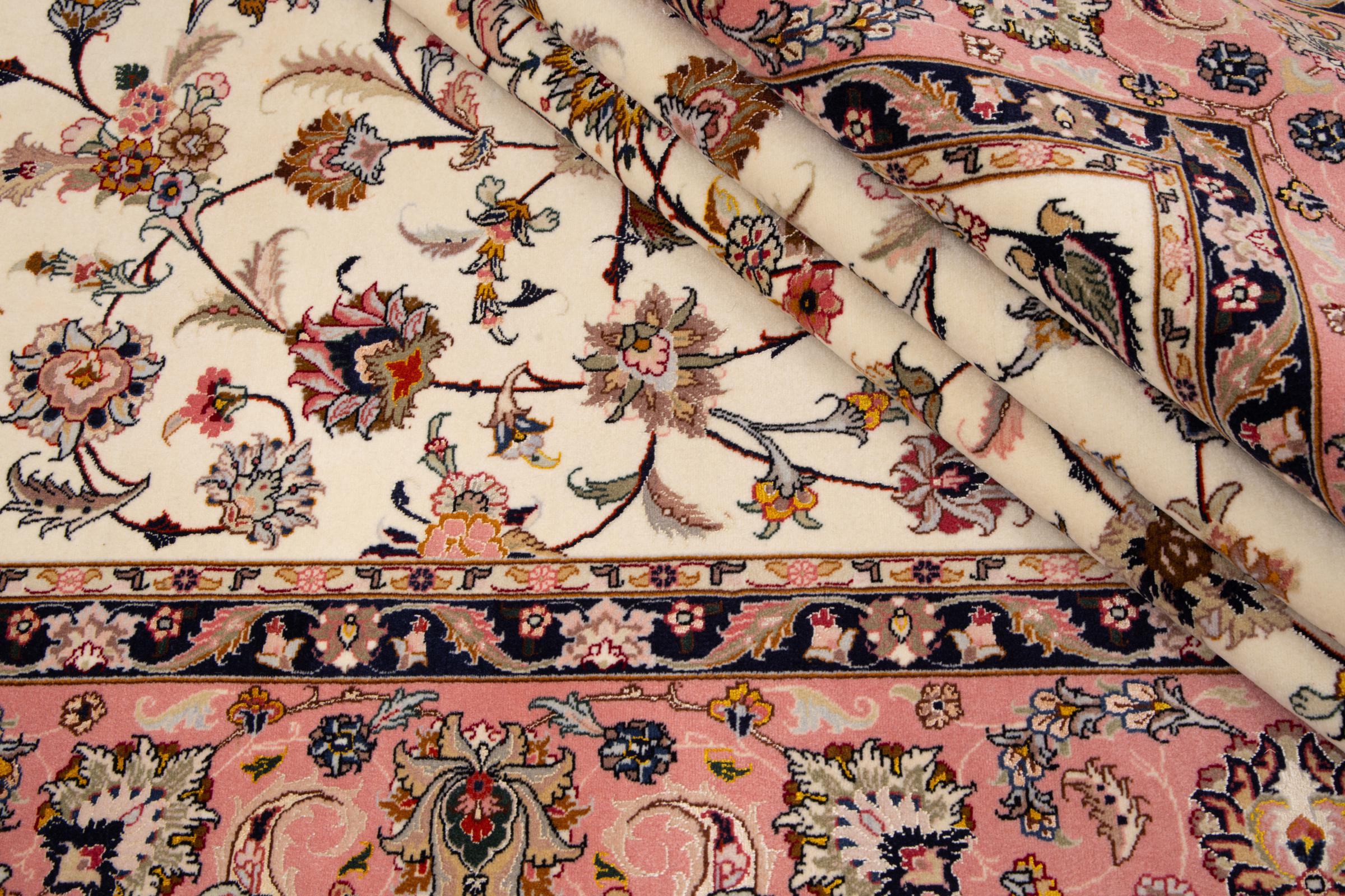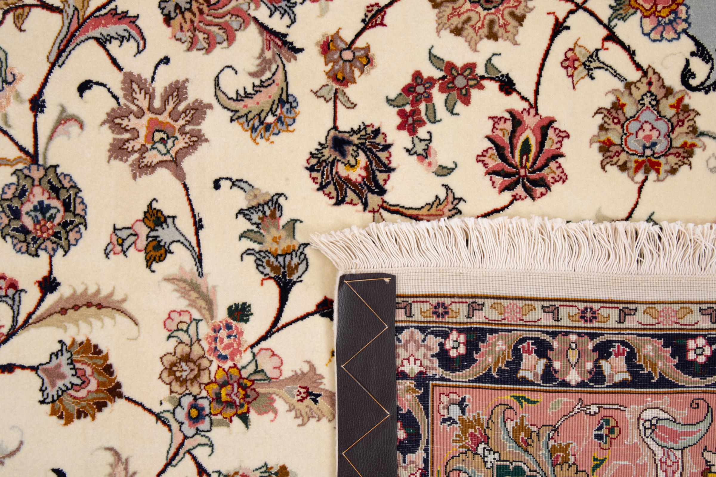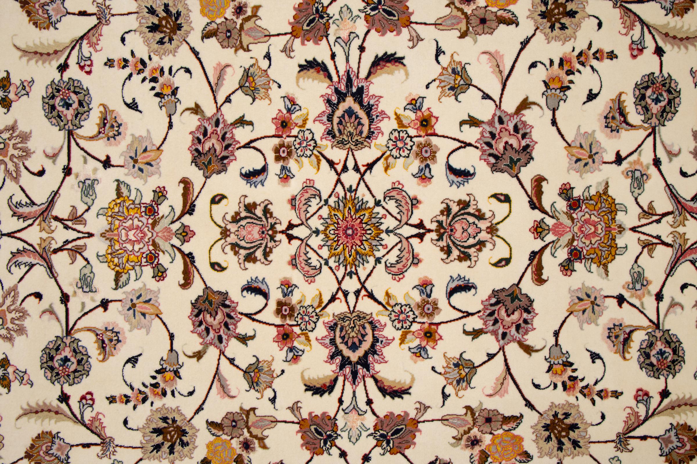 Tappeto-N.: 292980009572119 Dimensione: 299x199 cm Spessore: circa . 7 mm Nodi: 440 000 - 490 000 / m² Lavorazione: Annodato a mano Fondo: Lana con seta Catena: Cotone Origine: Persia / Iran Età: Nuovo Peso: circa . 18 kg Conosciuto anche come Tabriz, Tabris, Täbris, Tebriz, Tebris, 40Raj, 50Raj Disponibile: Unico - Solo 1 disponibili