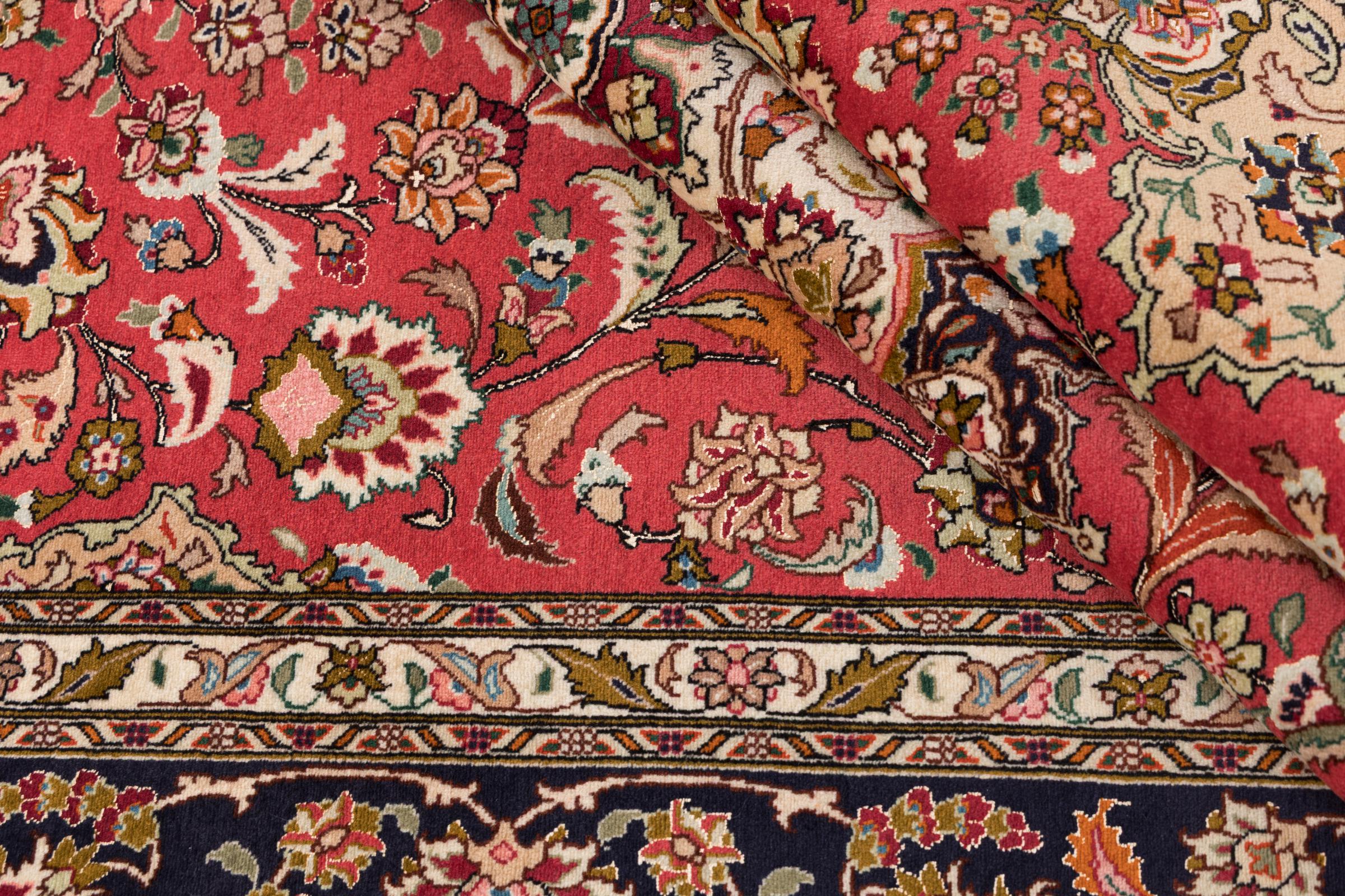 Tappeto-N.: 295437008092 Dimensione: 300x203 cm Spessore: circa . 7 mm Nodi: 440 000 - 490 000 / m² Lavorazione: Annodato a mano Fondo: Lana con seta Catena: Cotone Origine: Persia / Iran Età: Nuovo Peso: circa . 18 kg Conosciuto anche come Tabriz, Tabris, Täbris, Tebriz, Tebris, 40Raj, 50Raj Disponibile: Unico - Solo 1 disponibili