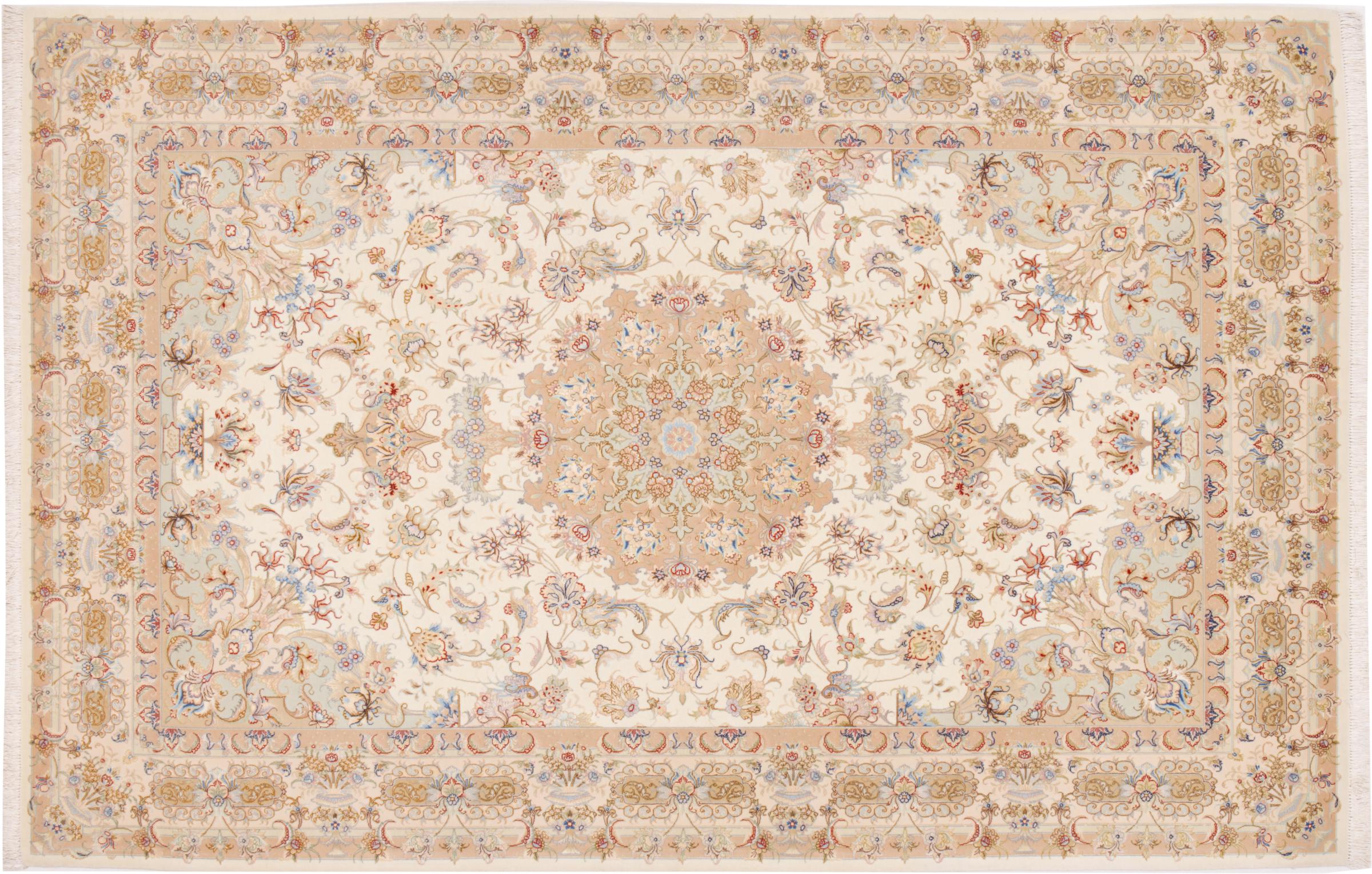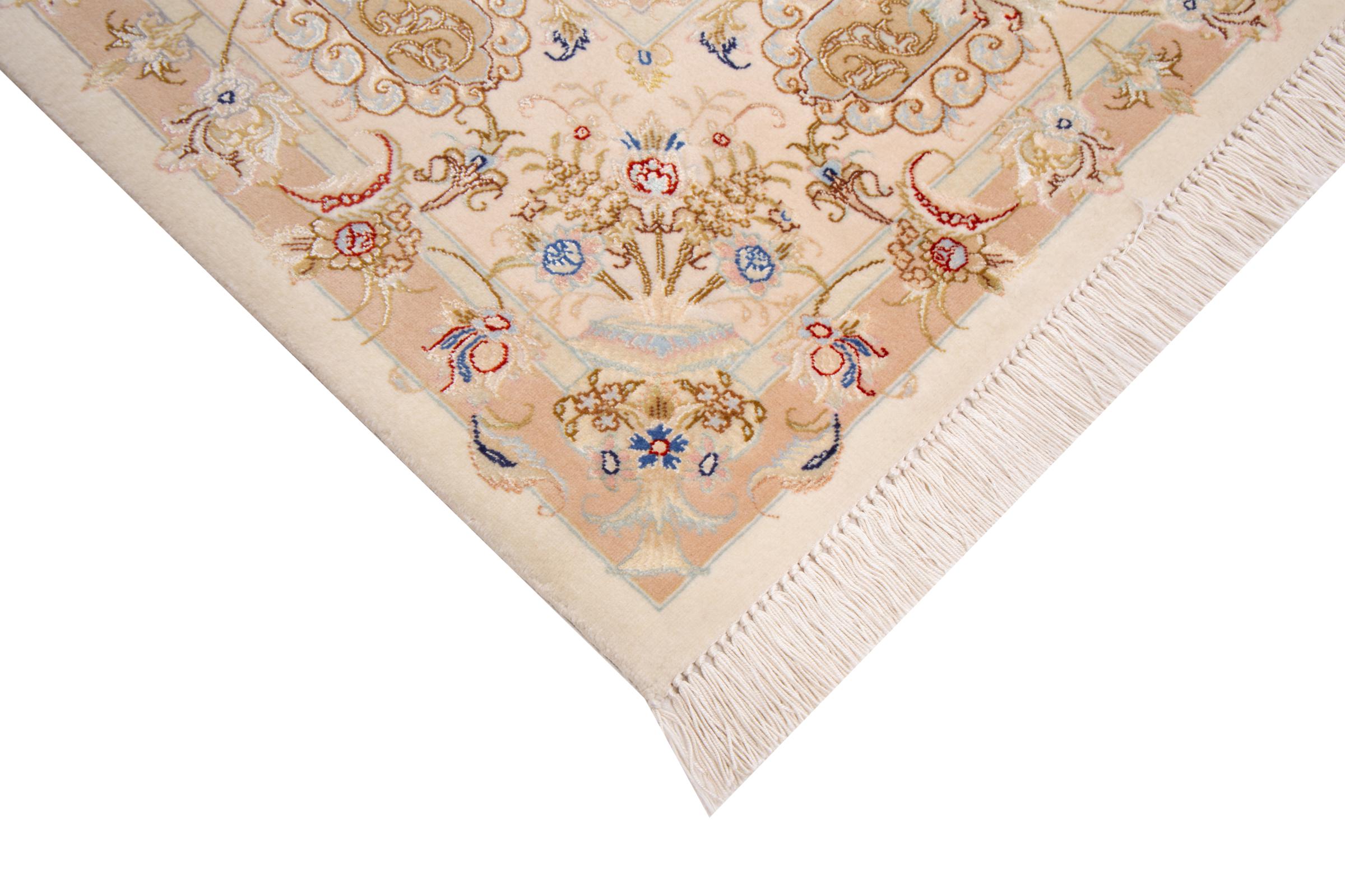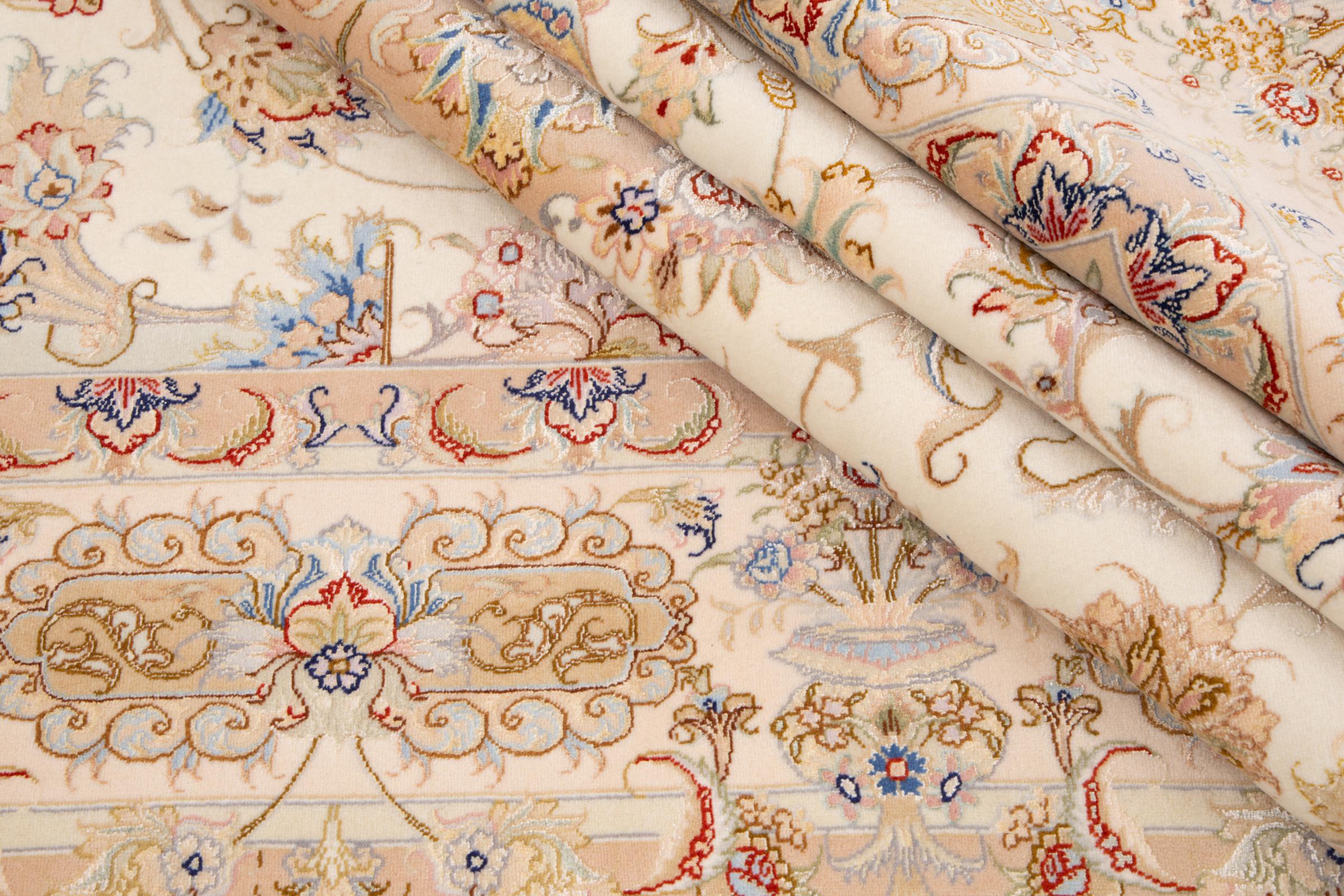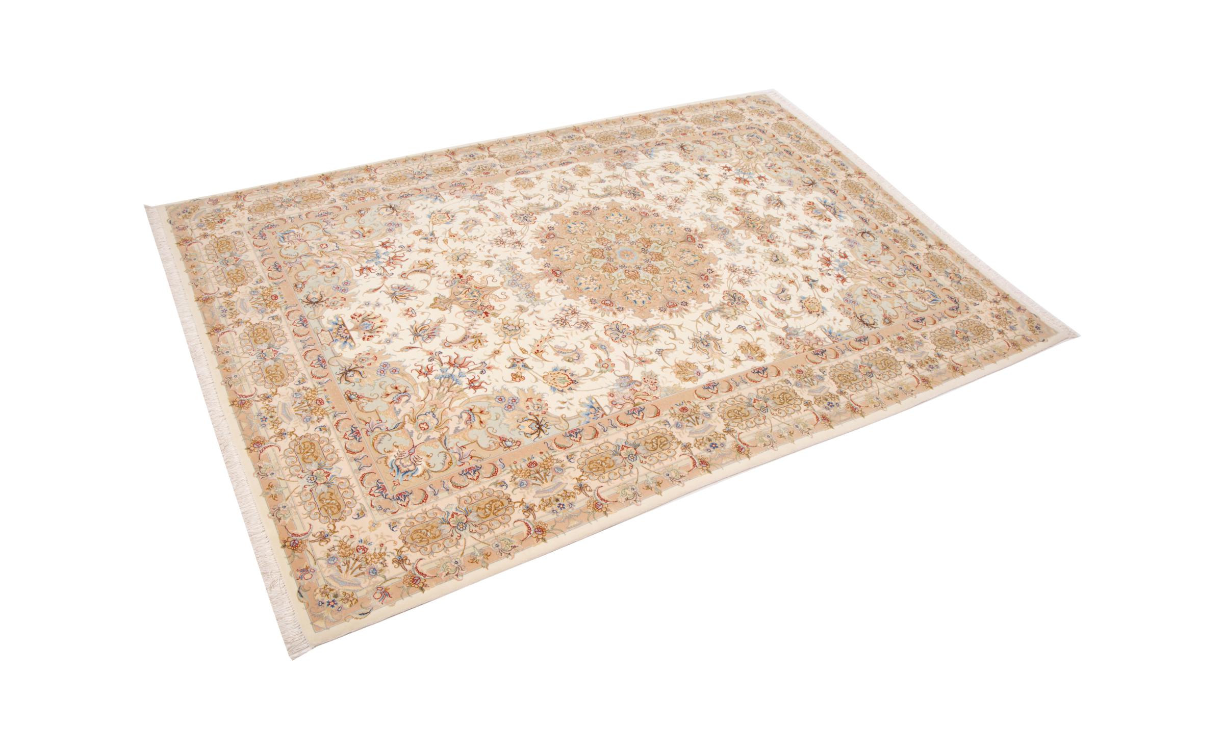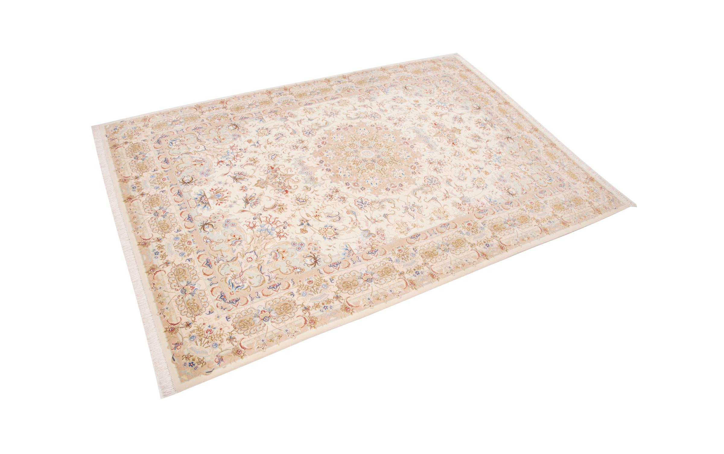 Tappeto-N.: 292964003077441 Dimensione: 307x197 cm Spessore: circa . 7 mm Nodi: 440 000 - 490 000 / m² Lavorazione: Annodato a mano Fondo: Lana con seta Catena: Seta Origine: Persia / Iran Età: Nuovo Peso: circa . 18 kg Conosciuto anche come Tabriz, Tabris, Täbris, Tebriz, Tebris, 40Raj, 50Raj Disponibile: Unico - Solo 1 disponibili