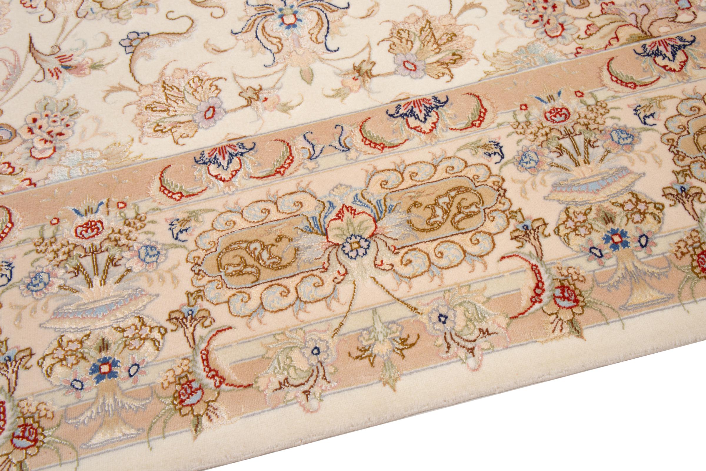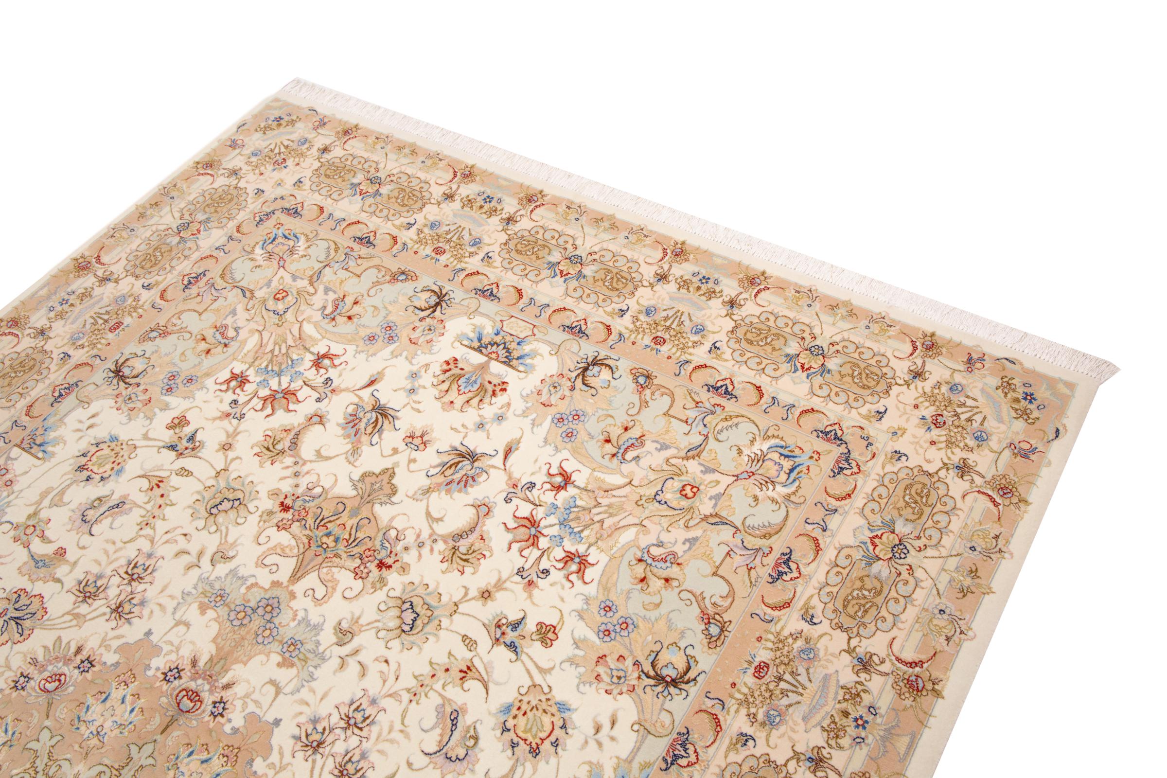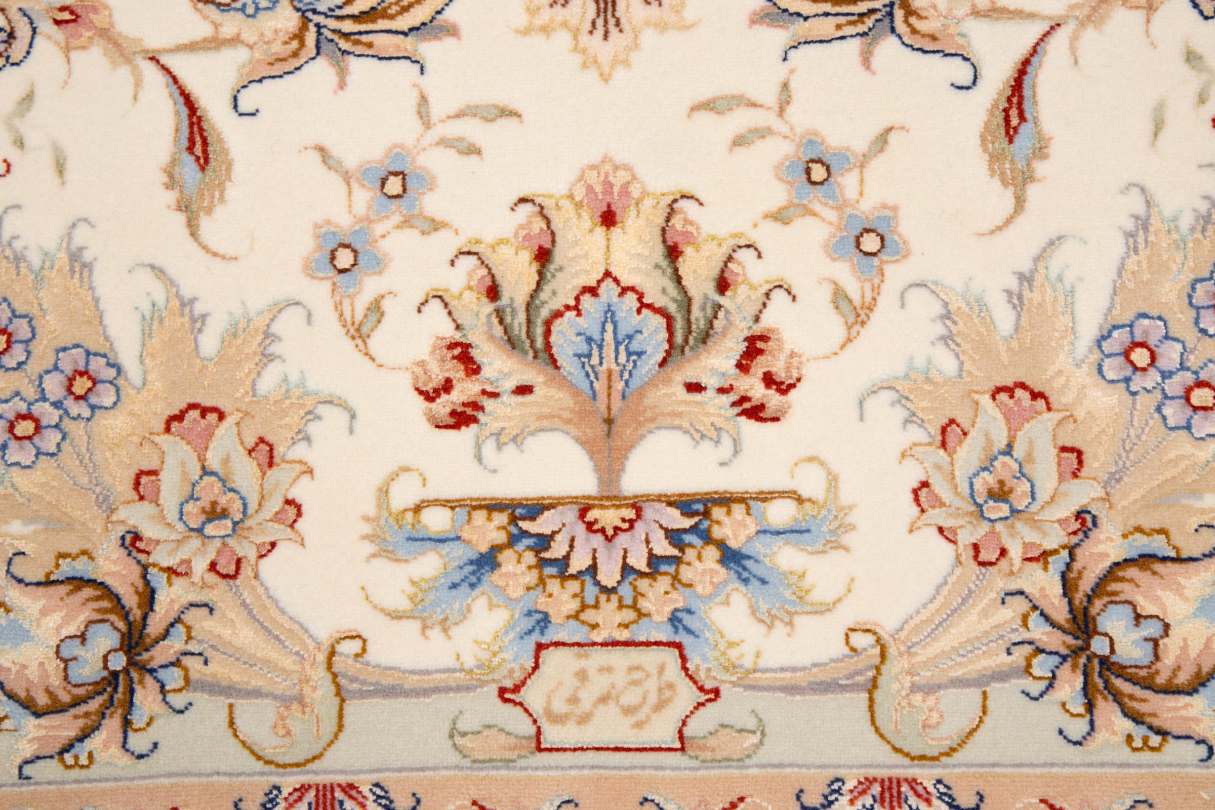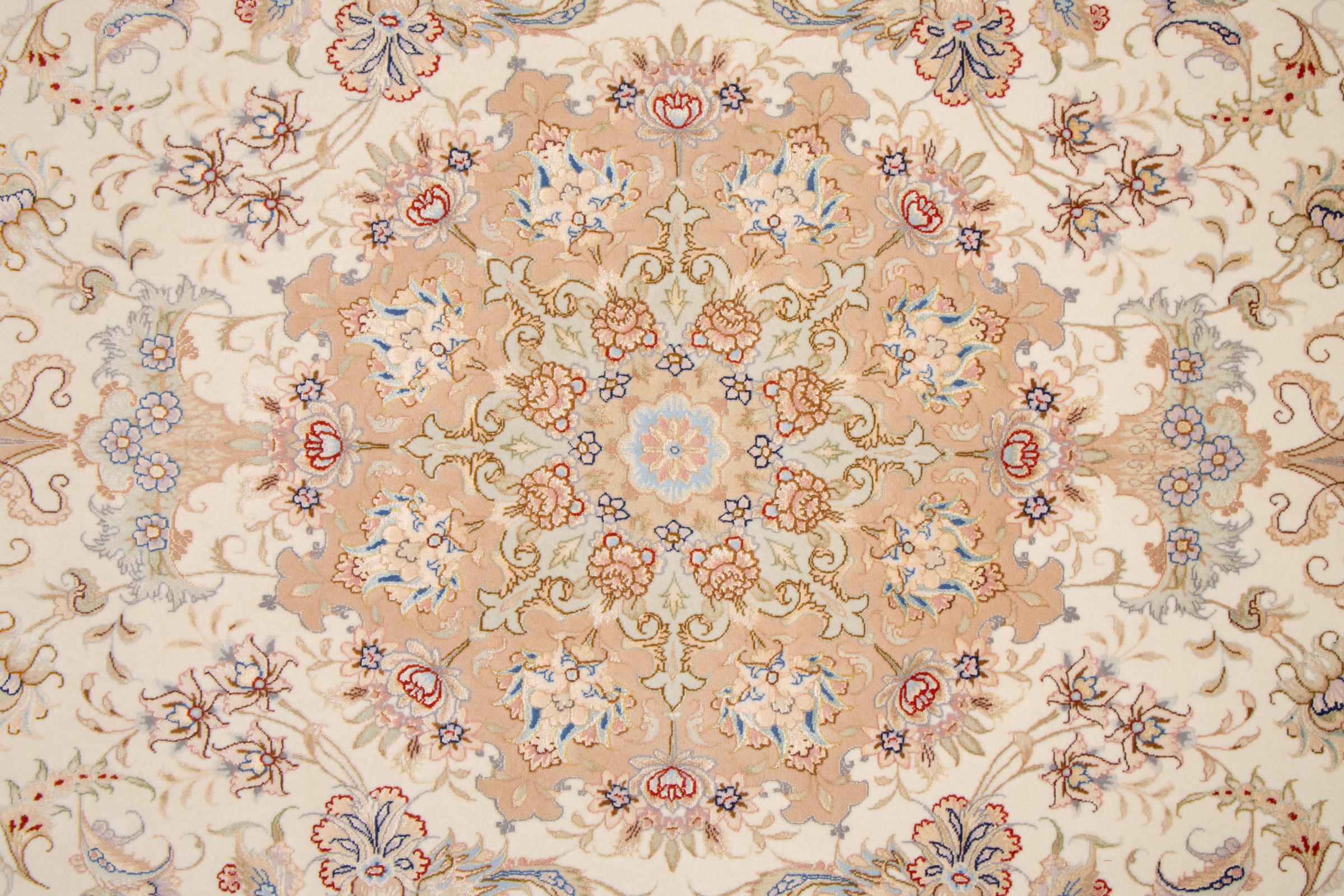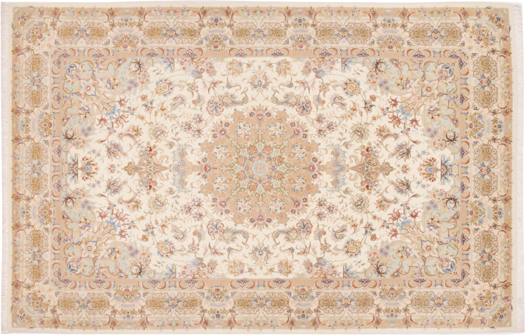 Tappeto-N.: 292964003077441 Dimensione: 307x197 cm Spessore: circa . 7 mm Nodi: 440 000 - 490 000 / m² Lavorazione: Annodato a mano Fondo: Lana con seta Catena: Seta Origine: Persia / Iran Età: Nuovo Peso: circa . 18 kg Conosciuto anche come Tabriz, Tabris, Täbris, Tebriz, Tebris, 40Raj, 50Raj Disponibile: Unico - Solo 1 disponibili