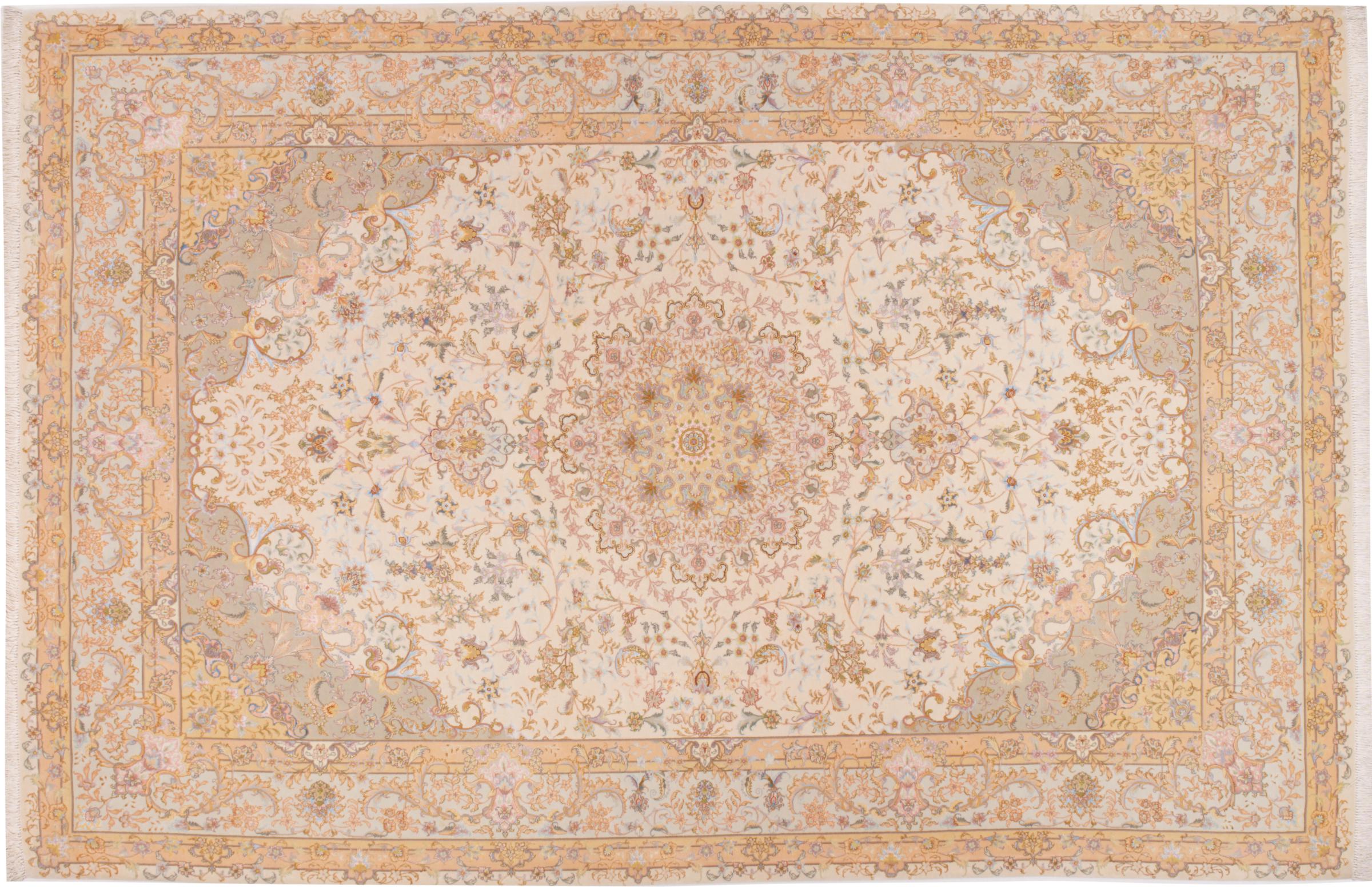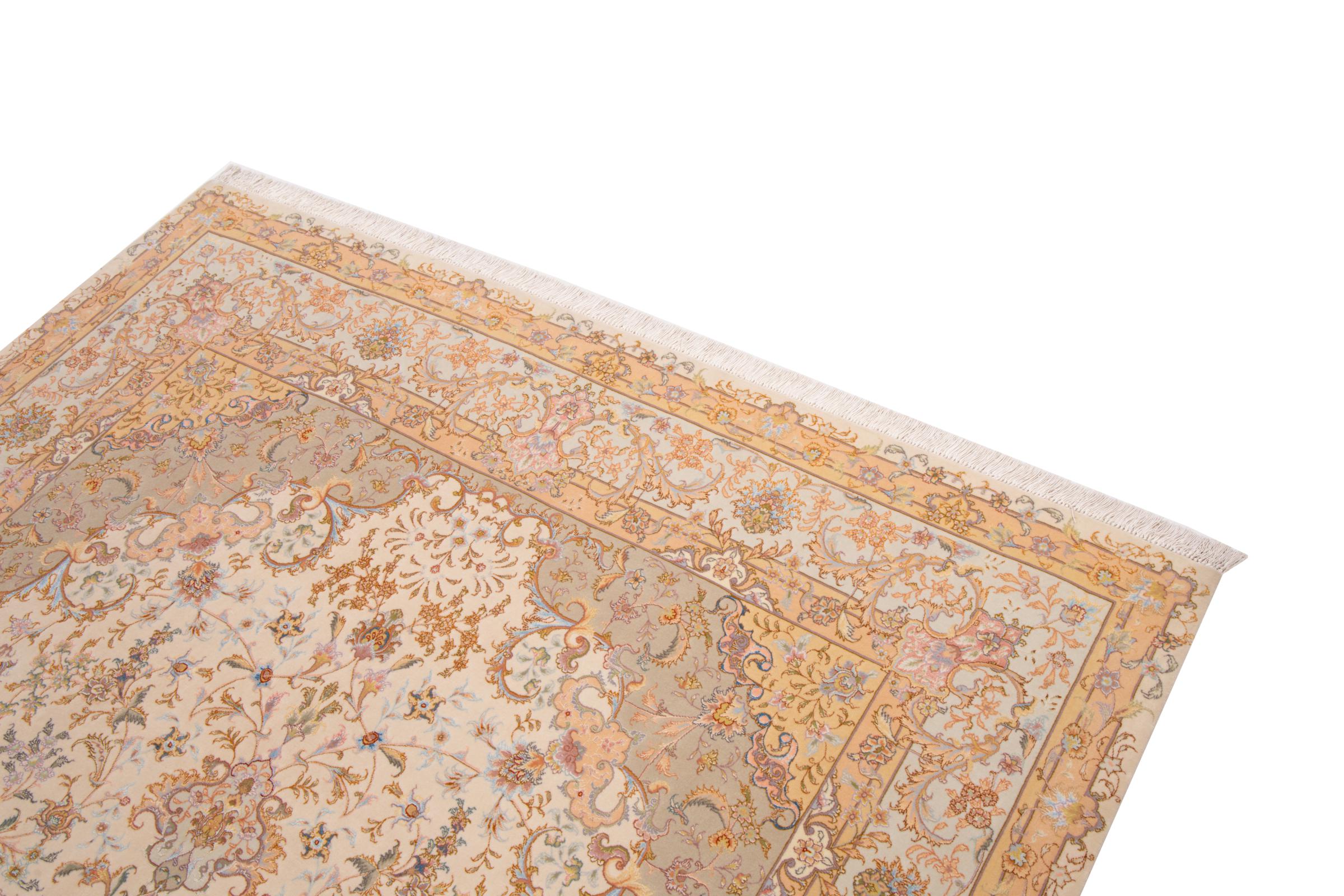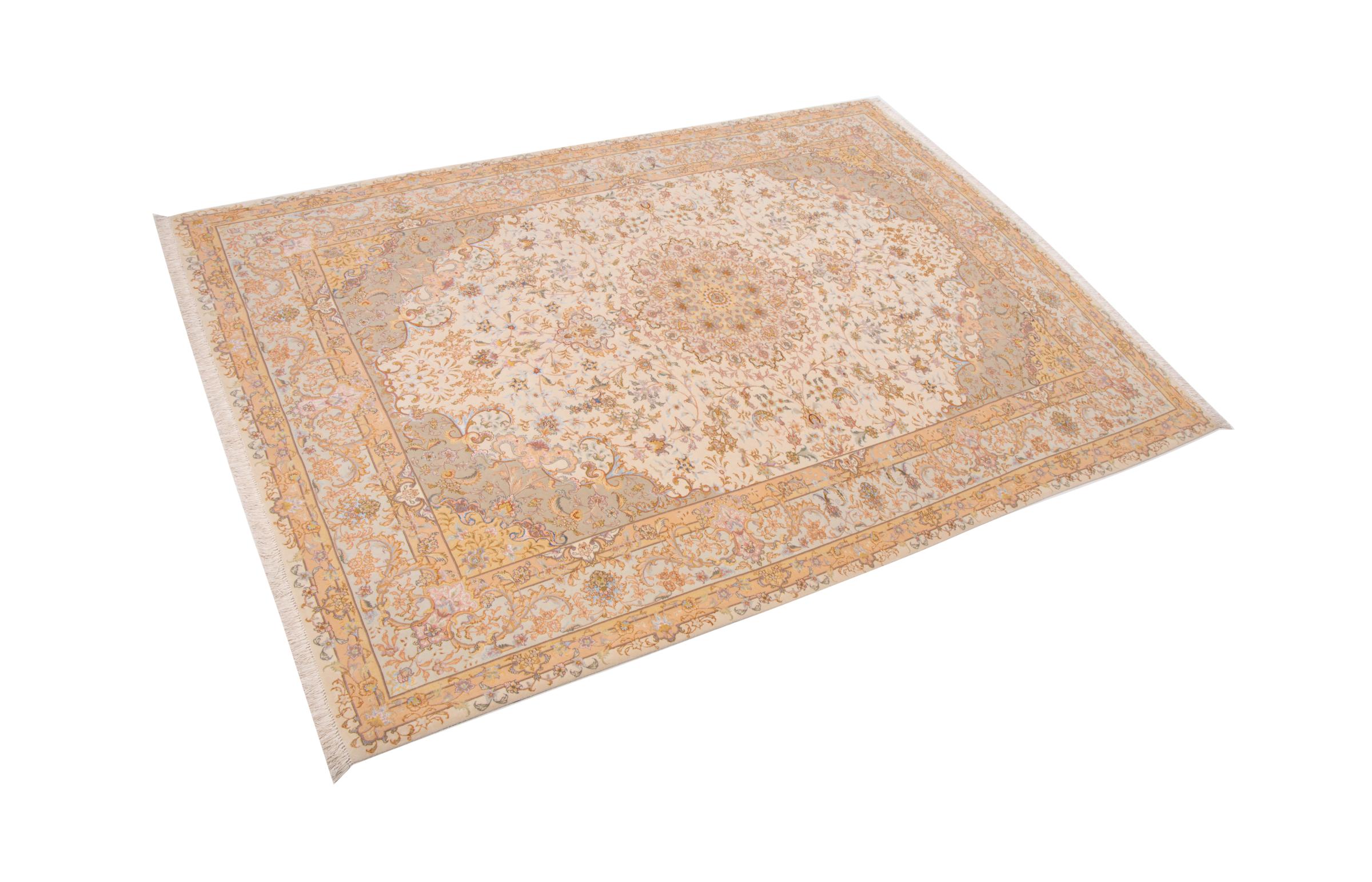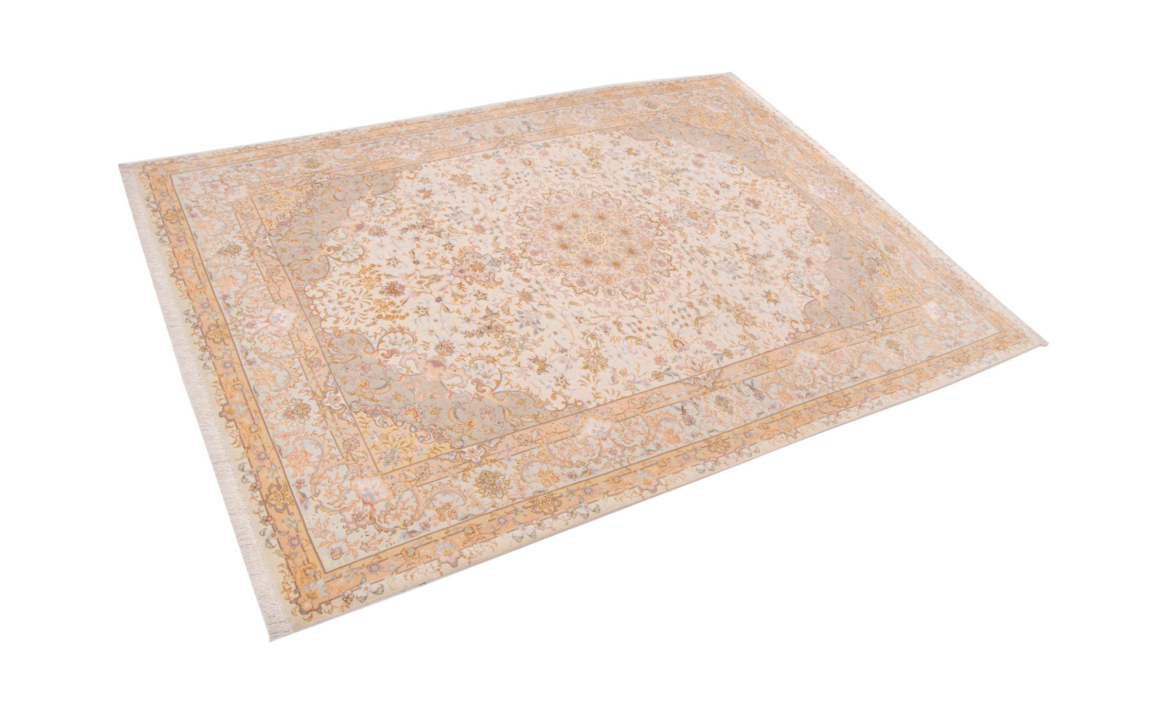 Tappeto-N.: 293132008418712 Dimensione: 309x201 cm Spessore: circa . 6 mm Nodi: 640 000 / m² Lavorazione: Annodato a mano Fondo: Lana con seta Catena: Seta Origine: Persia / Iran Età: Nuovo Peso: circa . 19 kg Conosciuto anche come Tabris, Tabriz, Tebris, Tebriz, Täbris, 60Raj Disponibile: Unico - Solo 1 disponibili