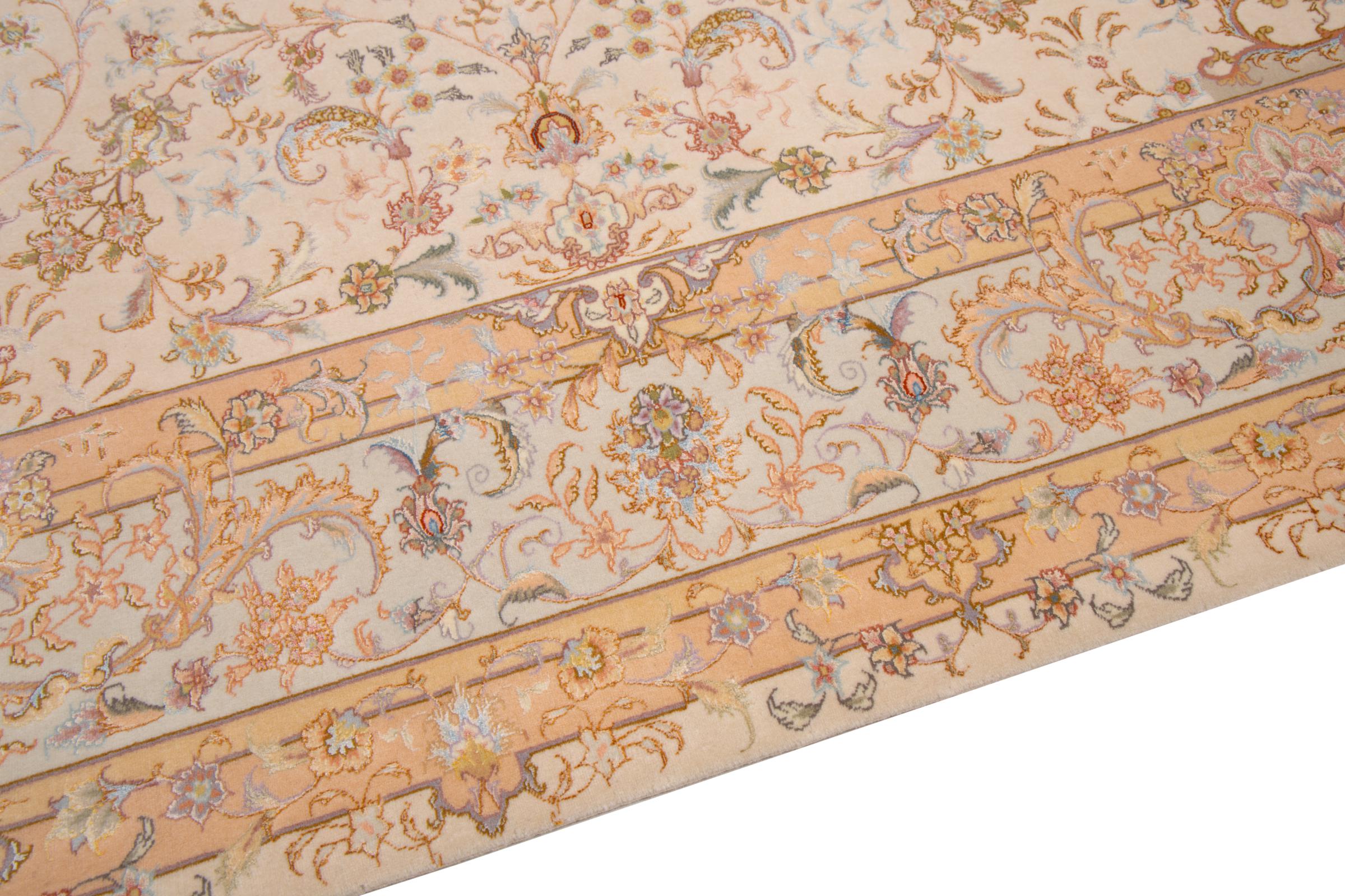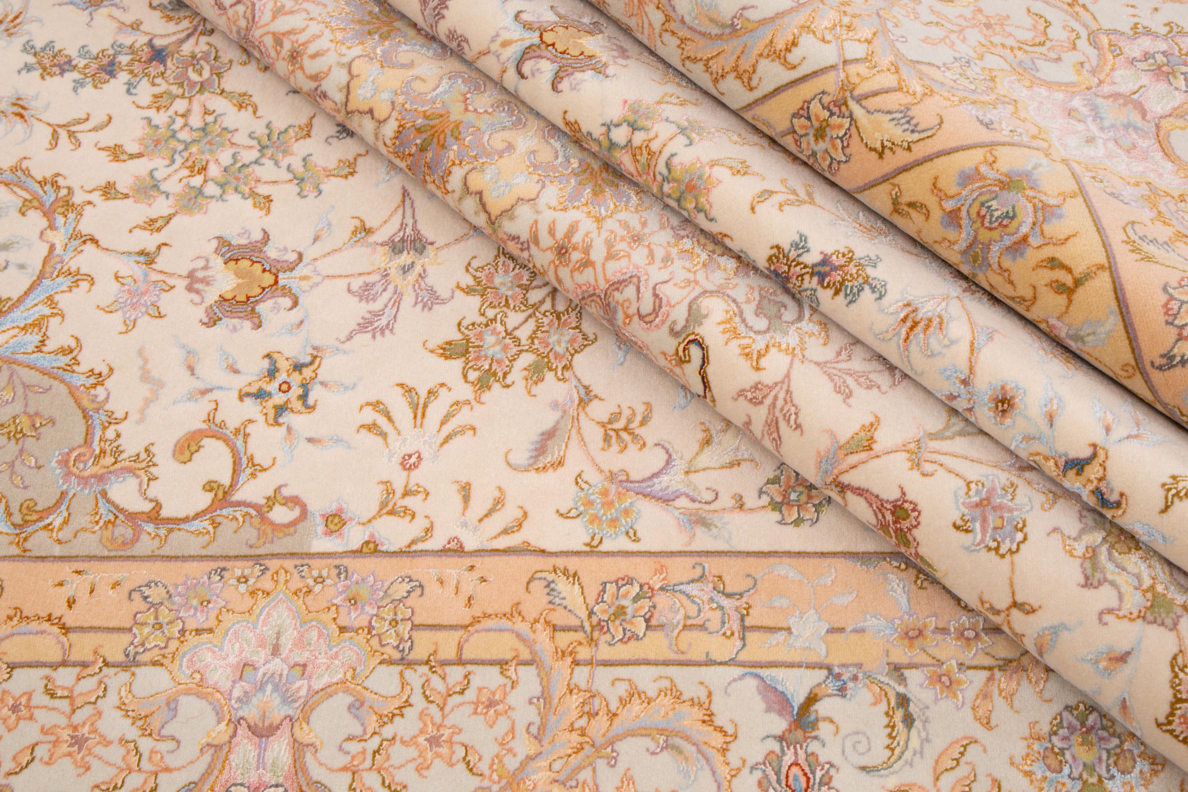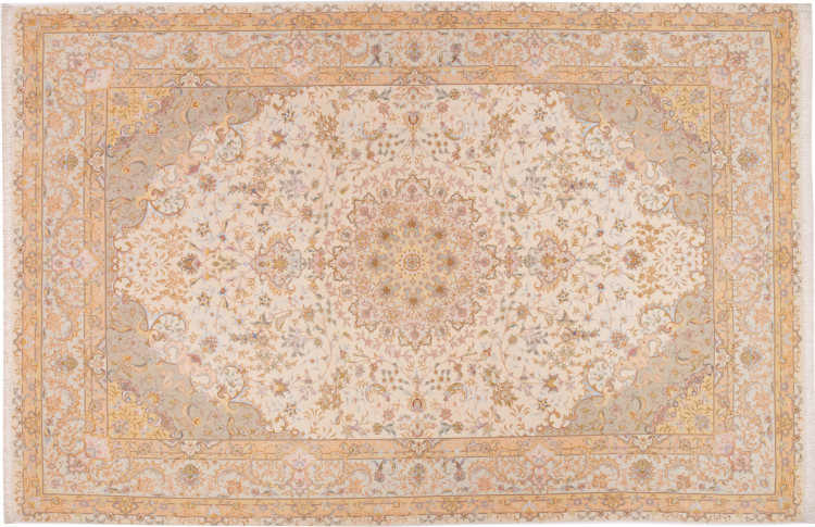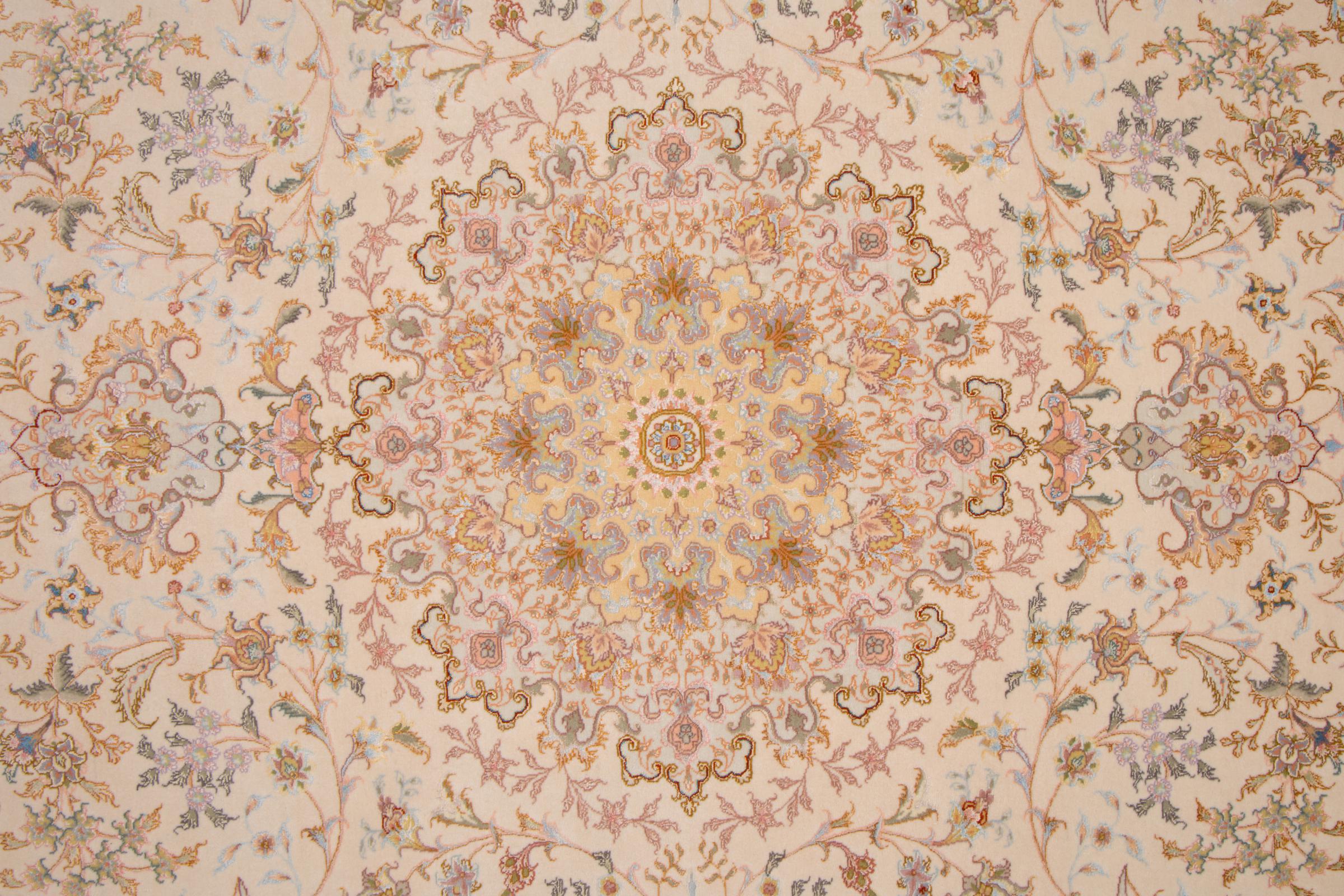 Tappeto-N.: 293132008418712 Dimensione: 309x201 cm Spessore: circa . 6 mm Nodi: 640 000 / m² Lavorazione: Annodato a mano Fondo: Lana con seta Catena: Seta Origine: Persia / Iran Età: Nuovo Peso: circa . 19 kg Conosciuto anche come Tabris, Tabriz, Tebris, Tebriz, Täbris, 60Raj Disponibile: Unico - Solo 1 disponibili